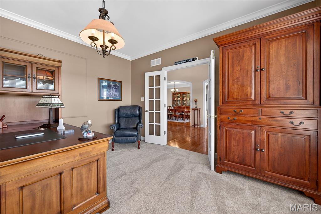 Discover the perfect blend of space, style, and serenity in this exceptional 1.5-story home with a 3-car garage, set on a picturesque 3.88-acre level lot offering privacy and endless possibilities. Major updates provide peace of mind, including a new roof (2024), upper-level furnace and A/C (2022), and a beautifully remodeled kitchen (2019) featuring granite countertops, stainless steel appliances, and modern finishes. A welcoming foyer opens to a dramatic two-story great room with soaring cathedral ceilings and floor-to-ceiling windows that flood the home with natural light while overlooking the scenic acreage. Rich wood floors and thoughtfully designed spaces create a home that feels both refined and inviting. The main level also features a private executive office with French doors and an additional sitting room, perfect for working from home or relaxing. The spacious main-level primary suite offers a peaceful retreat with dual walk-in closets and a luxurious bath featuring adult-height double vanities and a soaking tub. The finished lower level provides additional living and recreation space, including a custom bar with generous seating, pool table area, exercise room and flex room. Outdoor living is just as impressive with a covered patio perfect for evening gatherings overlooking the peaceful landscape. Additional features include Invisible pet fence with 2 collars, Front lawn irrigation system, 800-gallon propane tank (natural gas available for conversion), New carpet on the main level (3/2026), Fresh paint throughout most of the main level (3/2026). Located in the desirable Ft. Zumwalt School District and just minutes from major highways and everyday conveniences, this meticulously maintained property offers luxury, privacy, and flexibility rarely found in today's market.