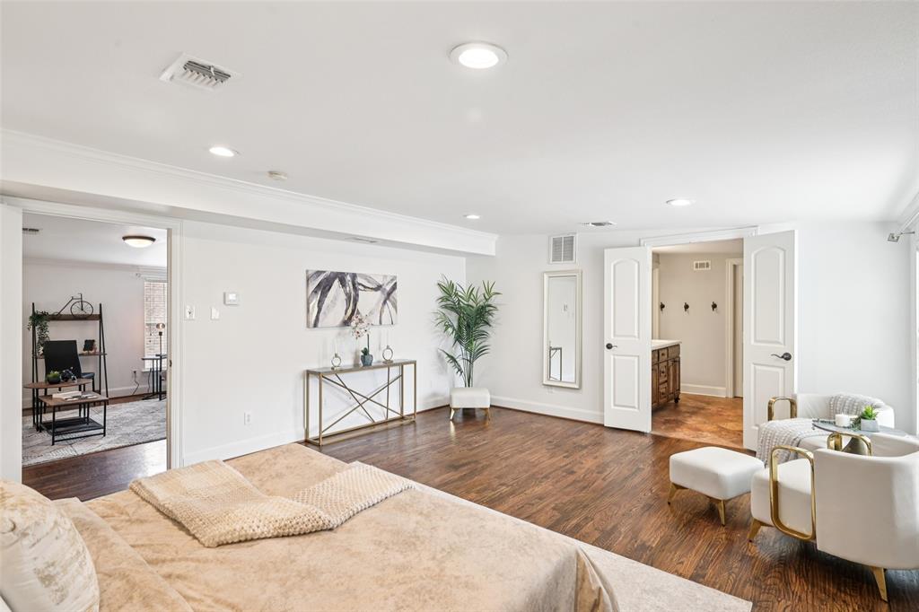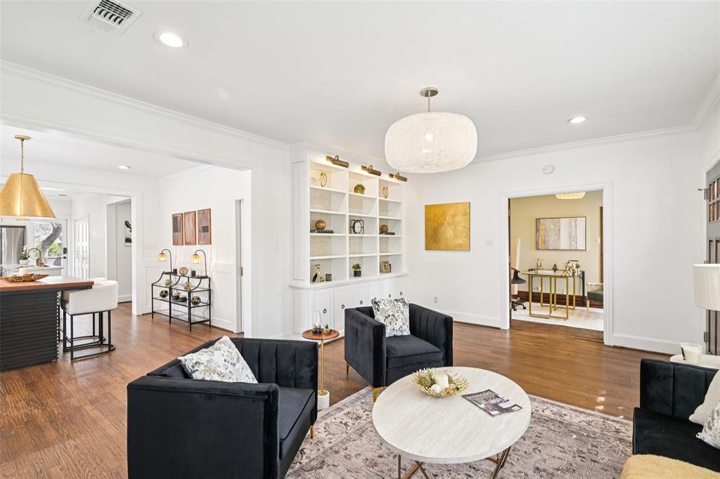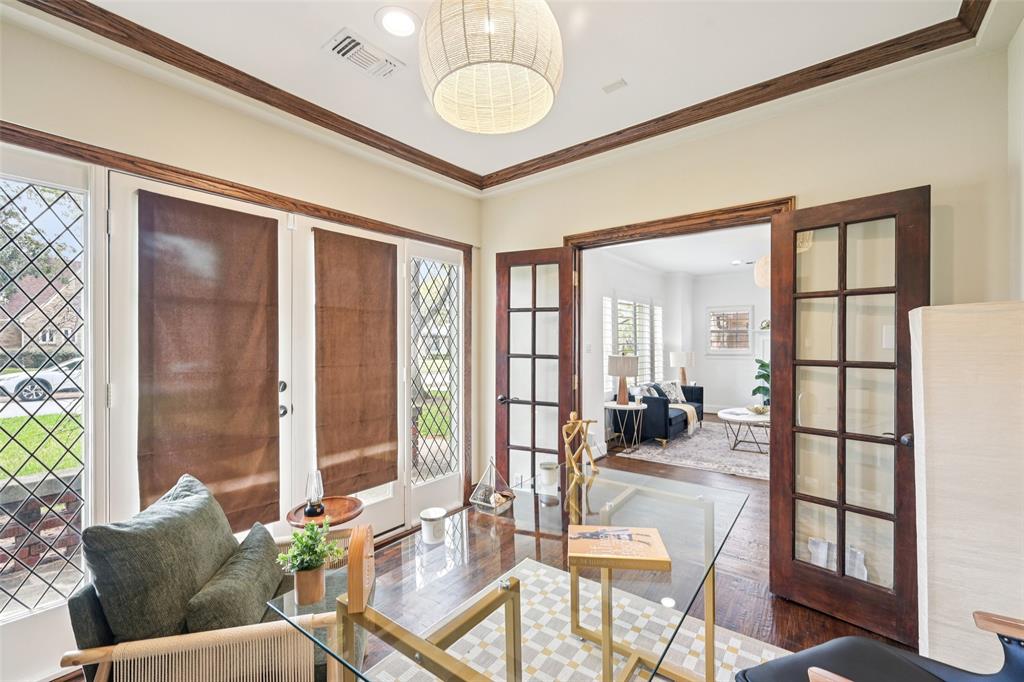 Charming Tudor in the heart of Hollywood Heights, beautifully updated in 2022 and located within a Historic Conservation District on one of the neighborhood's most picturesque streets. The home features a welcoming front living room with a gas-log fireplace and built-ins, plus a private study with glass French doors. A spacious dining area flows seamlessly into the sunny kitchen offering upscale countertops, stainless steel appliances, gas range, and an island. This flexible layout includes two primary retreats, ideal for multi-generational living or guest accommodations. The backyard is perfect for relaxing or entertaining with a covered patio and wood deck. Additional highlights include an oversized two-car garage with workbenches, EV charging outlet, and space that could easily convert to a home gym or art studio. Two new HVAC systems recently installed. Enjoy the vibrant community lifestyle with neighborhood favorites like block parties, margarita contests, chili cook-offs, and an Easter parade. Prime location zoned to Lakewood Elementary and just minutes from Lindsley Park, the Santa Fe Trail, Lakewood Shopping Center, and White Rock Lake. And be sure to check the recent improvement list!