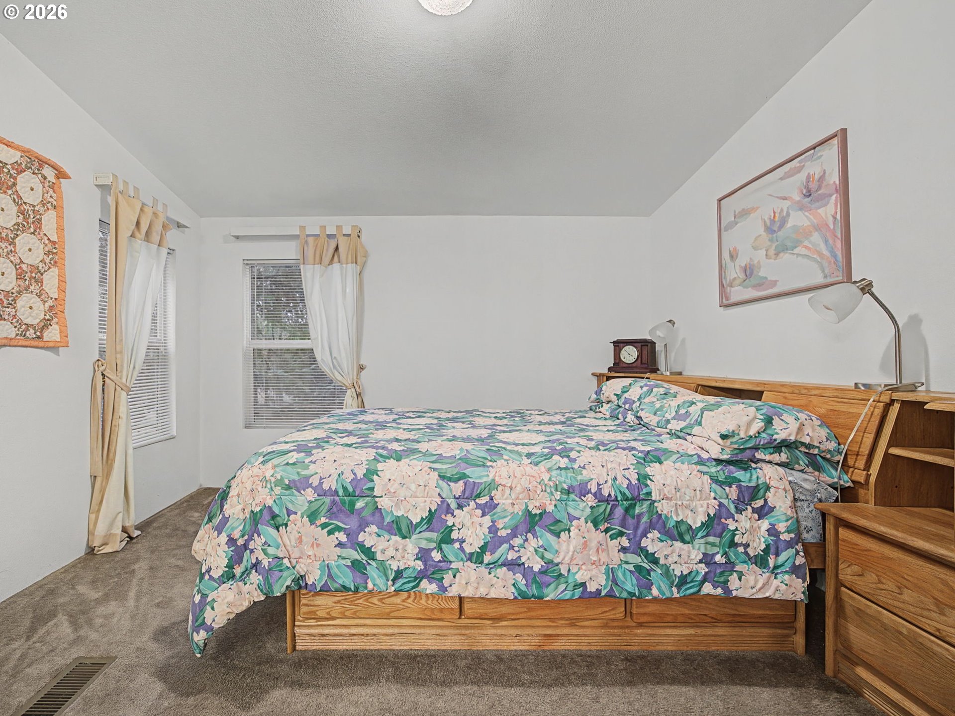 Located on the famous Barlow Road, the last segment of the historical Oregon trail. Quality open floor plan home with maple cabinetry, vaulted ceilings, drywall finishes and a cozy fireplace in the great room. A private primary suite with walk-in closet and en-suite bathroom. Enjoy the beautiful, wooded setting with a spacious 40-foot patio, 500 sq ft deck and firepit - perfect for relaxing or entertaining. Recent updates include new exterior paint (2024) & a newer roof (2020). Property includes two separate tax lots, approximately .6 acre (26,000+ square feet) including house with lot and additional lot to west. Room for possibilities of oversized shop, garage, or RV storage. Most furniture & all appliances can stay with house if desired.