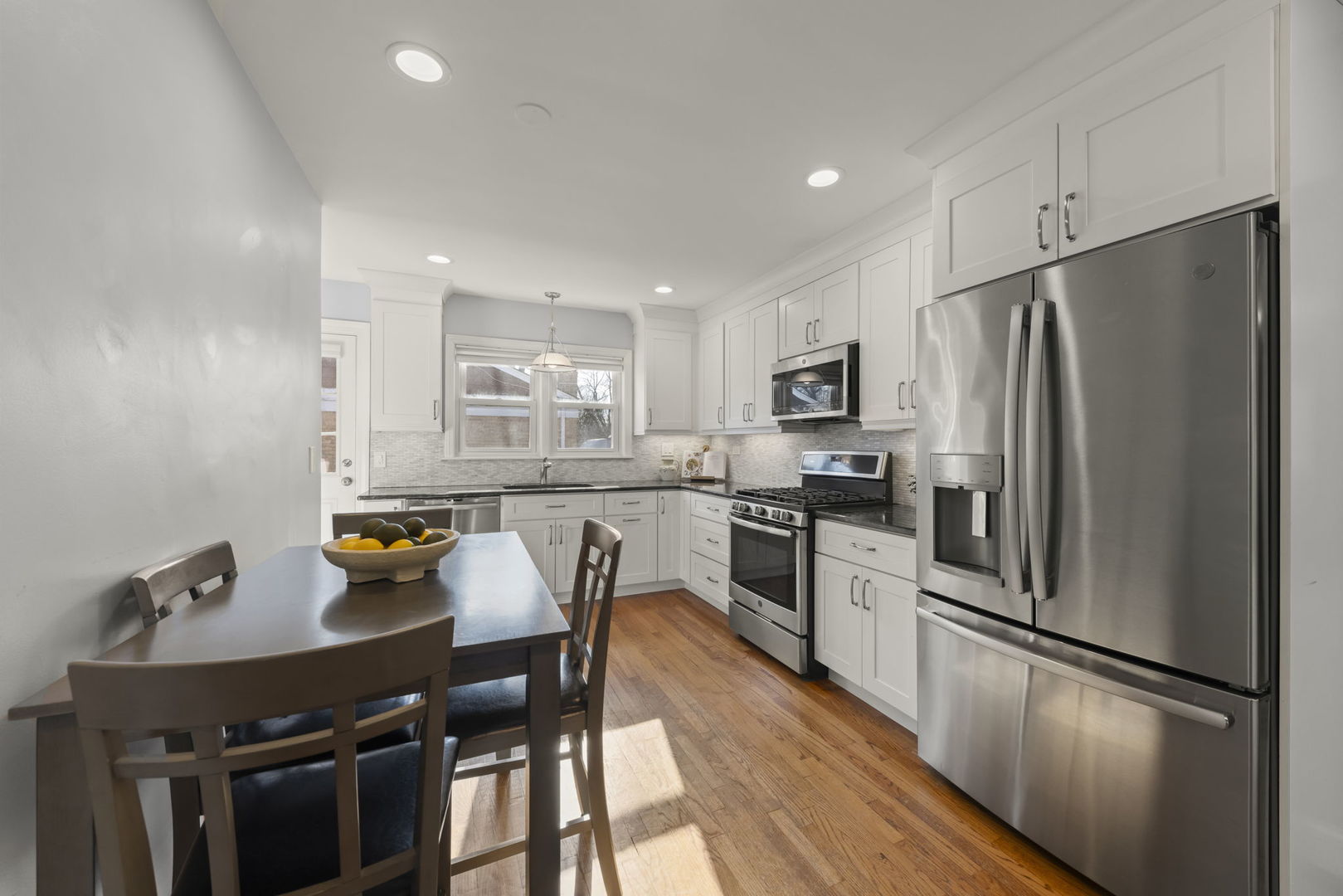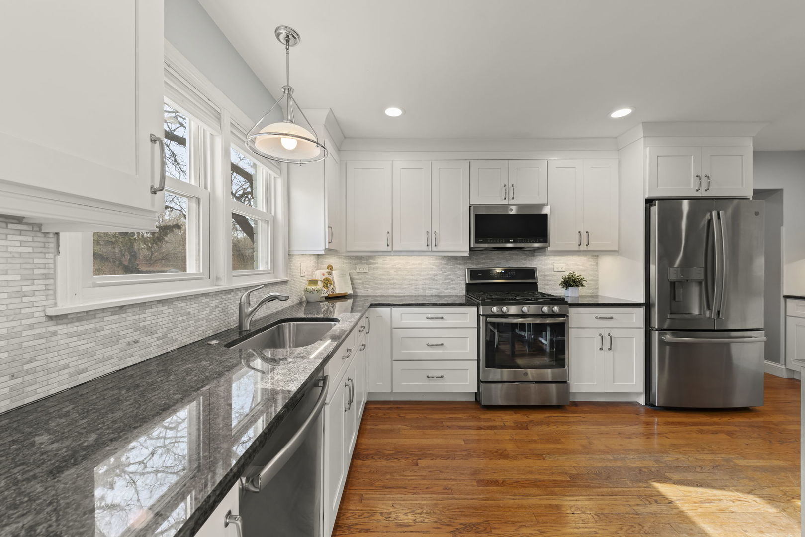 Everyone loves a ranch and you're going to love this one! From the moment you arrive, you'll notice the pride of ownership, starting with thoughtful landscaping and inviting exterior. Set right between Downtown Glen Ellyn and Downtown Wheaton, this move-in-ready home offers trail-side living with a private backyard pathway that connects directly to the Illinois Prairie Path. Step out to a spacious rear deck (2024) and a beautifully maintained 1/4 acre yard with mature trees and colorful plantings. Inside, hardwood floors run throughout the first floor, and the updated kitchen and baths keep the home feeling fresh and move-in ready. With 1,665 sq ft above grade, enjoy 3 bedrooms and 2.1 baths, including the standout feature of two full bathrooms on the main level. First-floor laundry and a separate family room (currently used as a dining room), add everyday convenience and extra space to spread out. The newly finished basement (2022) adds about 1,200 sq ft of flexible living space plus a convenient 1/2 bath and extra storage. A 2.5-car detached garage with an exterior rebuild in 2019 provides excellent additional storage and parking. All mechanicals and appliances new within 5 years and so much more. Ask for the features & improvements document! Only one block to Hoffman Park (0.2 mi). The Prairie Path provides an easy route to both the College Avenue and Glen Ellyn Metra train stations, making it simple to enjoy dining, shopping, and events in both downtowns.