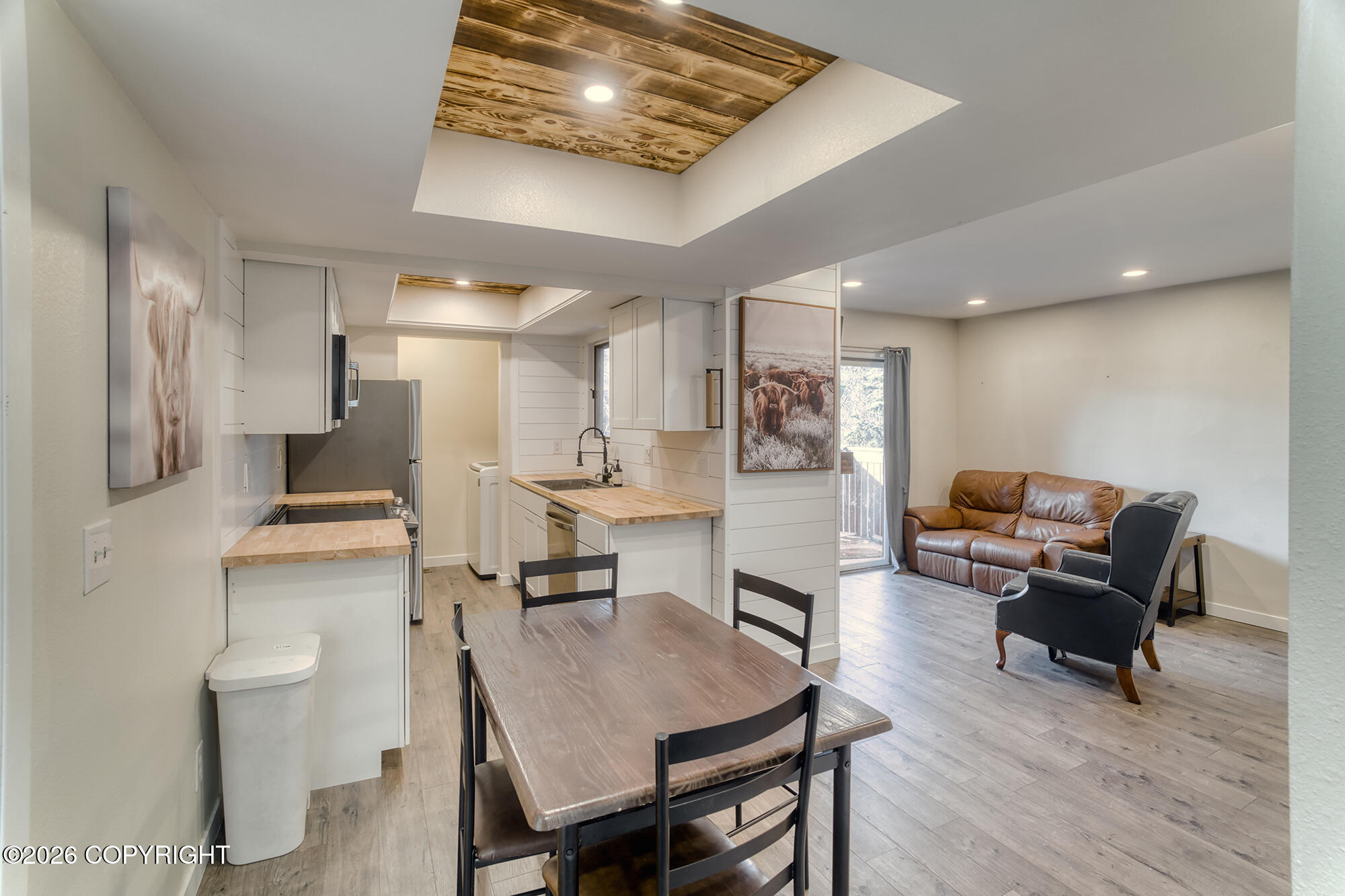 Beautifully updated top-floor two-bedroom condo in a prime location near the Campbell Creek Trail system. Completely remodeled in 2025, this home is truly move-in ready with thoughtful updates throughout. The interior features brand-new flooring, fresh paint, remodeled bathrooms, and a fully updated kitchen with new cabinets and new appliances. Additional highlights include an in-unit washer and dryer, a private balcony for enjoying the outdoors, and a heated one-car garage--an ideal convenience for Anchorage winters. The top-floor location offers added privacy and a quiet living environment, while the nearby trail system provides easy access to miles of outdoor recreation. A stylish, low-maintenance home in a fantastic Anchorage location.