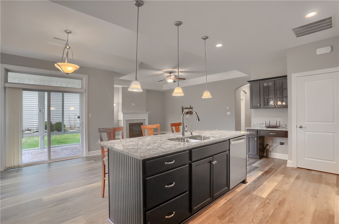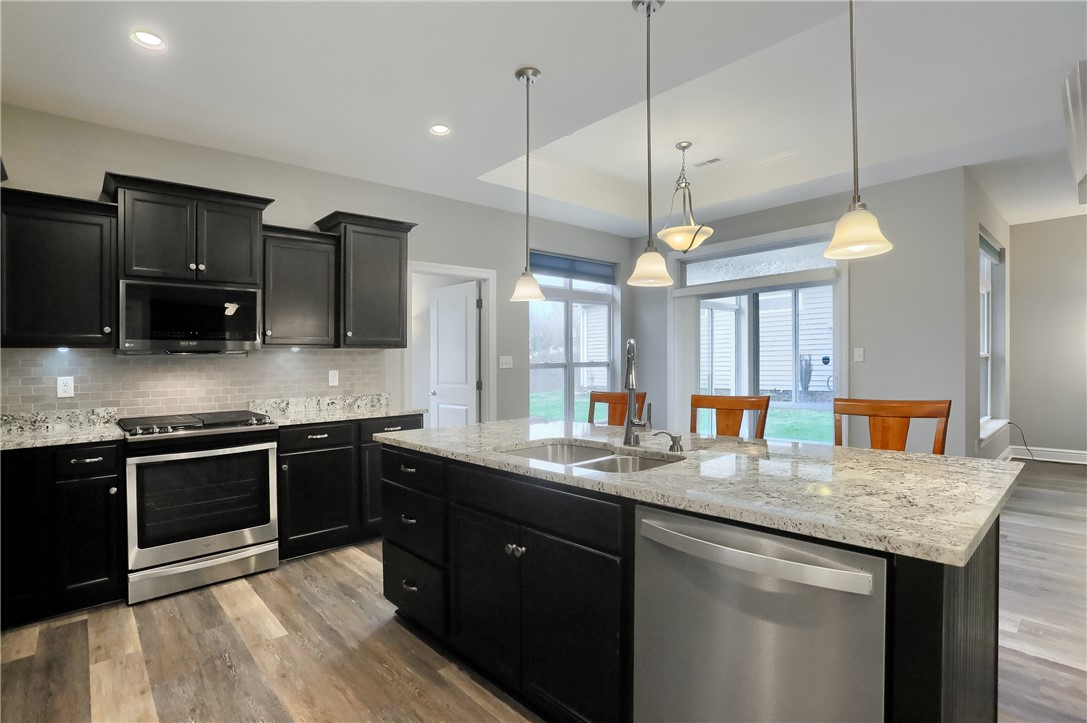 Pride of ownership and pristine condition throughout this beautiful custom built Scarmazzi home! Enjoy easy living in this naturally lighted open floor plan with 9 foot ceilings. Gourmet kitchen with quartz countertops, large island, separate barista bar/desk area, stainless appliances, custom backsplash and elegant expresso cabinets. Owners suite features upgraded bath with ceramic flooring and shower, double bowl vanity, commode with bidet attachment, and huge walk in closet. Guest bedroom and full bath are privately located in the front near the entry. Laundry room with laundry tub and washer/dryer included. Additional storage/utility room. Oversized two car garage boasts the attractive conglomerate stone floor and pull down stairs leading to the attic storage. Relaxing is so peaceful in the three season glass room that leads to the private concrete patio. Easy commute to the Airport, Pittsburgh, Shopping, parks and trails.