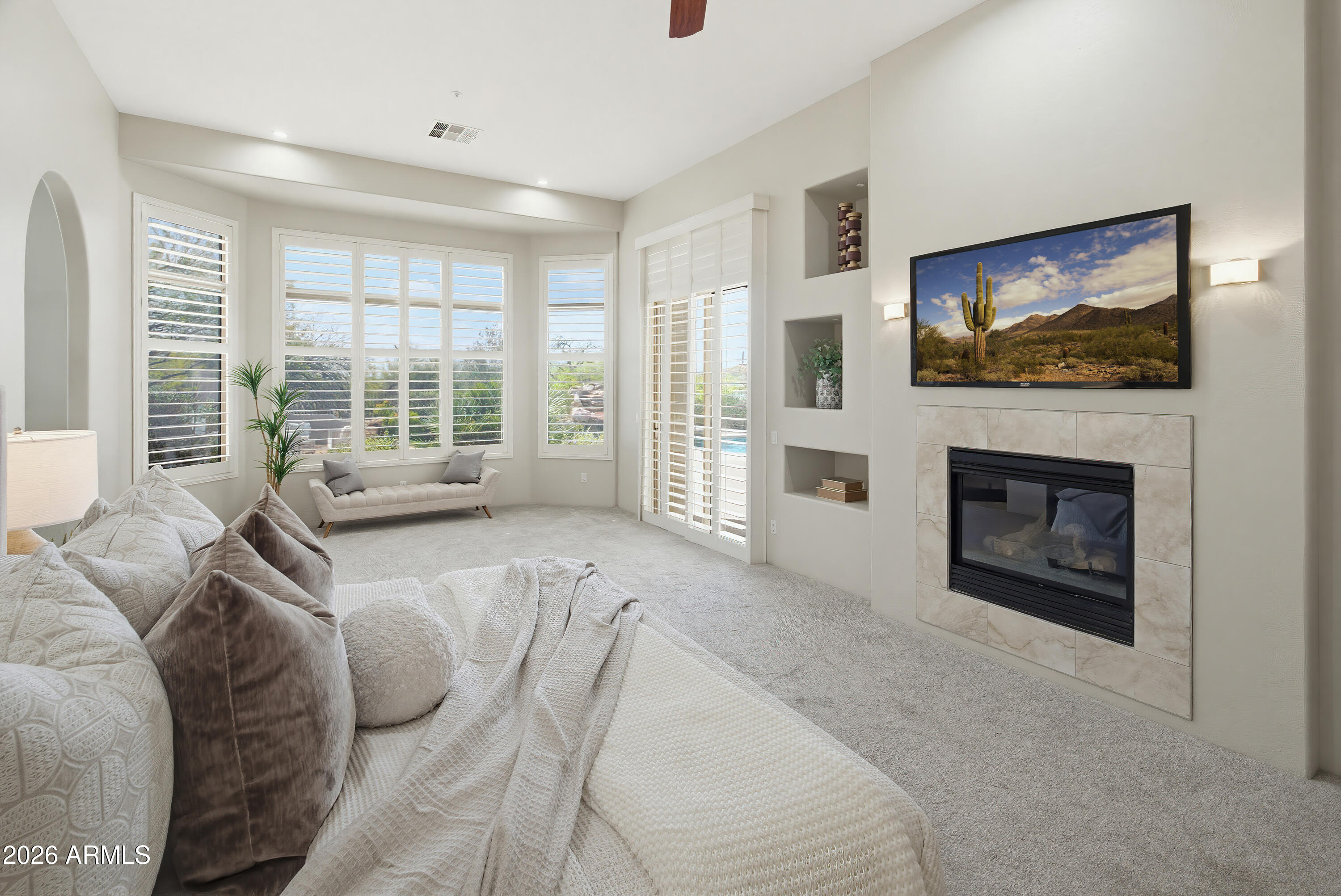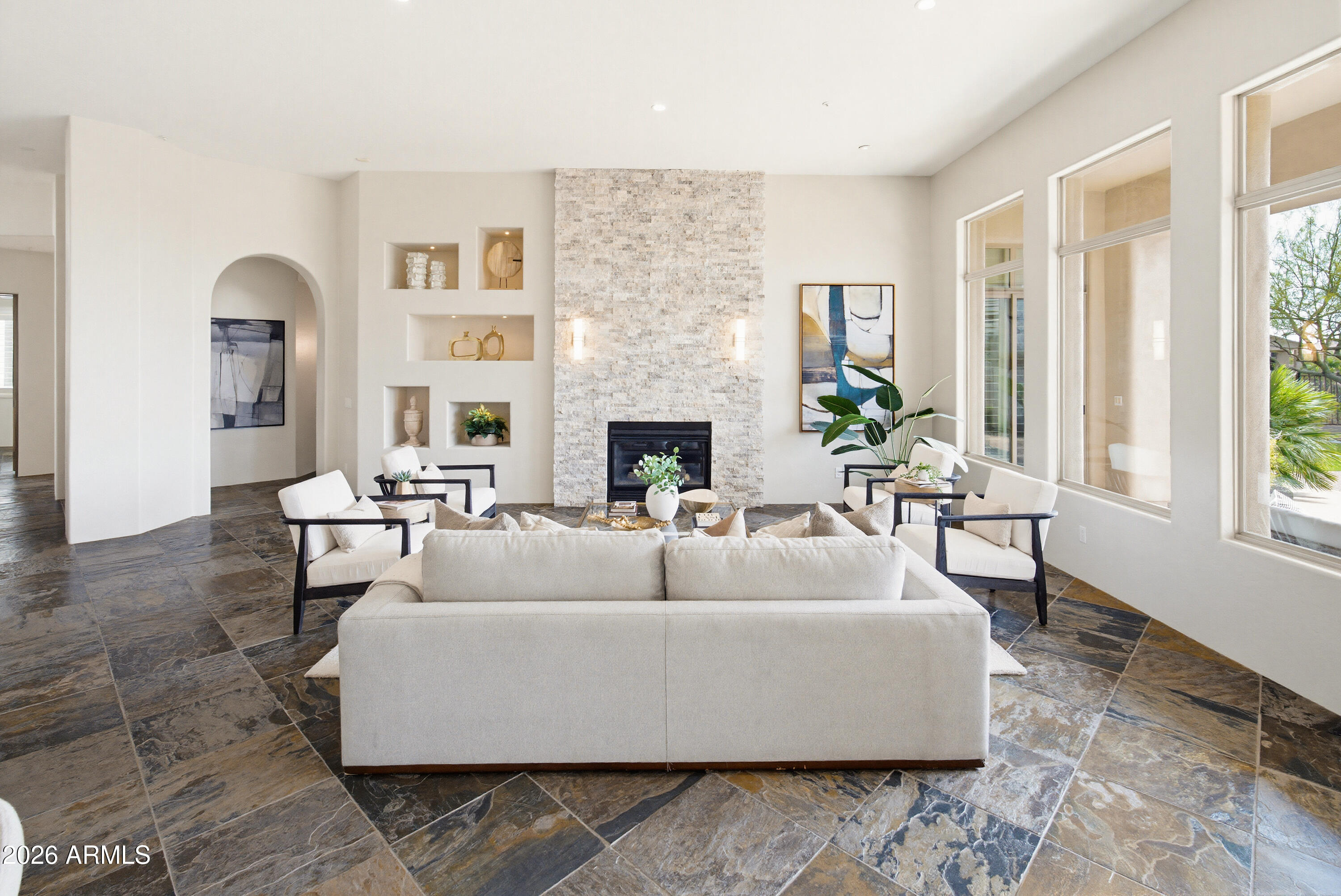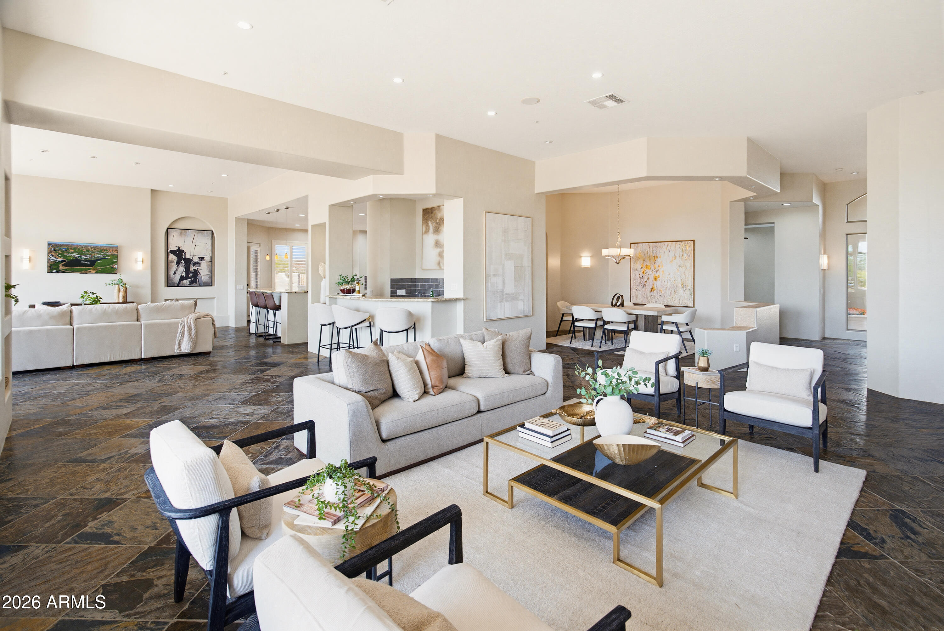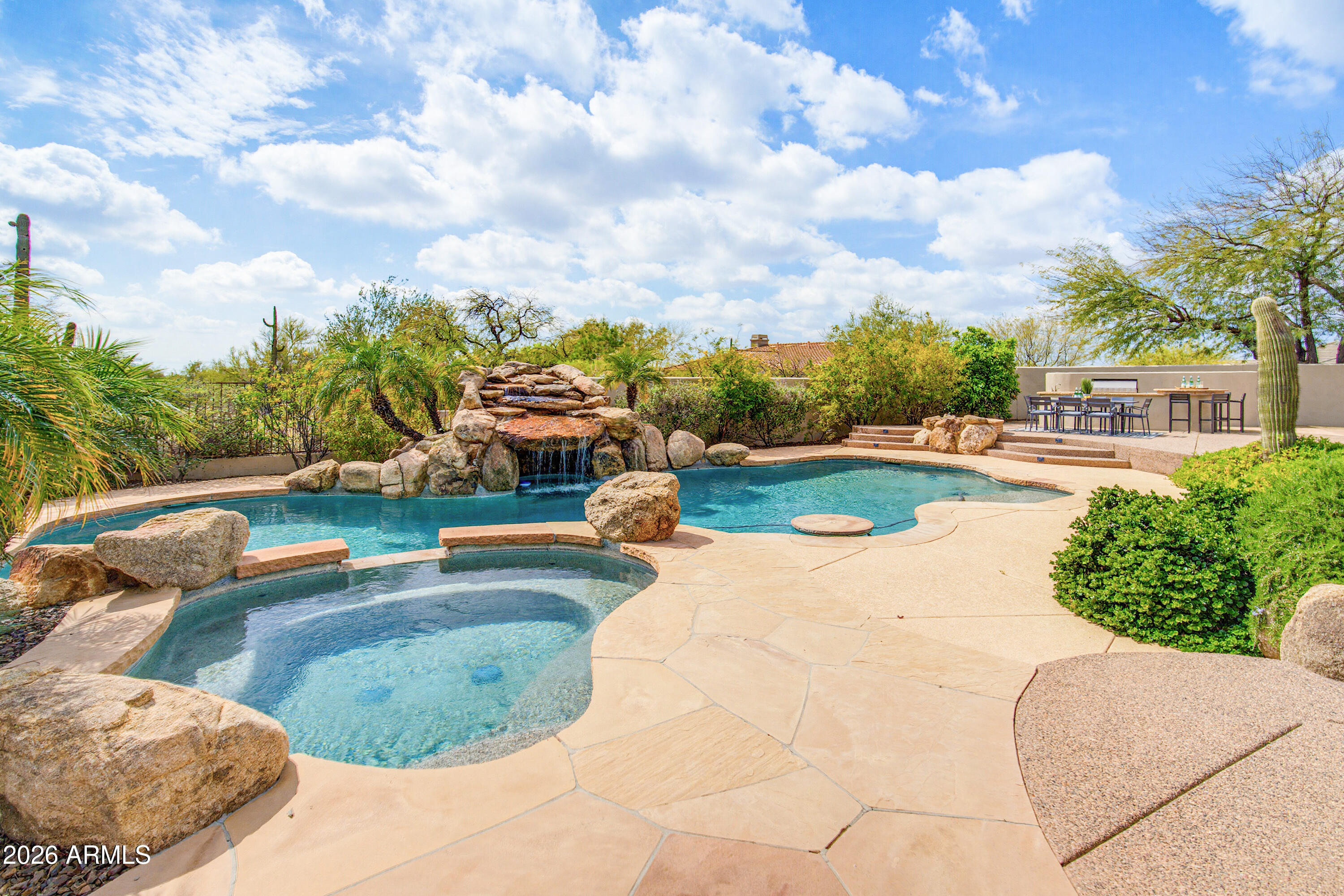 Opportunity meets versatility in this 4960 sqft beauty. Step into a home that instantly feels easy to live in and even easier to love. This single-level home offers 4 spacious en-suite bedrooms (includes casita), 4.5 baths PLUS a dedicated office and walls of windows that flood the space with natural light. The open concept layout with built-in wet bar makes this home ideal for entertaining. The UPDATED KITCHEN, NEW ROOF (tile & underlayment), large PRIVATE yard, pool, spa, sport court area and low-maintenance turf add instant value. With strong upside potential and a prime North Scottsdale location, this property is ready for your plan- whether that's a smart flip or a forever home makeover.