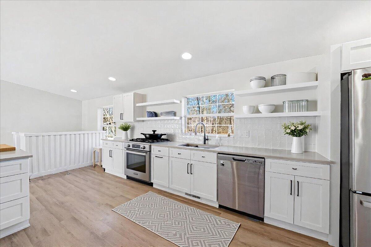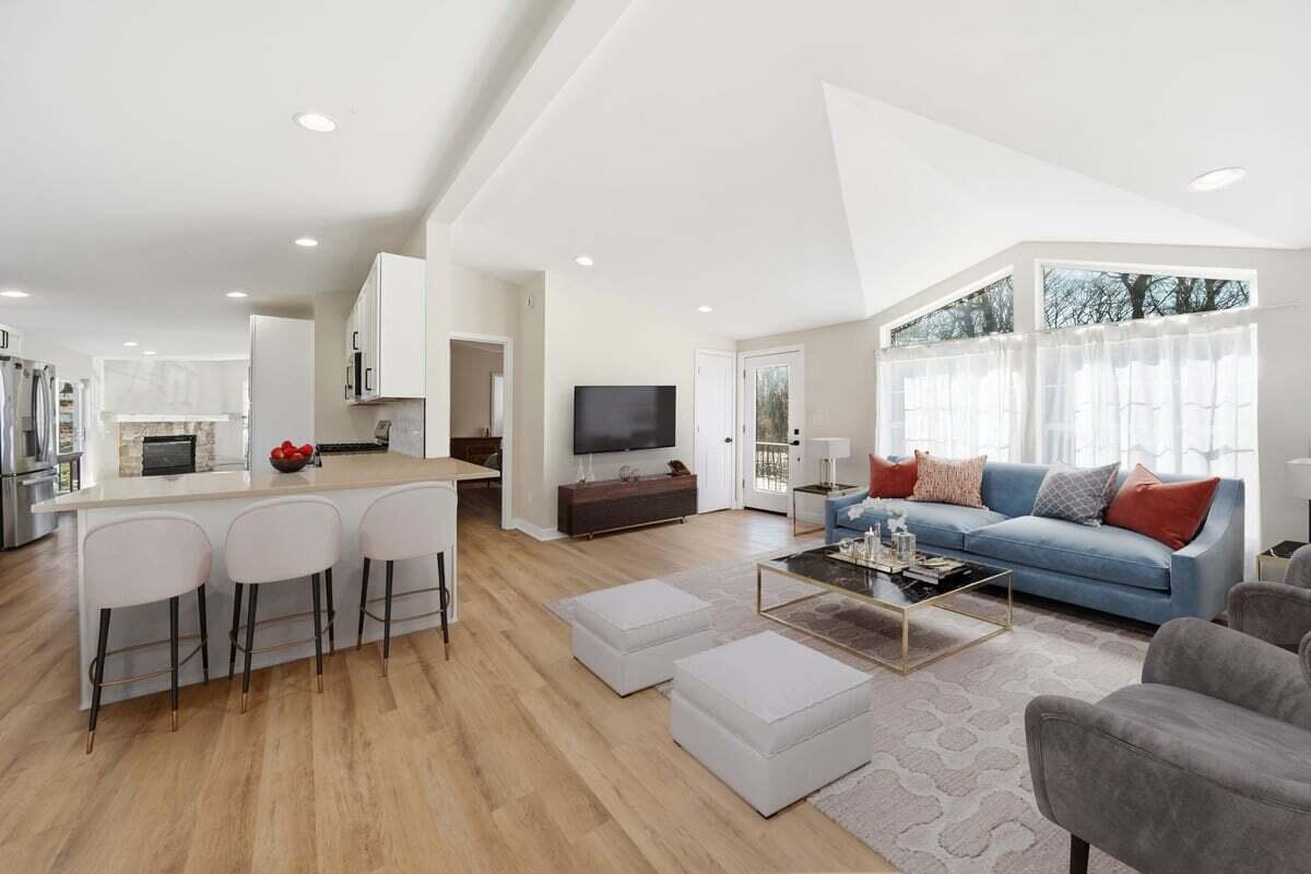 1700 sq/ft 3 bdrm / 2 bath RANCH with a full basement positioned on a 1/2 acre with an open concept, cathedral ceilings and stone fireplace...This beautiful home has been REBUILT from TOP to BOTTOM with CUSTOM MATERIALS and HIGH-END FINISHES...It is being offered to home buyers or investors...There is a month to month tenant at 2,525 per month that is willing to stay...great low maintenance investment with zero repairs because the whole house is basically brand new...This home was gutted, stripped down to the studs and everything is new...NEW UPGRADES INCLUDE: roof, drywall, electric, plumbing, HVAC, doors, trim, fireplace, vinyl plank, carpet, modern fixtures, recessed lighting, quartz counters throughout, custom breakfast bar, abundant cabinets space and a beautiful master suite with his & hers sinks...all new stainless appliances, water softener and washer & dryer INCLUDED...This beauty sits on a pristine 1700 sq/ft basement with freshly painted floors, walls and a black matt finish on the ceiling ready for your final touches...Convenient second outside access to this basement could create some related living possibilities...Septic was recently serviced and the pumps were replaced...Crown Point schools...low taxes...close to shopping and dining...Less than a mile to the public boat launch which puts you on CEDAR LAKE an 800 acre all sports lake...2 miles to 400 acre Lemon Lake County park...24 hour notice for showings