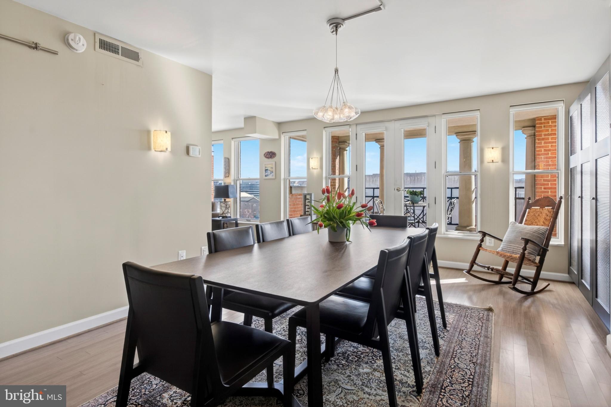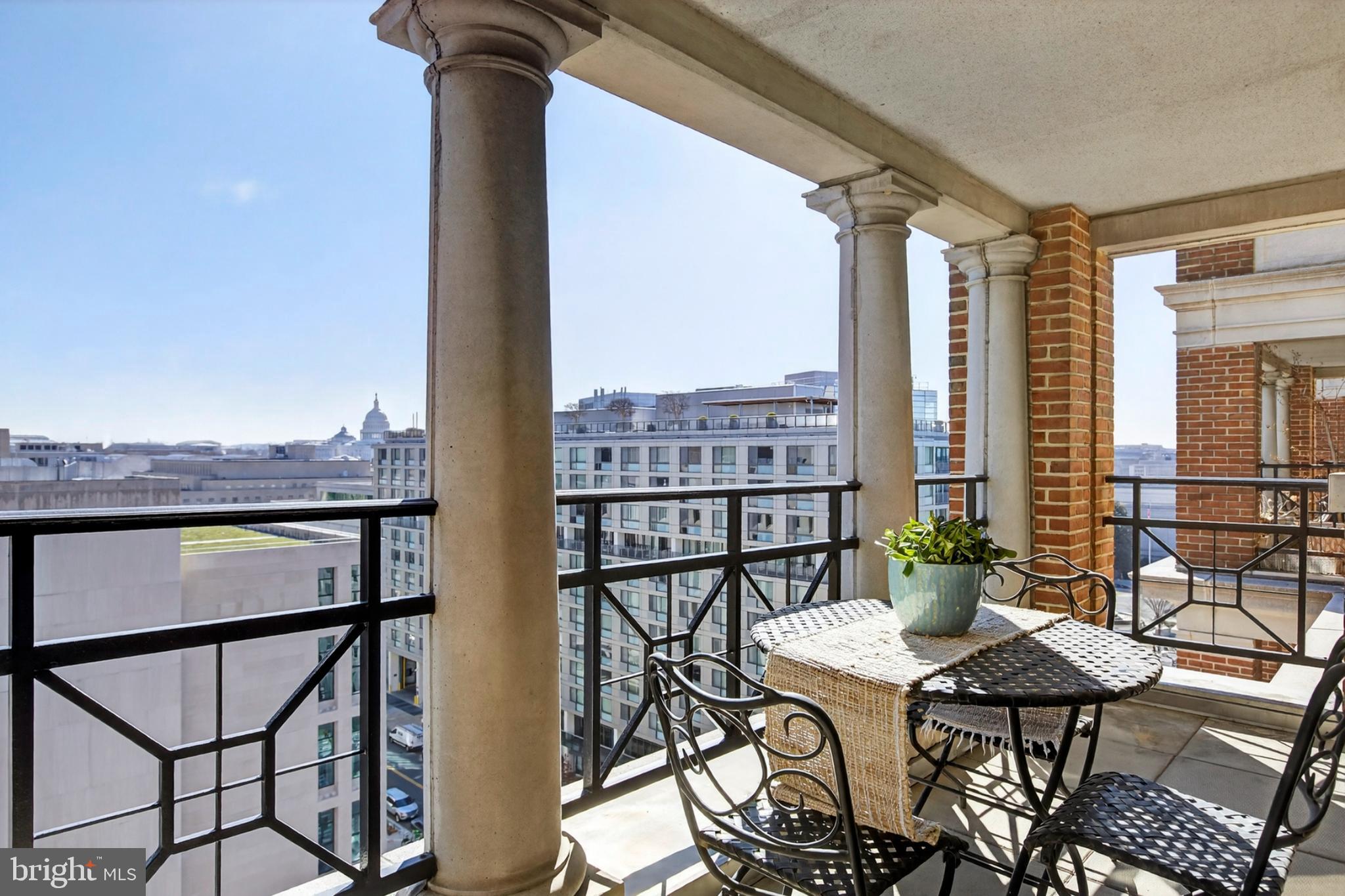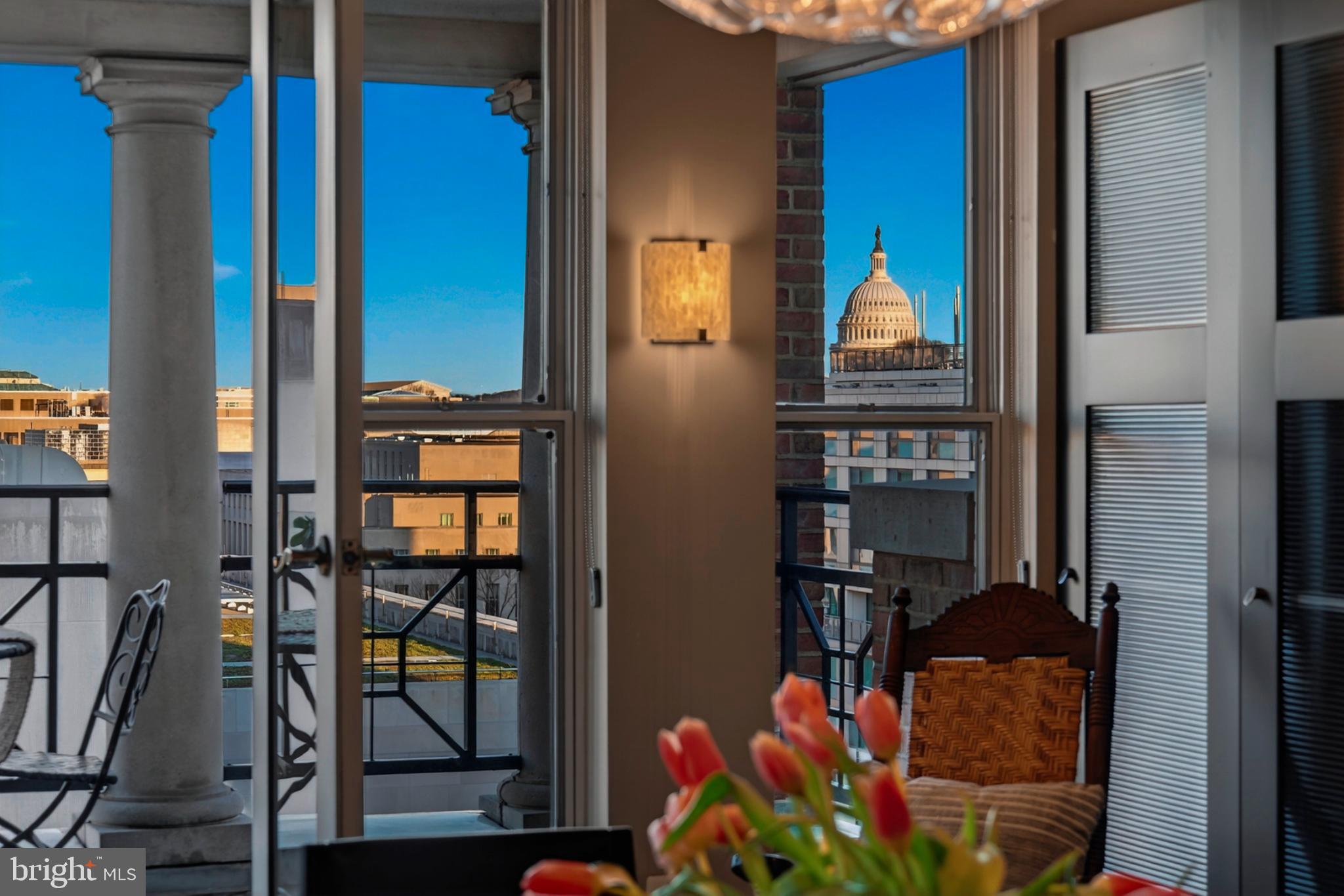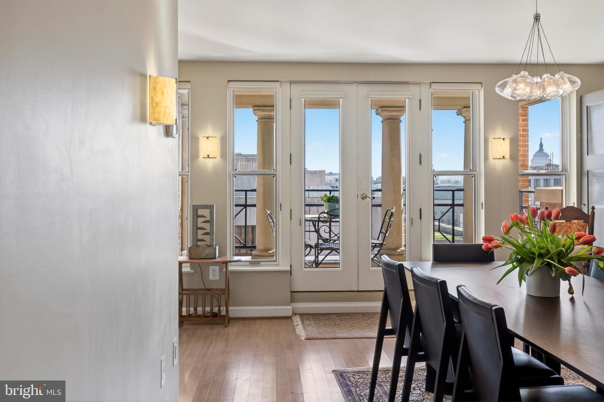 Enjoy jaw dropping Capitol Dome views! Two sundrenched residences seamlessly combined to create generous spaces, over 1230 sf, for elegant entertaining and gracious living. Expansive Living Room with dramatic wall of windows and banquet size Dining Room with French doors opening onto deep balcony with simply stunning Capitol Dome views! Extraordinary Primary Bedroom Suite with full bath, walk in closet and it's own deep balcony with Capitol Dome views. Second bedroom with adjacent full bath. Well executed gourmet kitchen with wine fridge, let the parties begin! The Pennsylvania, full service luxury condominiums with amazing roof deck on the Avenue of Presidents! Two garage rental spaces guaranteed, pet friendly with weight restriction. Rare offering - reward yourself!