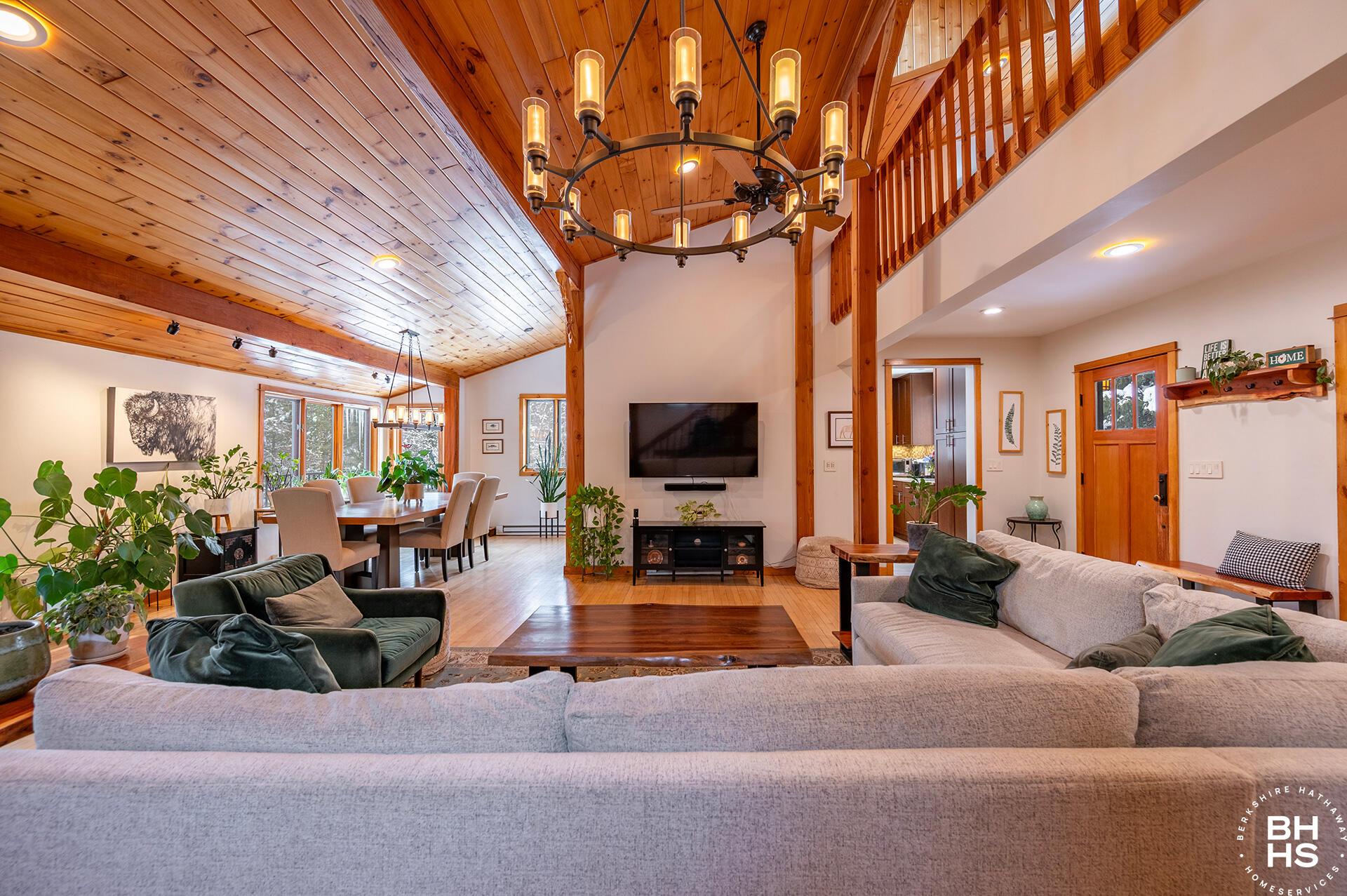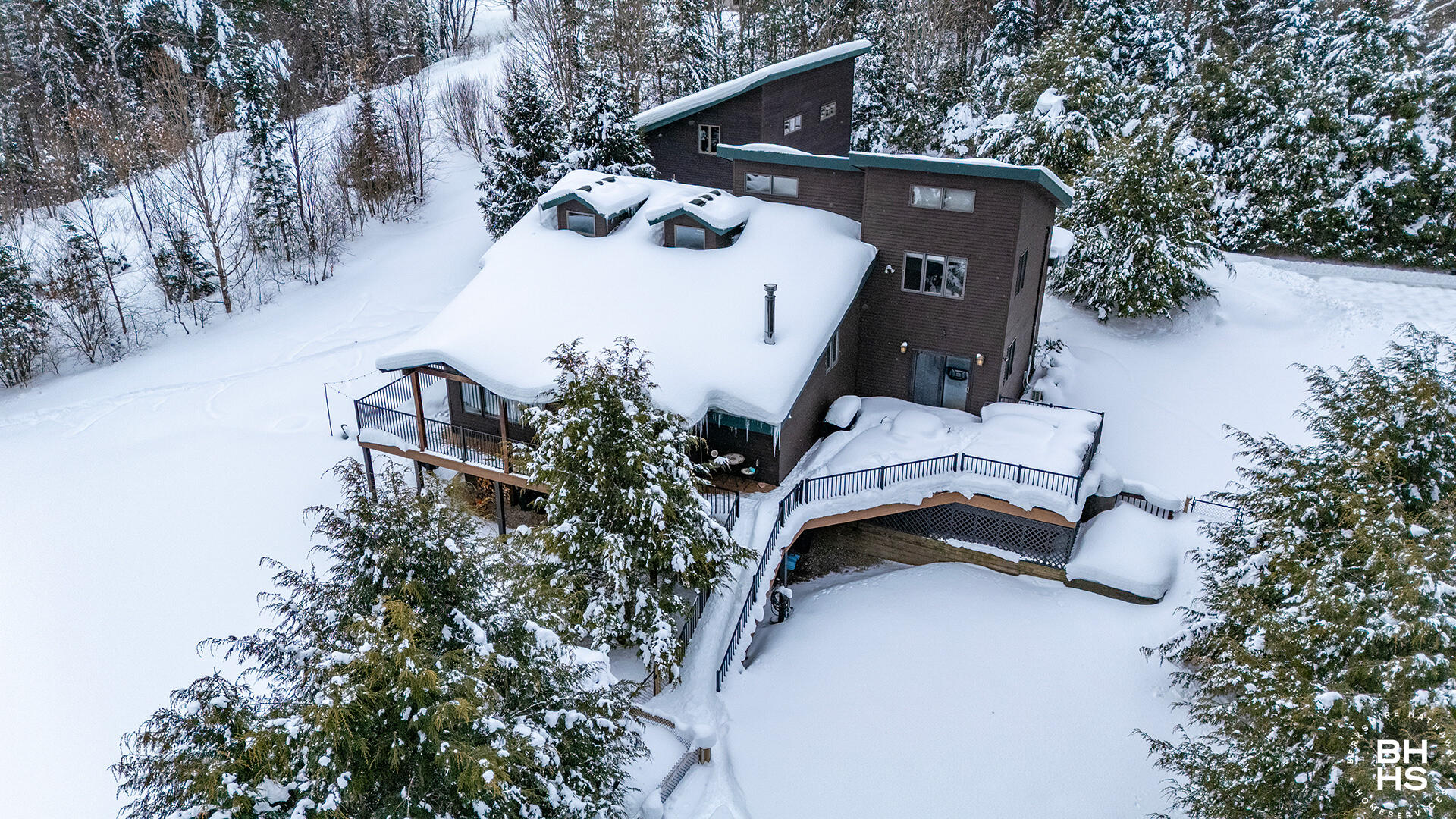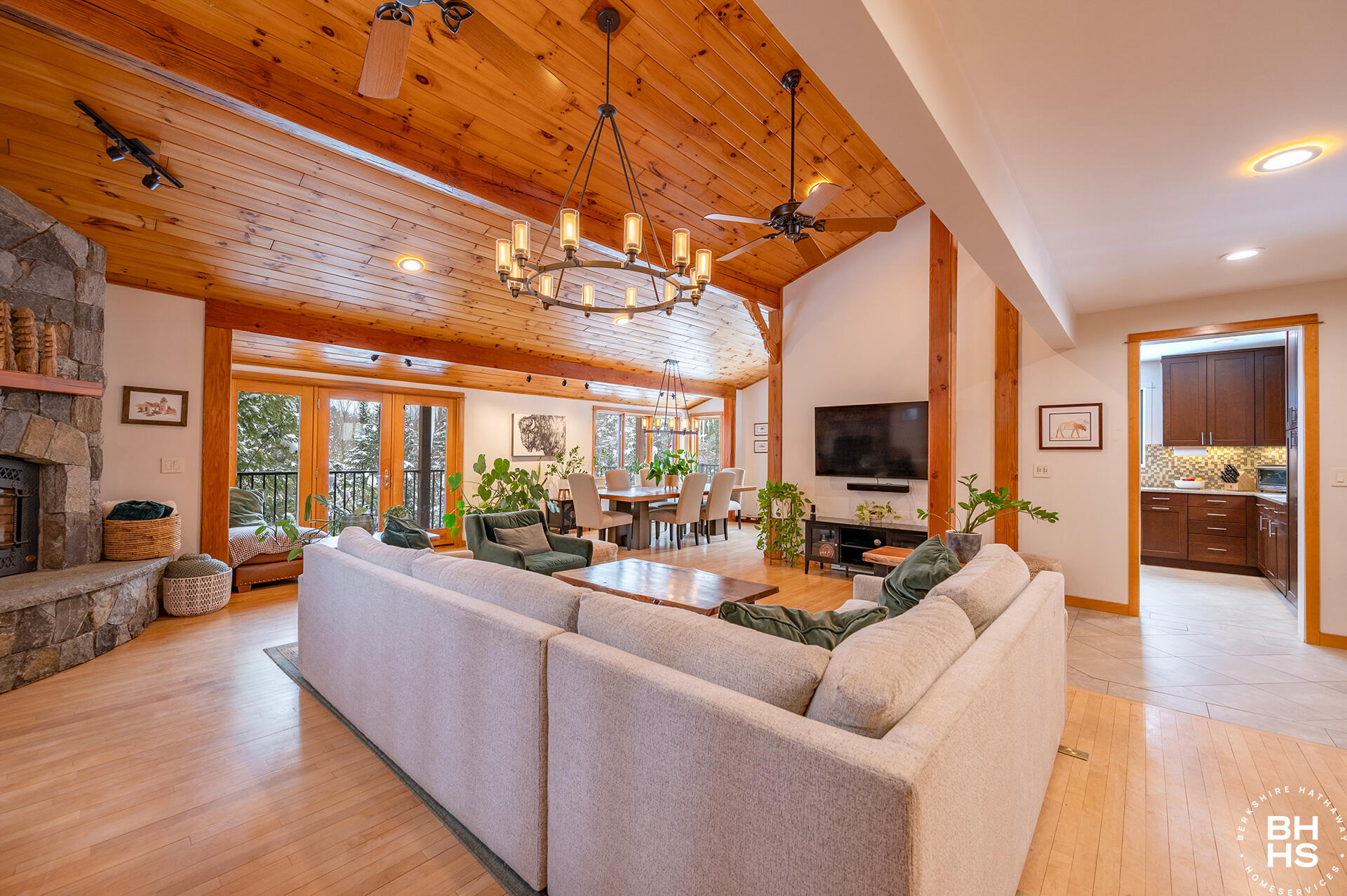 A contemporary Adirondack home nestled in the woods with privacy and beautiful mature fir trees. The main level has an open floor plan with a newer kitchen, dining room, living room with stone fireplace, french doors leading to a new trex deck, a custom full bathroom and two bedrooms. The upper level primary suite is spacious, walk in closet, stunning new bathroom with extensive built in cabinetry and a separate sitting room. The lower walk out level has a bonus/den, and two additional bedrooms which need to have larger egress windows that are easy to improve. The room over the garage is a year round space currently used as a gym but could be modified to a bedroom and bathroom by adding town water. The dining room and chairs will be sold with the house. There are cameras with audio both outside and inside the home.
