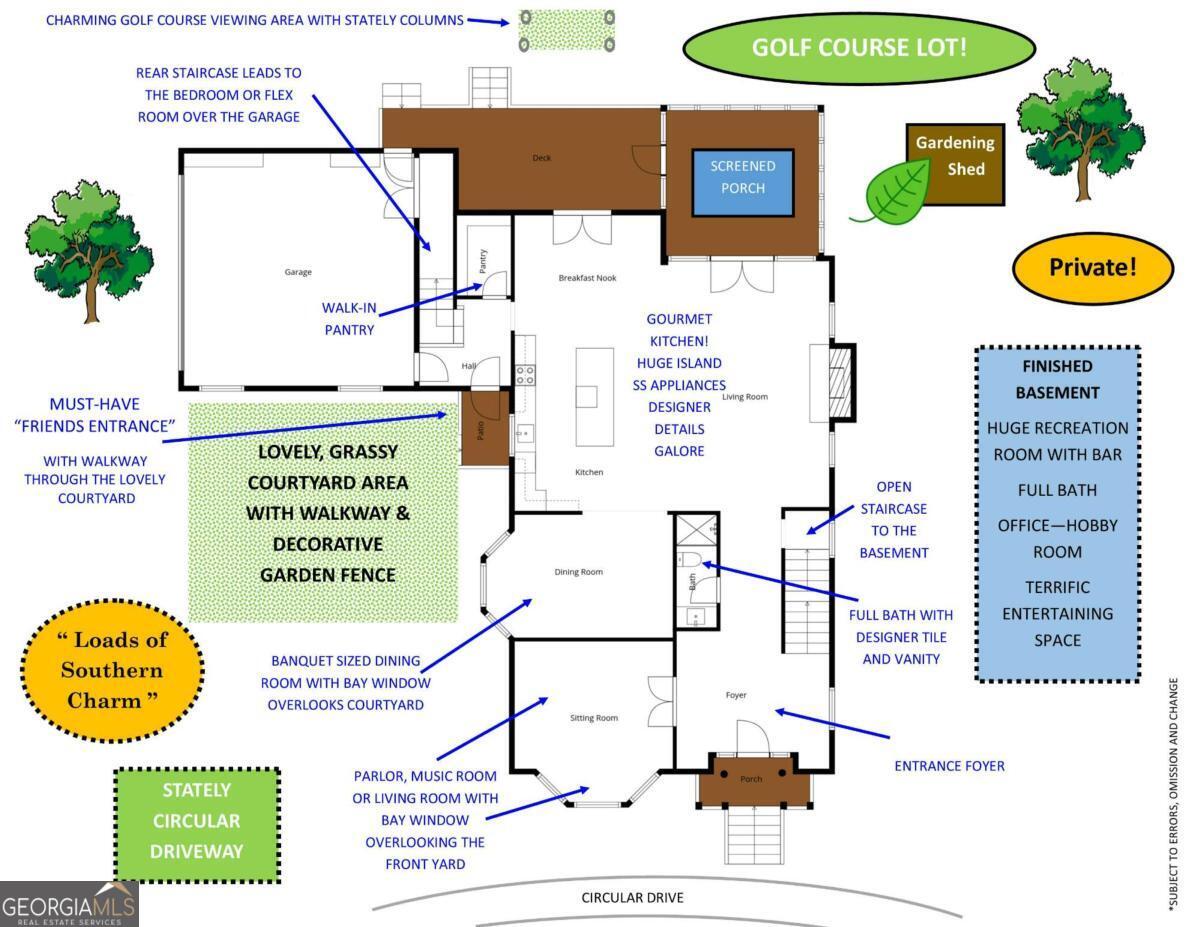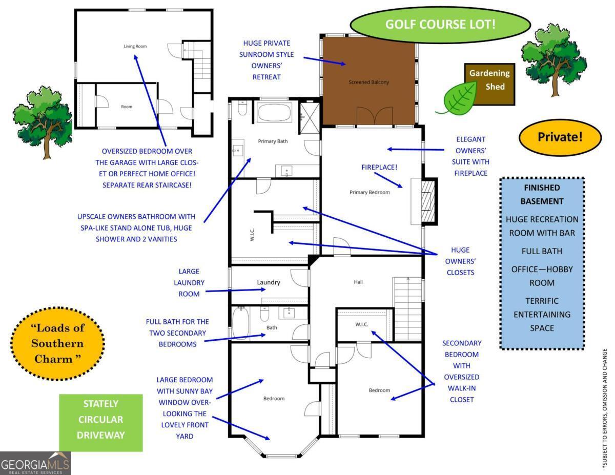 Welcome to Golfview at Newnan Pines! This rare opportunity offers a one-of-a-kind luxury home on a nearly 1-acre golf-course lot. Combining timeless architecture with modern upgrades, this exceptional property boasts "The Southern Charm of a historic Charleston-Style Home" and is conveniently located just over 30 minutes from Hartsfield-Jackson Atlanta International Airport. This impressive residence features a charming courtyard-style home, a circular driveway, and beautifully landscaped grounds that create striking curb appeal. Large windows throughout provide abundant natural light and showcase a peaceful yard with abundant "outdoor living" opportunities. The open-concept floor plan welcomes you with a grand foyer leading into a bright family room with a fireplace. The stylish kitchen flows seamlessly into the formal dining area. A breakfast nook opens to a spacious deck, while the family room connects to a relaxing sunroom overlooking the backyard and golf course. A private office/parlor/music room near the entrance offers a quiet and convenient workspace. The oversized primary suite features HUGE walk-in closets, a luxurious en-suite bath with MUST-HAVE stand-alone tub, designer tile, large shower, two vanities, and private access to the Owner's Private Retreat"/Sunroom-ideal for relaxing and enjoying the evening view. Designed for entertaining, the terrace level includes an Oversized Recreation room, Custom bar, and a unique semi-arched platform suitable for events, recreation, or media space. Enjoy a backyard with a Stately Viewing Area with pergola and expansive lawn, offering plenty of space for outdoor entertaining or creating your ideal retreat. There is also a Quaint Gardening Shed ready for creating an organic garden or beautiful flowering planters to adorn the property! Located in the quiet Golfview subdivision within Newnan Country Club, with convenient access to I-85, Downtown Newnan, restaurants, and shopping. The Historic and Private Newnan Country Club offers resort-style amenities like Golf, Pickleball, Tennis, Olympic Sized Pool and Kids Area, Restaurant and so much more (see club for membership fees and info.). Membership separate from home purchase and not required when living in this neighborhood. Heritage Academy and Downtown Newnan minutes away! Ask about the 1-year Home Warranty!
