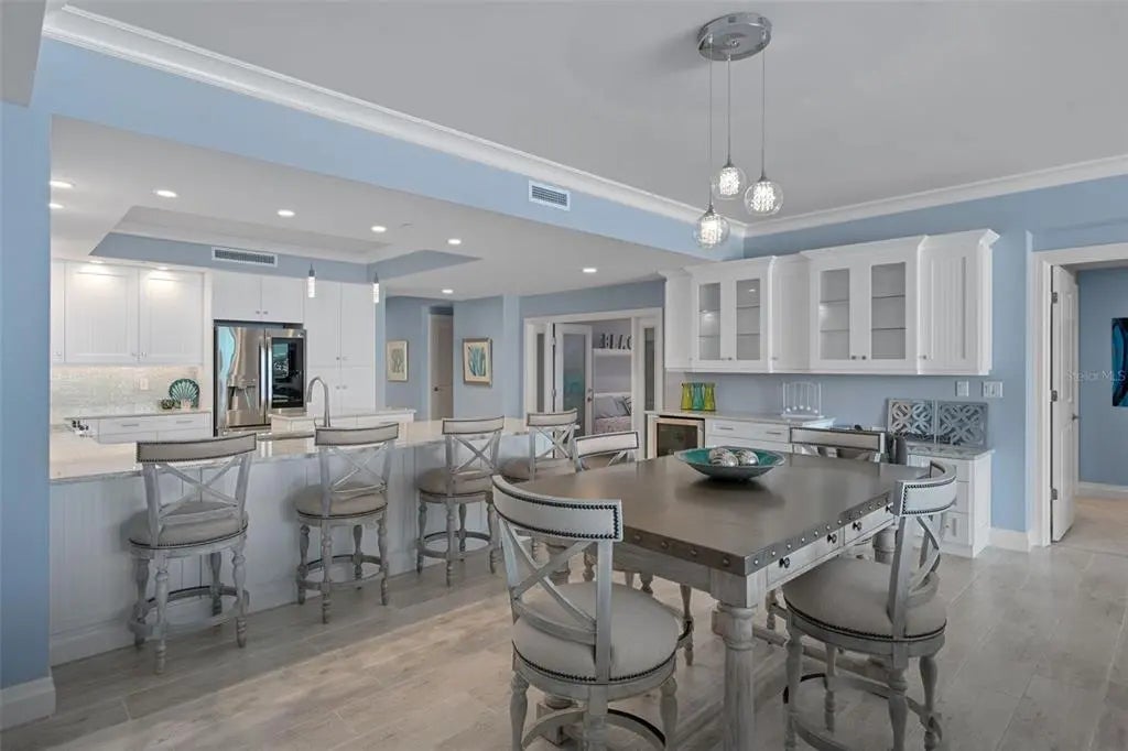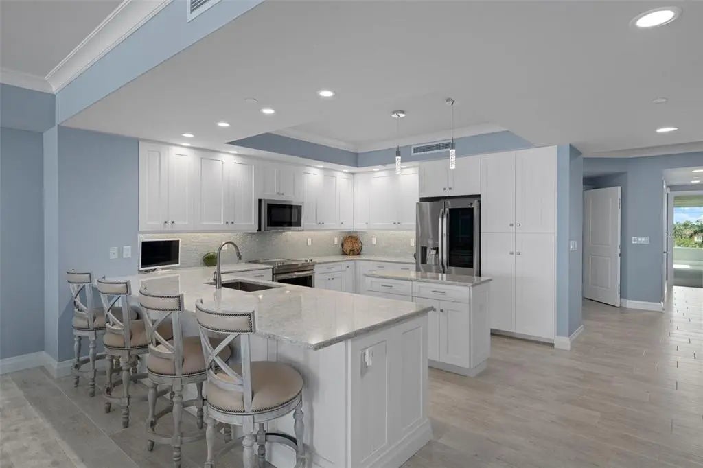 Welcome to an exceptional waterfront condominium in the highly sought-after gated community of Sunset Pointe at Collany Key on the beautiful island of Tierra Verde, Florida. Perfectly positioned along the Gulf of Mexico, this elegant 3-bedroom, 3.5-bath condominium offers 2,852 square feet of sophisticated coastal living with breathtaking water views and unforgettable sunsets. Arrive via your semi-private elevator and enter your private foyer that opens to a light-filled interior designed for both comfort and entertaining. The open-concept floor plan seamlessly connects the living room and dining area, to a beautifully appointed kitchen with high end appliances, custom cabinetry and abundant counter space. Expansive floor-to-ceiling sliding glass doors frame panoramic Gulf views and open to a generous waterfront balcony-the perfect place to enjoy spectacular sunsets and sea breezes. Just off the kitchen, a versatile den or office with elegant French glass doors offers flexible living space. The primary suite is a true private retreat, featuring direct balcony access, spacious walk-in closets, and a spa-inspired en-suite bath complete with dual vanities, a soaking tub, and a large walk-in shower. Two additional well-appointed guest bedrooms, each with their own baths, provide comfort and privacy for family and visitors. Additional highlights include a full laundry and utility room, a double-car garage, and a private air-conditioned storage unit, offering both convenience and functionality. Residents of Sunset Pointe at Collany Key enjoy an array of resort-style waterfront amenities, including: Private beach access, Geothermal heated saltwater pool and spa, Beachside fire pits and gathering areas, fitness center, Kayak launch and waterfront boardwalk, Fishing pier and scenic walking trails and multiple barbecue stations around this beachside property. Surrounded by the pristine natural beauty of Shell Key Preserve, this exclusive gated community offers unspoiled coastal nature. Located just minutes from Tierra Verde's waterfront restaurants, marinas, and boating, approximately 15 minutes to vibrant downtown St. Petersburg, and within convenient reach of Tampa International Airport and St. Pete-Clearwater International Airport. This is the perfect Gulf view condo to enjoy the Florida sunshine and call home! Call for your showing today!