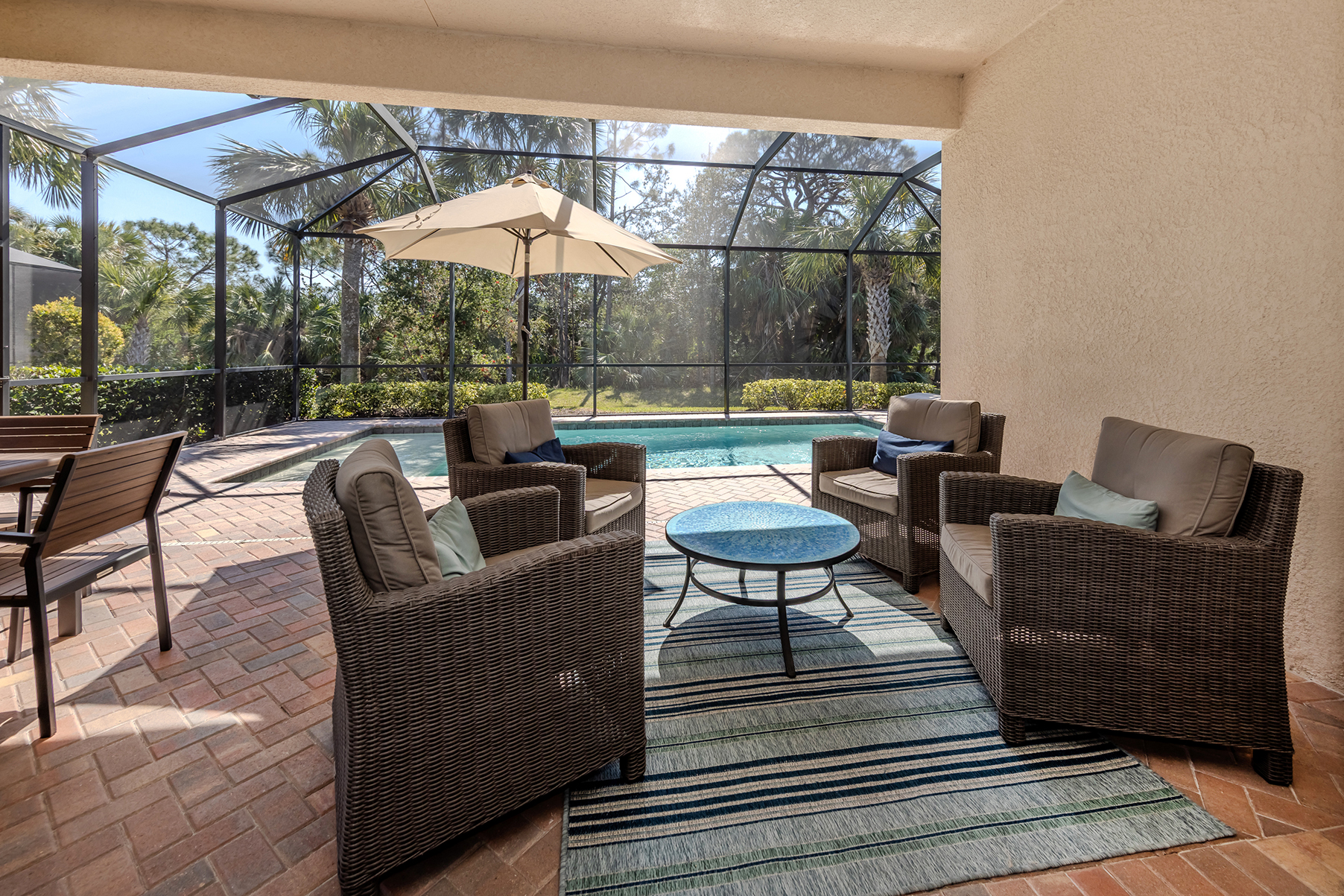 The screened lanai is perfect for both dining and lounging. The pool features a sundeck for relaxing as well as a solar heater for extended pool use without the utility bill.