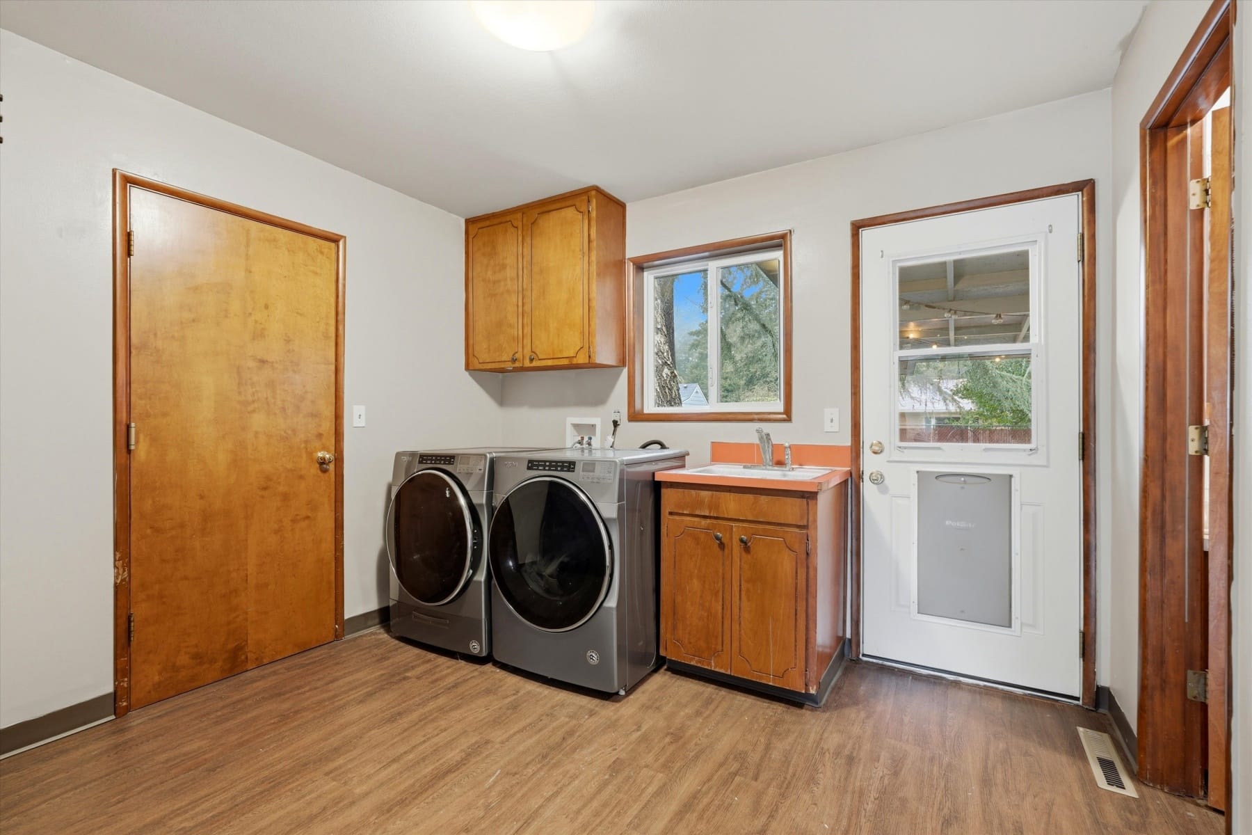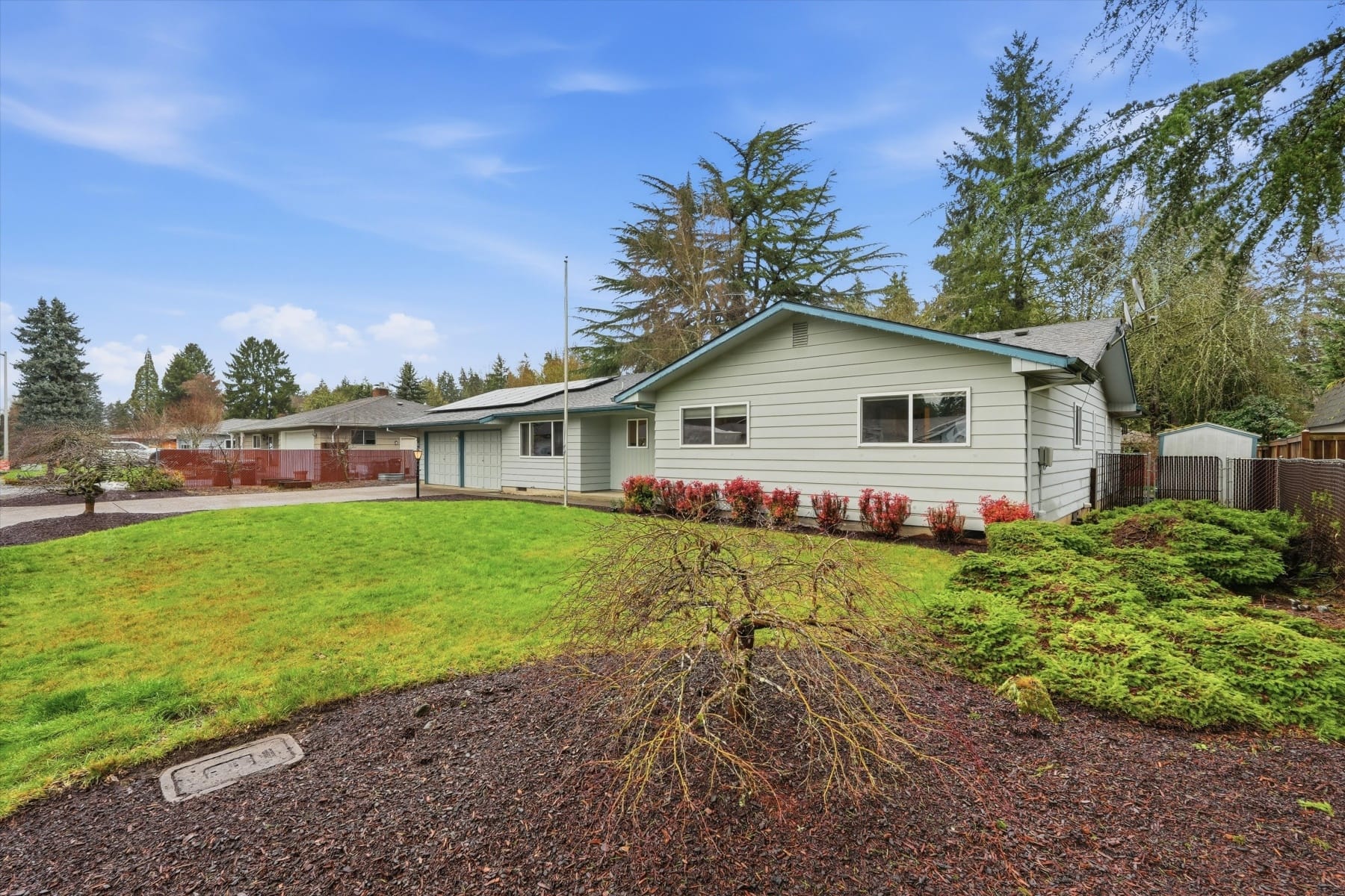 Welcome to 1250 SE 36th Ave in the desirable Bentley Orchard neighborhood of Hillsboro! This spacious single-level 3-bedroom home offers a wonderful, well-designed floorplan with generous living areas and an easy, comfortable flow for everyday living and entertaining.Recent updates include new LVT flooring, new carpet, and fresh interior paint. Energy-efficient features such as owned solar panels, a new furnace, and a new heat pump provide long-term value and peace of mind. The oversized laundry room with deep sink and convenient half bath adds flexibility, while an additional dedicated water heater in the primary bath enhances functionality.Situated on a spacious lot with sprinkler system and raised garden beds, the outdoor space is ideal for relaxing or hosting gatherings under the covered deck. The oversized two-car garage, RV parking, and two powered storage sheds offer exceptional storage and versatility. Bentley Orchard is known for its established feel, pride of ownership, and convenient proximity to parks, schools, shopping, and commuter routes'making it a highly sought-after place to call home.Don't miss this opportunity! Home Energy Score = 2. HES Report at https://rpt.greenbuildingregistry.com/hes/OR10245647