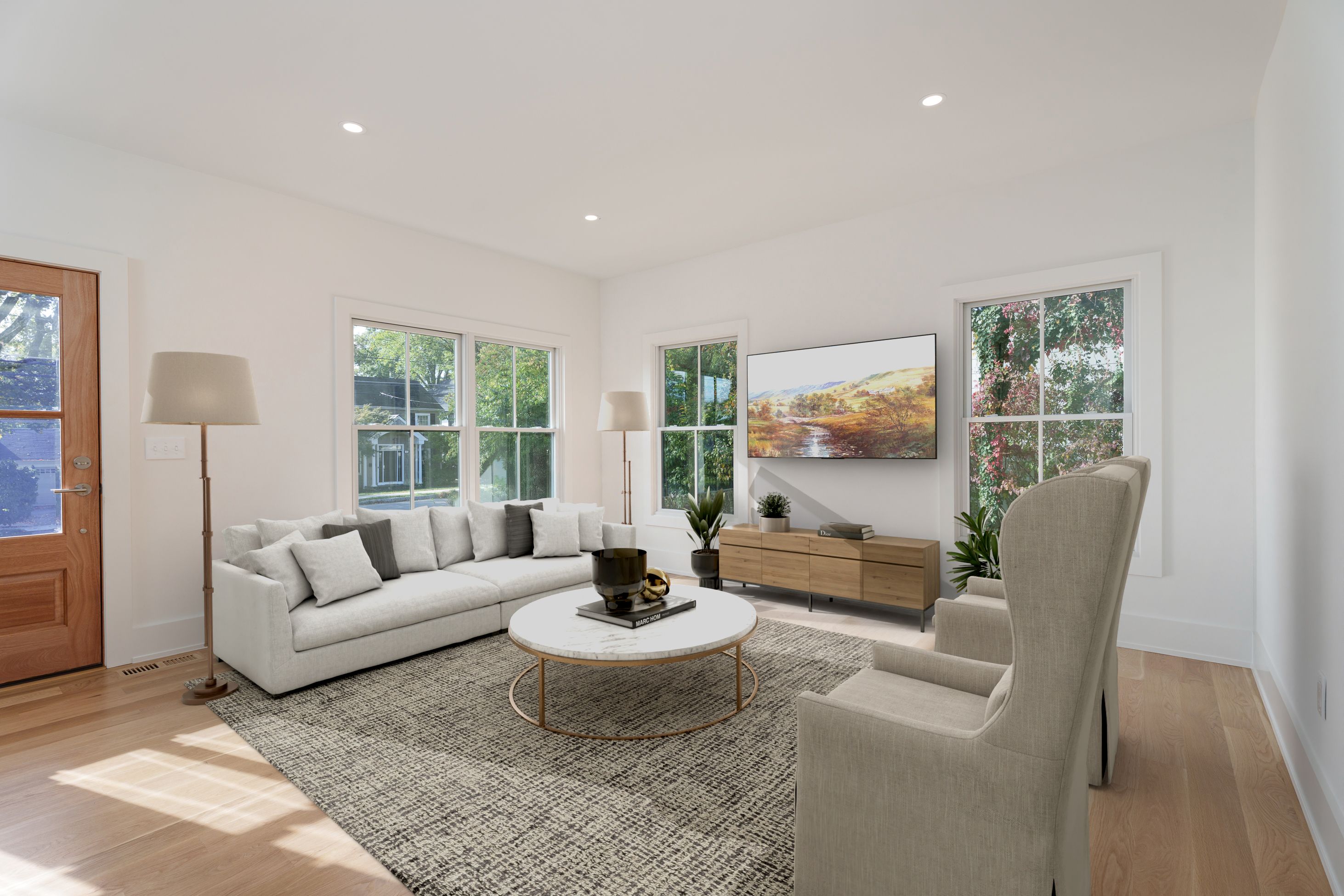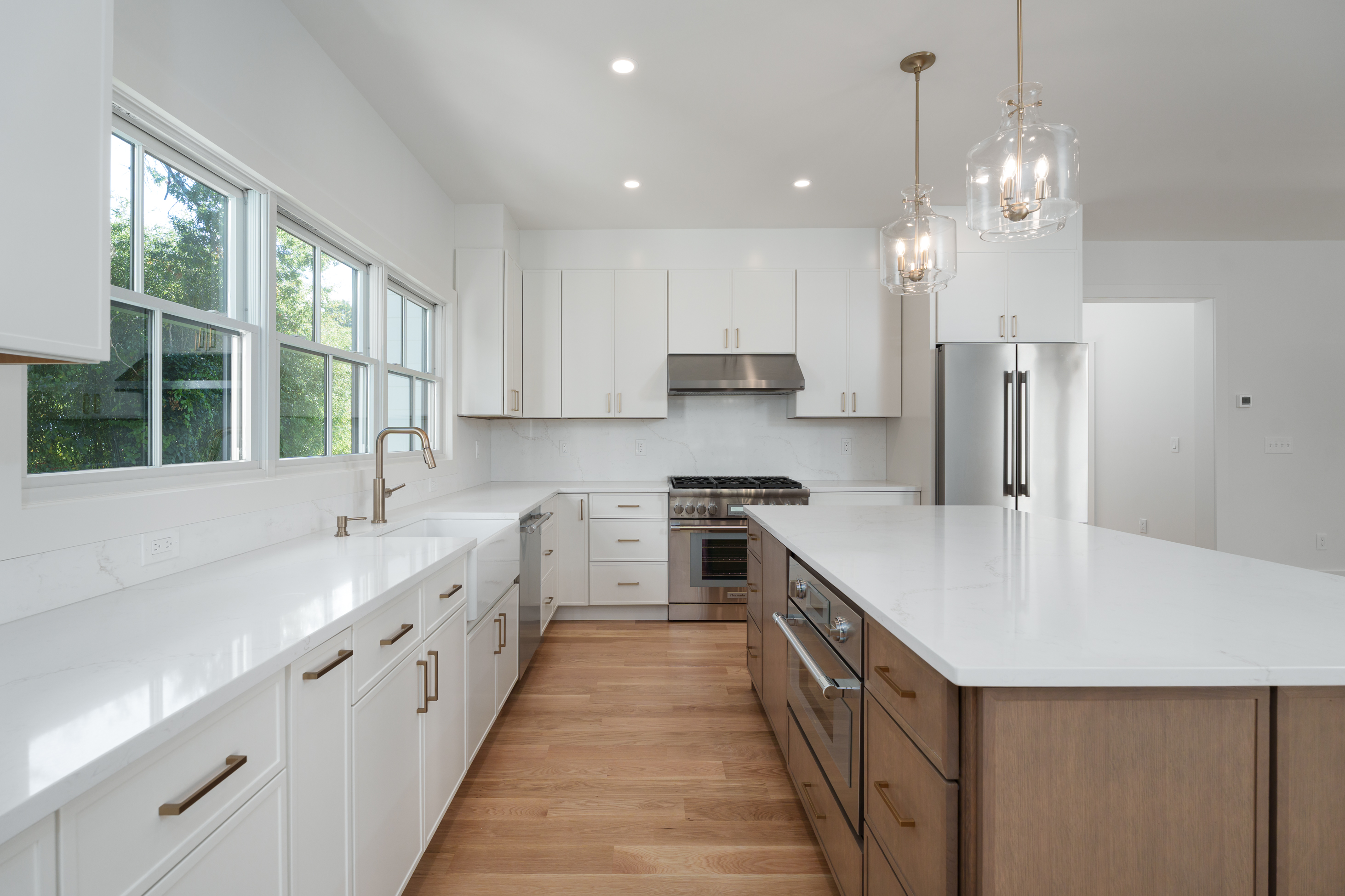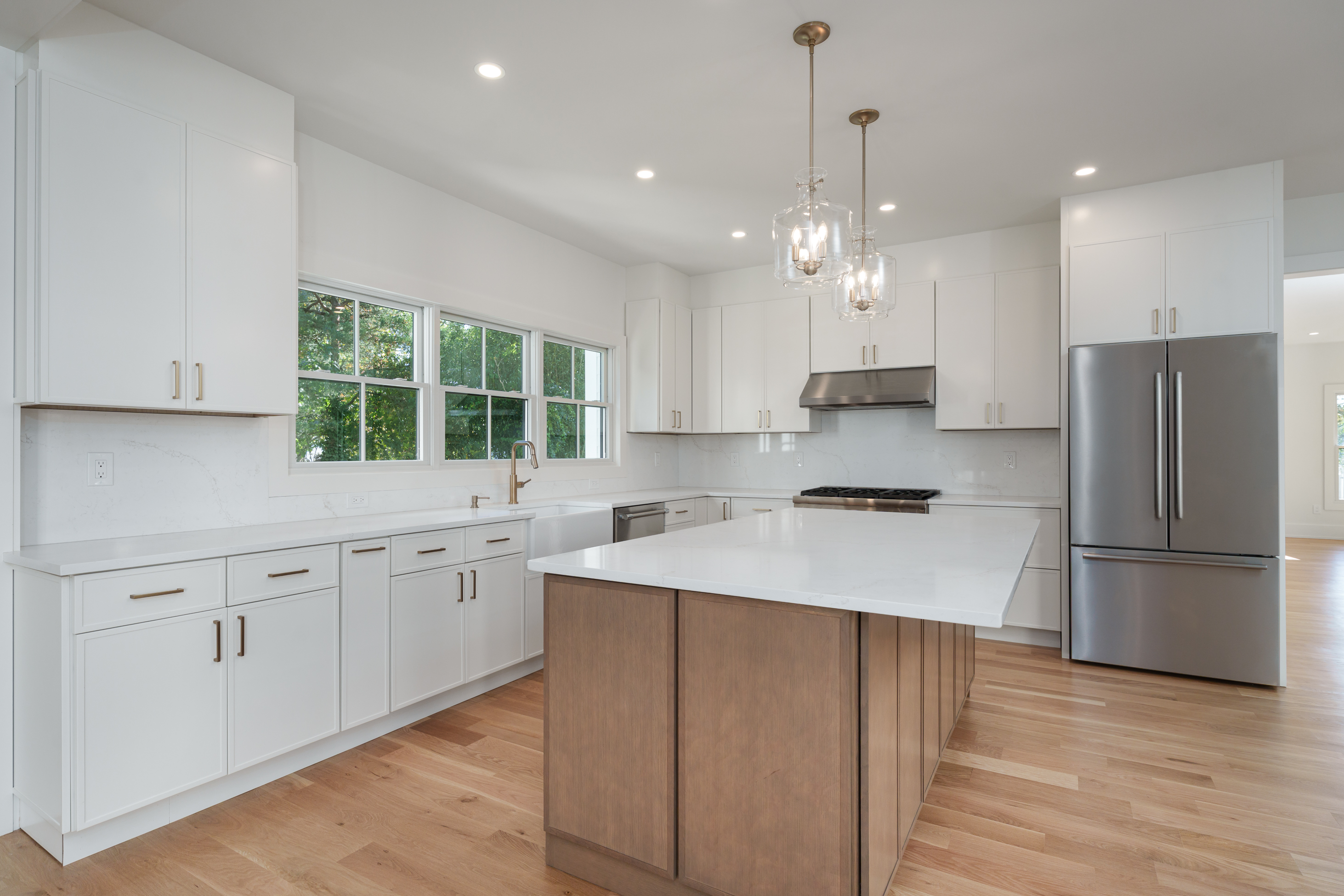 Stunning, newly built Modern Farmhouse spanning over 4,000 square feet across four finished levels in the heart of town. In Princeton's sought-after Littlebrook neighborhood, mere blocks from the middle school, high school and the Princeton Shopping Center, this brand-new modern farmhouse features top-quality craftsmanship, clean lines, and a well thought-out floor plan. Five generous bedrooms and four full baths are complimented by a spacious first floor that’s ideal for entertaining, while the finished third floor and basement offer endless options for the entire family. Built to the highest standards using Hardie-Plank siding and Andersen Architectural Series windows, it stands on a fully landscaped .31-acre lot with bluestone hardscaping and large rear and side yards. Inside, five-inch solid white oak floors edged with tall baseboards and nine-foot ceilings create seamless flow through distinct, yet open, rooms. The kitchen, dining area, and family room spaces open to the back patio and are ready for entertaining. A sleek gas fireplace with quartz surround and vertical shiplap lends a warm, yet modern, vibe to the family room. The large, open kitchen shines with Thermador appliances, quartz countertops and backsplash, a custom island, and champagne bronze fixtures. An adjacent wet bar and walk-in pantry has matching hardware and countertops, as well as a beverage fridge. The first floor also offers a sunlit living room, large side-entry mudroom with custom cabinetry, and a versatile bedroom or home office beside a chic full bath. Upstairs, the main suite offers privacy and luxury. The large bedroom basks in natural light from three exposures beneath a vaulted ceiling. An en-suite bath with soaking tub and rain shower, as well as a walk-in closet with maple cabinetry complete the oasis. An additional three well-sized bedrooms round out the second floor, two with a shared hall bath and the third with a full en-suite bath. A second floor hall laundry room provides convenience for all. But there’s still more to come! Head upstairs to the fully finished third floor, offering ample space for work, entertainment, yoga; or all three! High efficiency HVAC, EV charging, and exterior irrigation complete the property, which is priced below recent comparable sales. Some of the photos include virtual staging. Finished square footage for the third floor and the basement are 490 and 450 square feet, respectively.