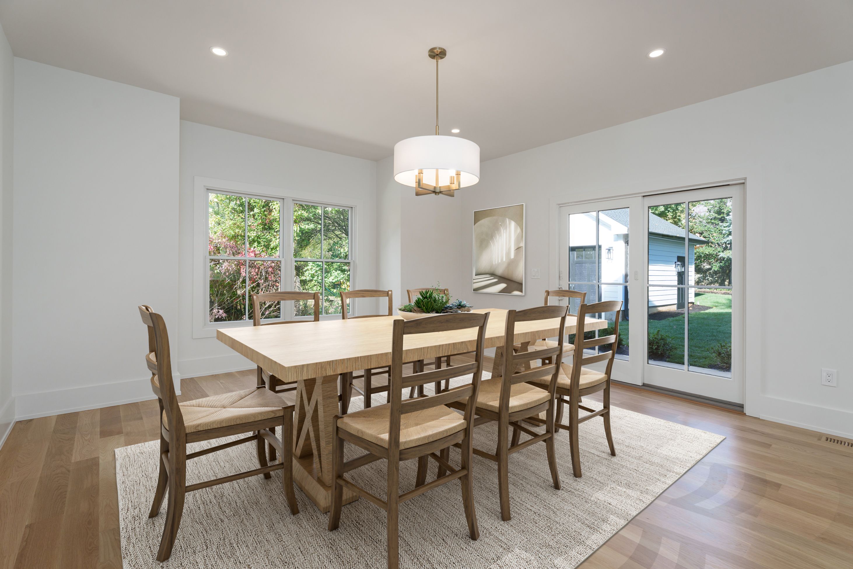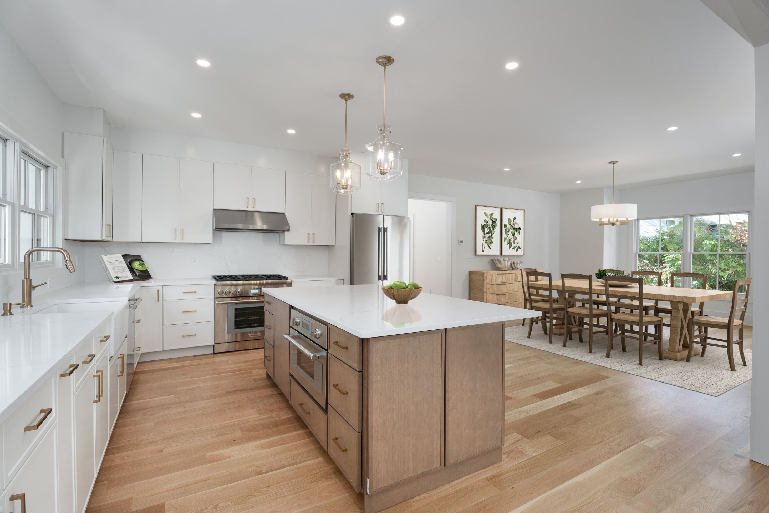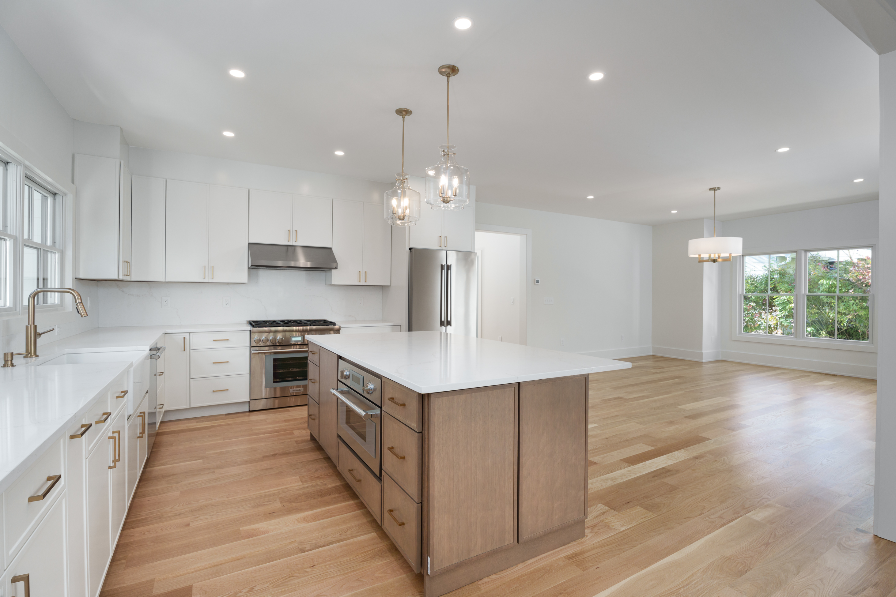 Stunning, newly built Modern Farmhouse spanning over 4,000 square feet across four finished levels in the heart of town. In Princeton's sought-after Littlebrook neighborhood, mere blocks from the middle school, high school and the Princeton Shopping Center, this brand-new modern farmhouse features top-quality craftsmanship, clean lines, and a well thought-out floor plan. Five generous bedrooms and four full baths are complimented by a spacious first floor that’s ideal for entertaining, while the finished third floor and basement offer endless options for the entire family. Built to the highest standards using Hardie-Plank siding and Andersen Architectural Series windows, it stands on a fully landscaped .31-acre lot with bluestone hardscaping and large rear and side yards. Inside, five-inch solid white oak floors edged with tall baseboards and nine-foot ceilings create seamless flow through distinct, yet open, rooms. The kitchen, dining area, and family room spaces open to the back patio and are ready for entertaining. A sleek gas fireplace with quartz surround and vertical shiplap lends a warm, yet modern, vibe to the family room. The large, open kitchen shines with Thermador appliances, quartz countertops and backsplash, a custom island, and champagne bronze fixtures. An adjacent wet bar and walk-in pantry has matching hardware and countertops, as well as a beverage fridge. The first floor also offers a sunlit living room, large side-entry mudroom with custom cabinetry, and a versatile bedroom or home office beside a chic full bath. Upstairs, the main suite offers privacy and luxury. The large bedroom basks in natural light from three exposures beneath a vaulted ceiling. An en-suite bath with soaking tub and rain shower, as well as a walk-in closet with maple cabinetry complete the oasis. An additional three well-sized bedrooms round out the second floor, two with a shared hall bath and the third with a full en-suite bath. A second floor hall laundry room provides convenience for all. But there’s still more to come! Head upstairs to the fully finished third floor, offering ample space for work, entertainment, yoga; or all three! High efficiency HVAC, EV charging, and exterior irrigation complete the property, which is priced below recent comparable sales. Some of the photos include virtual staging. Finished square footage for the third floor and the basement are 490 and 450 square feet, respectively.