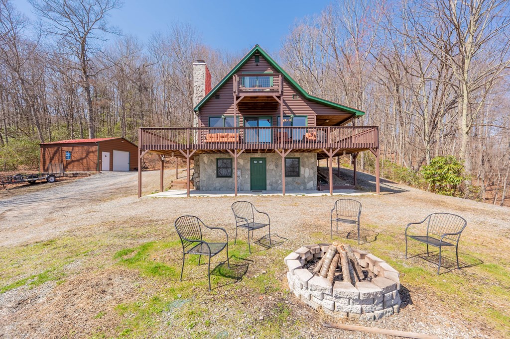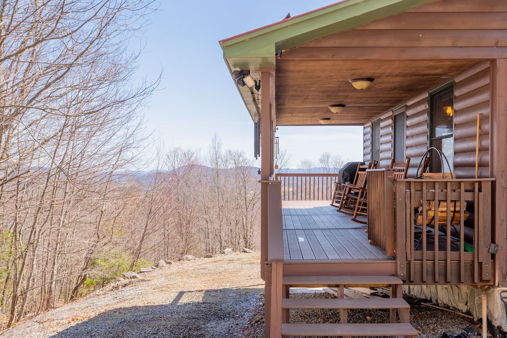 Do not miss out on this private Mountain cabin retreat with views, adjoining the Jefferson National Forest with access to horse trails and walking trails, located just a short drive to Grayson Highlands State Park. 2 bedroom, 2 bath log sided cabin has been thoughtfully updated with new replaced siding and new composite decking on both porches. The wrap around deck is prefect for entertaining or just relaxing and taking in the mountain sounds. Inside the main level features open concept highlighted by a gorgeous fire place. The upstairs master suite with a private bath and it's own balcony, providing the perfect spot to enjoy your morning coffee while soaking in the mountain views. The fully finished lower level is where you will find a second option for the master suite with a full bath, providing excellent flexibility for guests. Whether you're looking for a peaceful mountain getaway, full time living or a potential Airbnb investment, this cabin offers the prefect blend of privacy, comfort and access to outdoor adventure.
