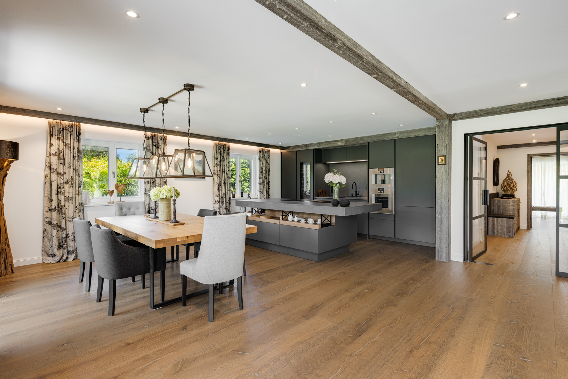 In the middle of the picturesque Alpine foothills of Rottach-Egern, just a few steps away from Lake Tegernsee, this exclusive garden apartment awaits you - a refuge for people with a sense of aesthetics, quality and Alpine lifestyle. Situated on an adjoining meadow plot in a particularly quiet residential street with no through traffic, it offers an exceptional view of the Wallberg and Setzberg - a living experience between nature and luxurious comfort.The apartment is located on the first floor of a high-quality two-party house within a small community of only four owners - discreet, private and in absolutely mint condition. Around 200 m² of comfortable living space combine stylish elegance, warm materials and natural chalet-style living to create a harmonious spatial concept. The floor plan is spacious and functional. The dressing room connects the master bedroom directly to the master bathroom, creating maximum comfort. The heart of the property is the spacious living and dining area with an open fireplace, real wood parquet flooring and floor-to-ceiling panoramic windows that impressively showcase the view of the natural surroundings. A custom-made Poggenpohl kitchen with Gaggenau appliances, high-quality reclaimed wood fronts and exclusive joinery fittings underline the high standard of fittings throughout.The private garden with special usage rights and a charming garden shed invite you to spend relaxing hours outdoors. A separately usable apartment in the basement with natural light, bathroom and utility room offers additional living comfort. An electric fireplace, prepared connections for a sauna, a central alarm system and electrically controlled shutters complete the harmonious and high-quality furnishing concept.Three spacious underground parking spaces round off this exceptional property. This garden apartment is more than just a home - it is a place to breathe, live and arrive. Ideally, this apartment can also be used as a second home. For anyone looking for the highest quality of life in one of the most sought-after locations in Upper Bavaria.Energy dataEA-B; 16.4 kWh/(m²*a); Electricity; Year of construction 2023; A_PLUSCommissionThe brokerage contract with us is concluded by written agreement or confirmation in text form on the basis of the property exposé and our General Terms and Conditions. The commission to be paid by the buyer to MIR München International Realty Verwaltungs GmbH, master licensee of München I Sotheby`s International Realty and Tegernsee I Sotheby`s International Realty, in the event that a notarized purchase agreement is concluded, is 3.57% (incl. 19% VAT) of the purchase price and is due upon conclusion of the notarized purchase agreement. The seller has to pay us a commission in the same amount.