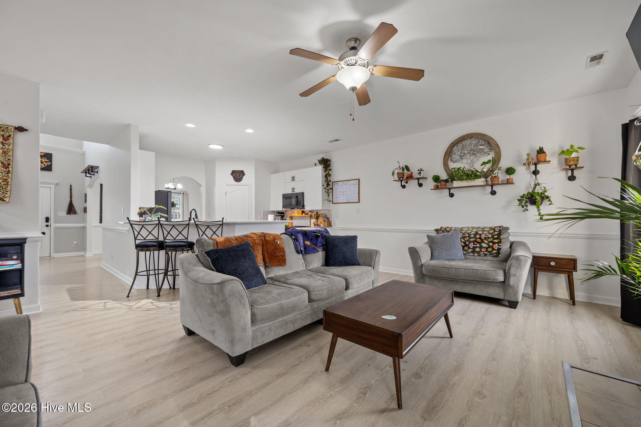 Some homes just have that feeling the moment you arrive. Sidewalk-lined streets, porch lights glowing at dusk, and the quiet rhythm of that sweet Richlands lifestyle -- welcome to 105 Groveshire Place! Tucked into a peaceful setting where life slows down just enough, but Starbucks, Walmart, and everyday conveniences are still around the corner -- this beautifully updated home offers space, style, and that effortless sense of home. Step inside and natural light pours across the light, modern flooring, creating a bright, airy feel throughout the main living spaces. The kitchen has been completely updated with new cabinetry, quartz countertops, backsplash, appliances, and hardware --all thoughtfully designed. To top it off, the beautifully redesigned pantry with built-in shelving makes everyday organization feel effortless. With five bedrooms, there's room for everyone to spread out here -- and the downstairs primary suite offers a retreat of its own. The spa-like bath features a modern barn door entry, updated vanity, sleek fixtures, and a walk-in tiled shower, while two walk-in closets provide plenty of space for all the things! Upstairs, 4 additional bedrooms offer flexibility for guests, hobbies, home offices, or whatever your next chapter calls for. Outside is where the magic continues. A large covered patio and dreamy backyard firepit area set the stage for slow evenings, string lights, and s'mores under the stars -- the kind of backyard where memories seem to happen naturally. With extensive updates completed within the last few years including new flooring, kitchen and bathroom renovations, refreshed paint, laundry room upgrades, patio cover, and more -- the big work has already been thoughtfully curated. For added peace of mind, the sellers are offering a one-year home warranty for the new owner. All that's left is to settle in and enjoy an exceptional home that simply feels good!