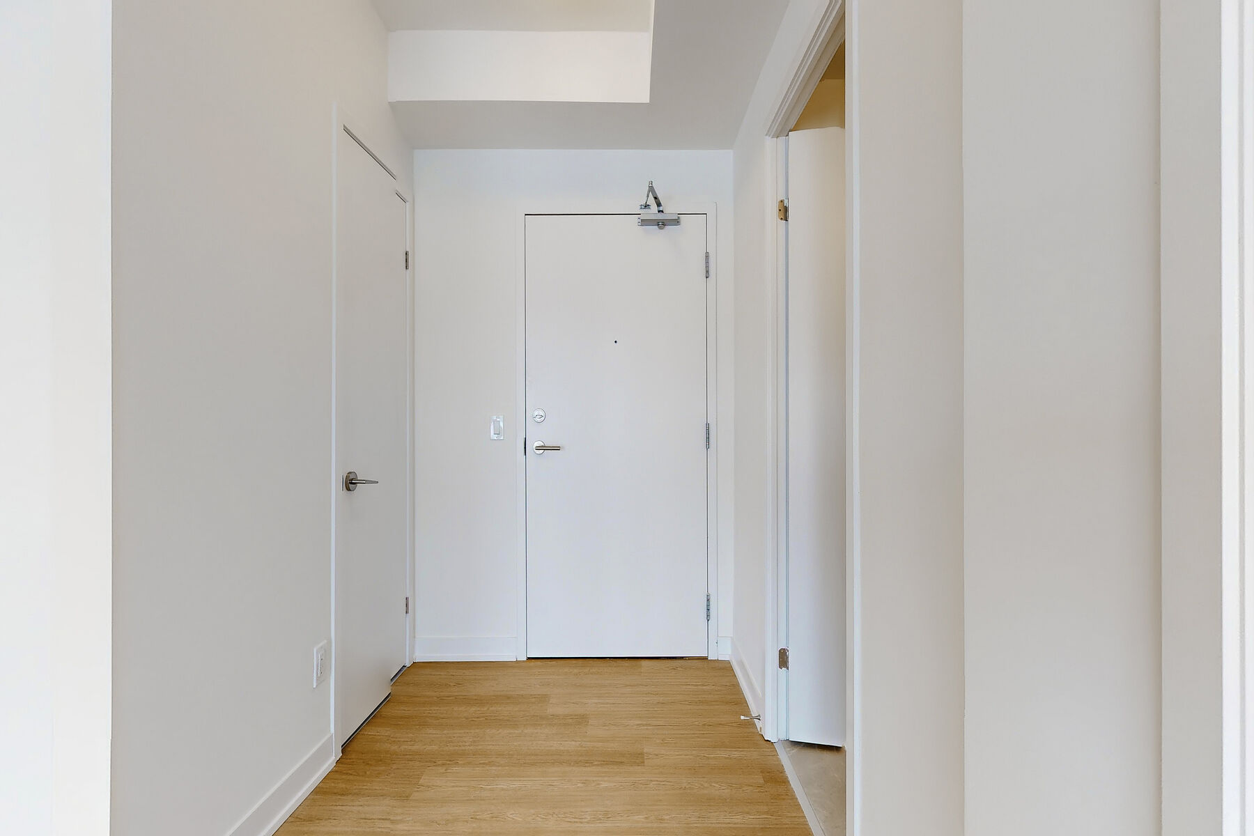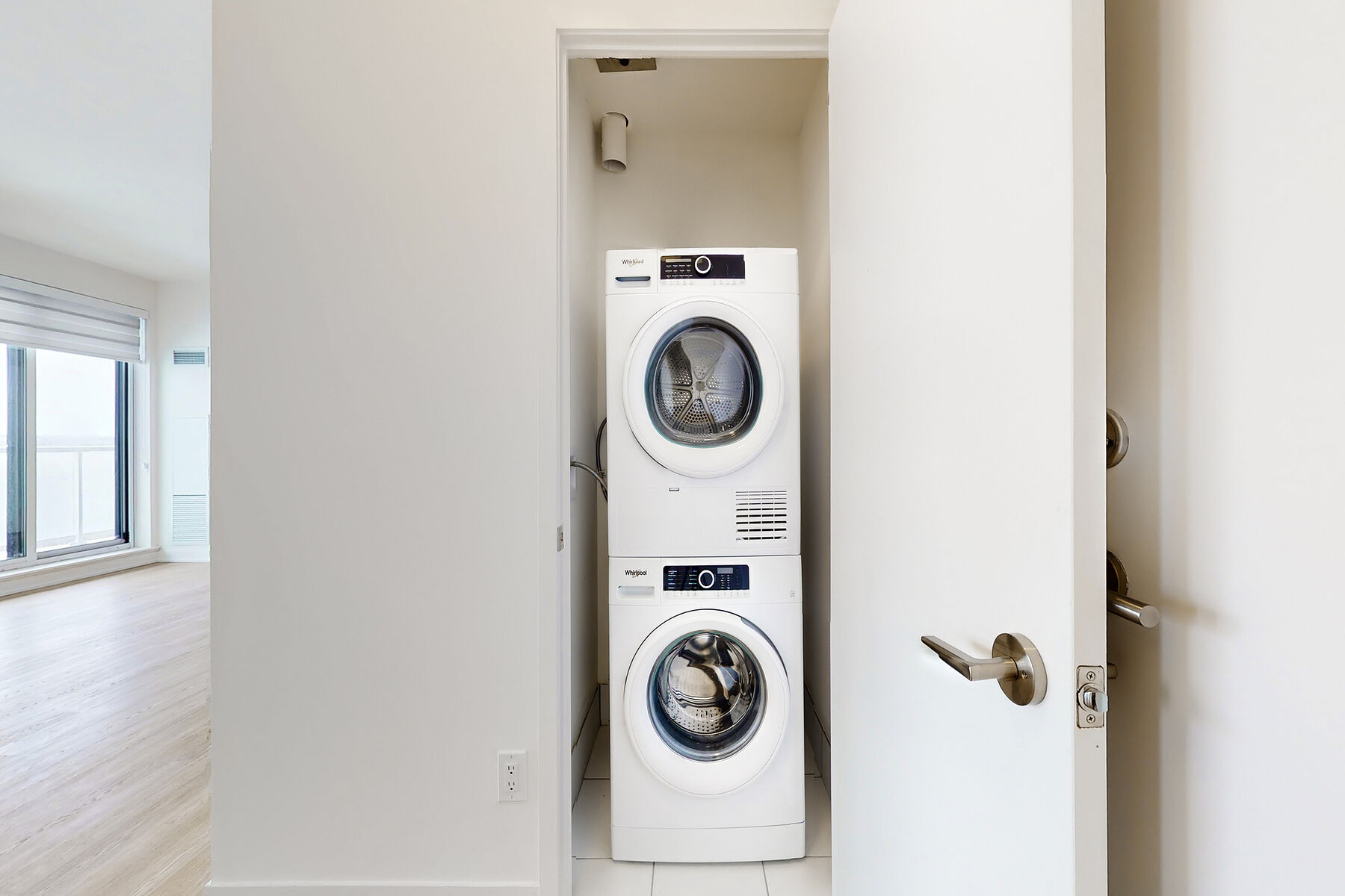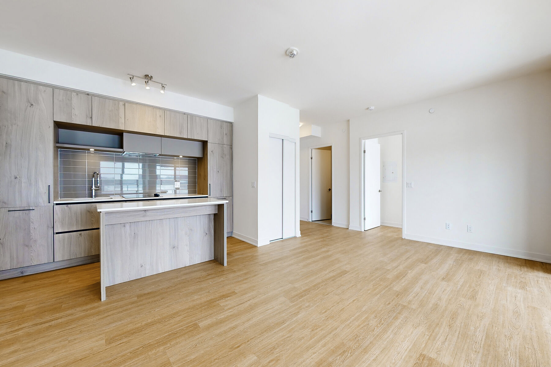 Available immediately. 2 bedroom split floorplan, approximately 908SF (as per builder's plan) + Balcony. clear view, modern integrated appliances, ensuite laundry and much more. Includes 1 parking & 1 locker. Building amenities include: concierge, gym, kids room, theatre room, games room (with pool table), business room, recreation room, piano room, rooftop area with communal BBQ in summer months, and visitors parking. Tenant pays tenant's insurance and Hydro + Water through Metergy. No pets. 1 year min. Applicants to submit employment letter, gov't photo I.D., current pay stubs, rental application, full credit report with all pages. Landlord may conduct separate credit check & interview. Video interview required.