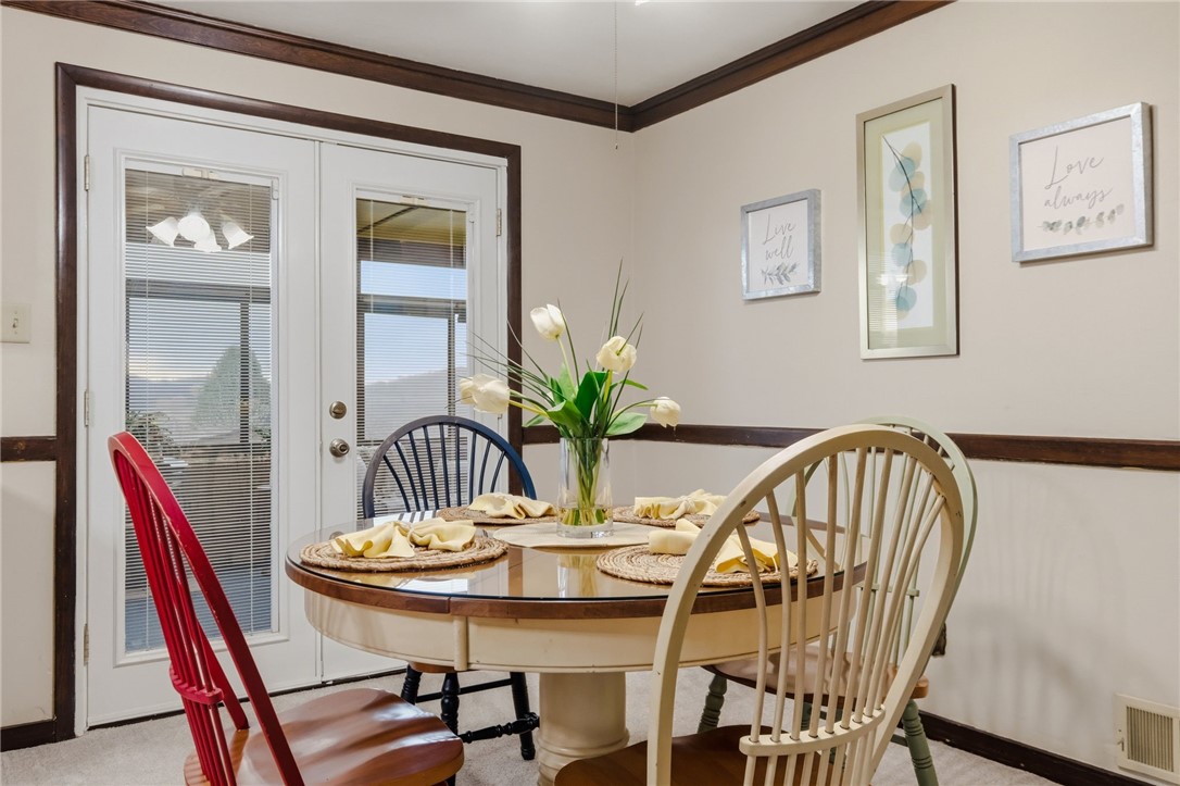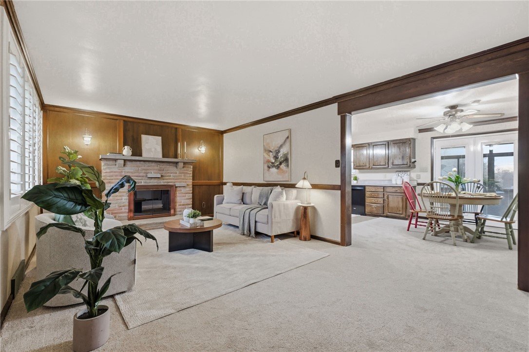 Meticulously maintained ranch home owned by the same family for over 50 years! This special property offers exceptional space, functionality, and incredible hilltop views with stunning sunsets and seasonal views of local fireworks displays. The main level features an open, comfortable layout with a bright sunroom, pellet stove on thermostat (as-is, not recently used), gas fireplace (as-is, not recently used), newer carpet, and beautifully preserved hardwood flooring underneath. The home includes three nicely sized bedrooms with generous closet space and two full baths, along with refinished wood cabinetry that adds warmth and character. Car enthusiasts, hobbyists, and contractors will appreciate the custom-built subterranean garages, a truly unique feature reminiscent of a bat-cave - - for those who appreciate exceptional garage and workshop space or just want additional vehicle space. The garages measure approximately 10' wide x 28' deep x 25' across with ~11' door height, and include a natural gas pressure regulator, air compression system, water access, and a separate electric panel. In addition to the garage spaces, there is room to park at least four additional vehicles. Above the garages is a rooftop gardening area featuring a greenhouse, raised garden beds, and a storage shed. The subterranean garage level can also be accessed from the gardening level by concrete steps with wrought iron railing. The partially finished basement offers even more versatility with two additional workshops, each supported by dedicated electrical panels, making this an ideal setup for projects, storage, or workspace. Additional features include plantation shutters, a concrete front porch, and exceptional storage and work areas throughout. A rare opportunity for contractors, hobbyists, gardeners, or anyone who loves space to create and tinker - this unique home truly must be seen to be appreciated.