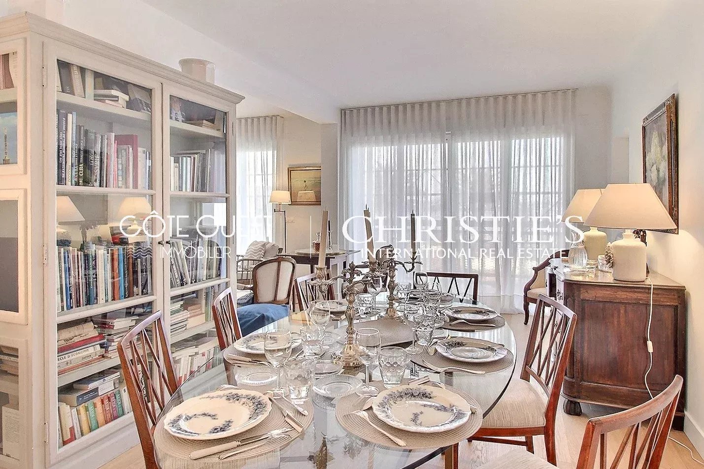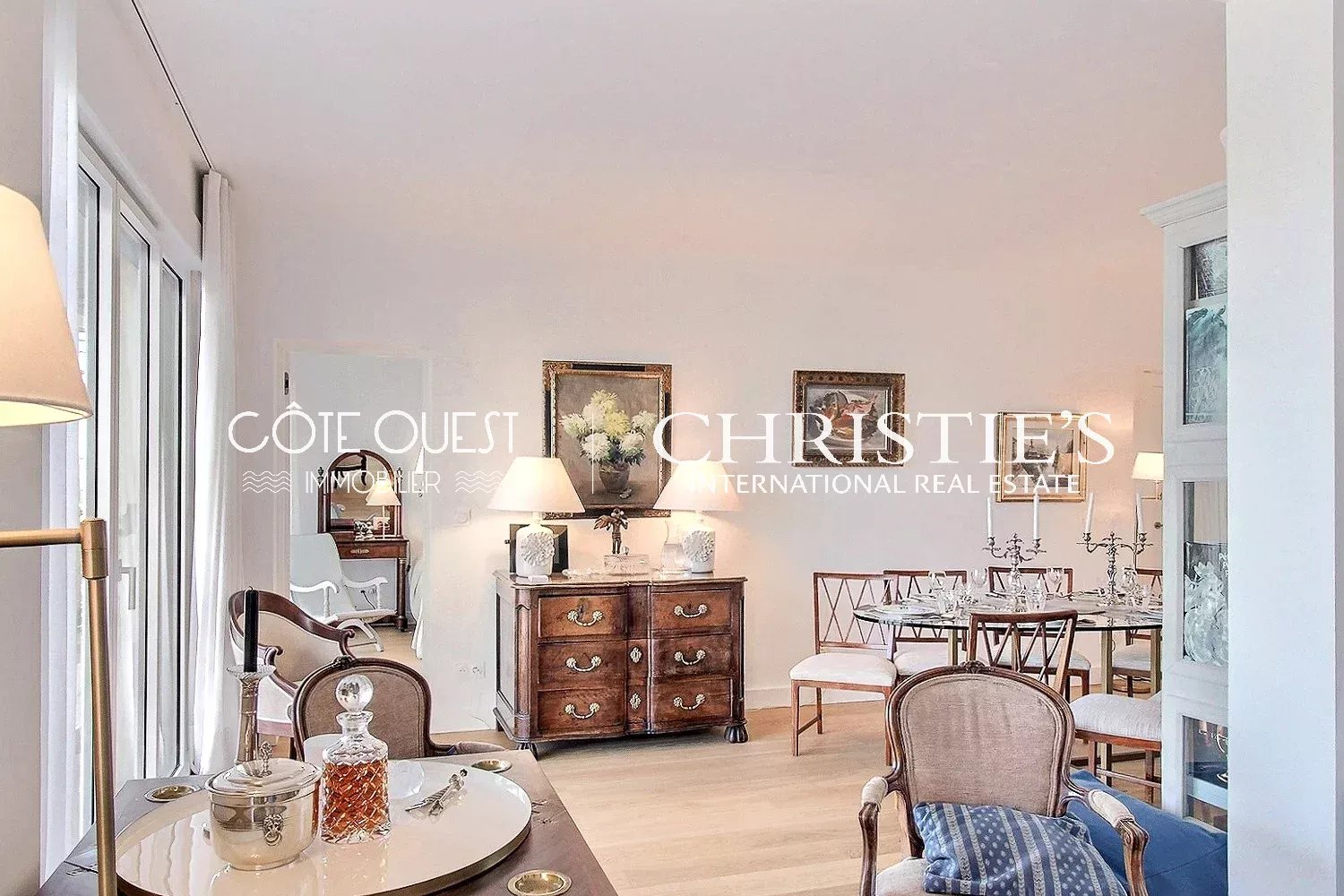 Located within a high-end seafront residence with elevator, parking, and caretaker, it offers generous reception areas: a living room with fireplace and a dining room opening onto a balcony with a generous view of the bay.