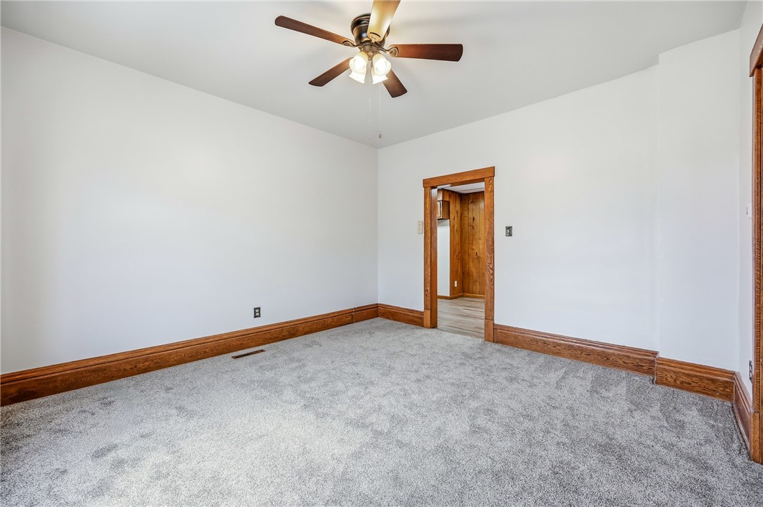 Step up to the freshly painted, newly carpeted front porch of this beautiful two-story, three bedroom, one bath home situated on a desirable corner lot near schools. Inside you'll find a spacious living room, a dining area and a fully remodeled bathroom with a marble countertop and new faucet. The kitchen boasts updated countertops, sink and faucet. Fresh paint and new carpet run throughout the entire home complimented by new lighting, fans and an alarm system providing a secure, move-in ready home full of thoughtful upgrades.