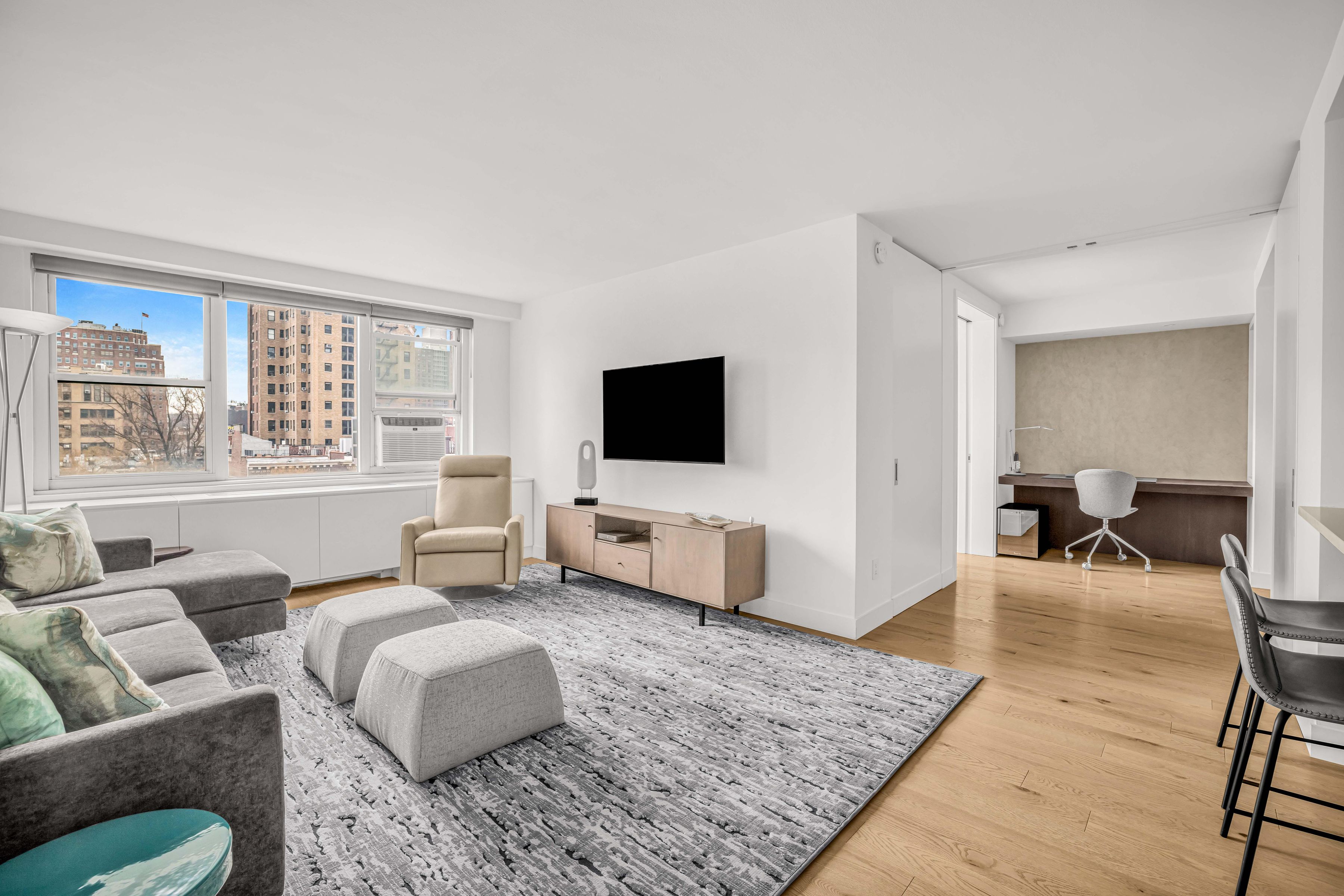 Exquisite South-Facing XXL One-Bedroom with Washer/Dryer & Two Full Baths Elegant and thoughtfully redesigned, this exceptional extra-large one-bedroom residence offers a truly turnkey living experience—just bring your toothbrush! The welcoming entryway opens to a bright, meticulously renovated home, created by combining two studios into a spacious and functional layout. The apartment features a large primary bedroom, a dedicated home office, and a separate den/daybed area, offering flexibility for work, relaxation, or guests. Additional highlights include a generous walk-in closet, two luxurious full bathrooms, and a modern open kitchen with abundant cabinetry, a pantry, and an in-unit washer and dryer. Brand-new hardwood floors and custom blinds complement the home’s elegant finishes. The apartment faces south, overlooking a charming tree-lined street with open views, filling the space with natural light throughout the day. London Towne House, on West 22nd Street-Chelsea's most sought-after blocks-is a full-service co-op featuring a 24-hour doorman, live-in superintendent, on-site parking, bike storage, and a landscaped roof deck with panoramic views spanning from City Hall to Midtown's skyline! The building is moments from the High Line, Whole Foods, Trader Joe's, and Chelsea's dining and nightlife destinations, with easy access to the C and E trains at 23rd Street. Pets are welcome. 2 percent flip tax (1 percent paid by buyer and 1 percent paid by seller). Assessment: Through February 2029 for building system upgrades, including boiler replacement, HVAC chiller upgrades, hallway ventilation improvements, Local Law 11 compliance, and parapet repairs. 8P: Assessment: $169.17 8R: Assessment: $169.17