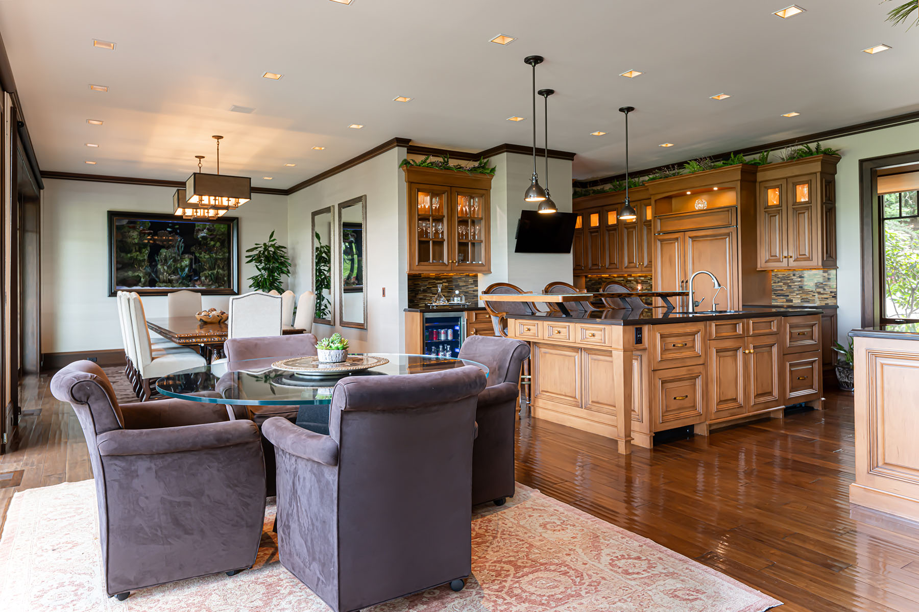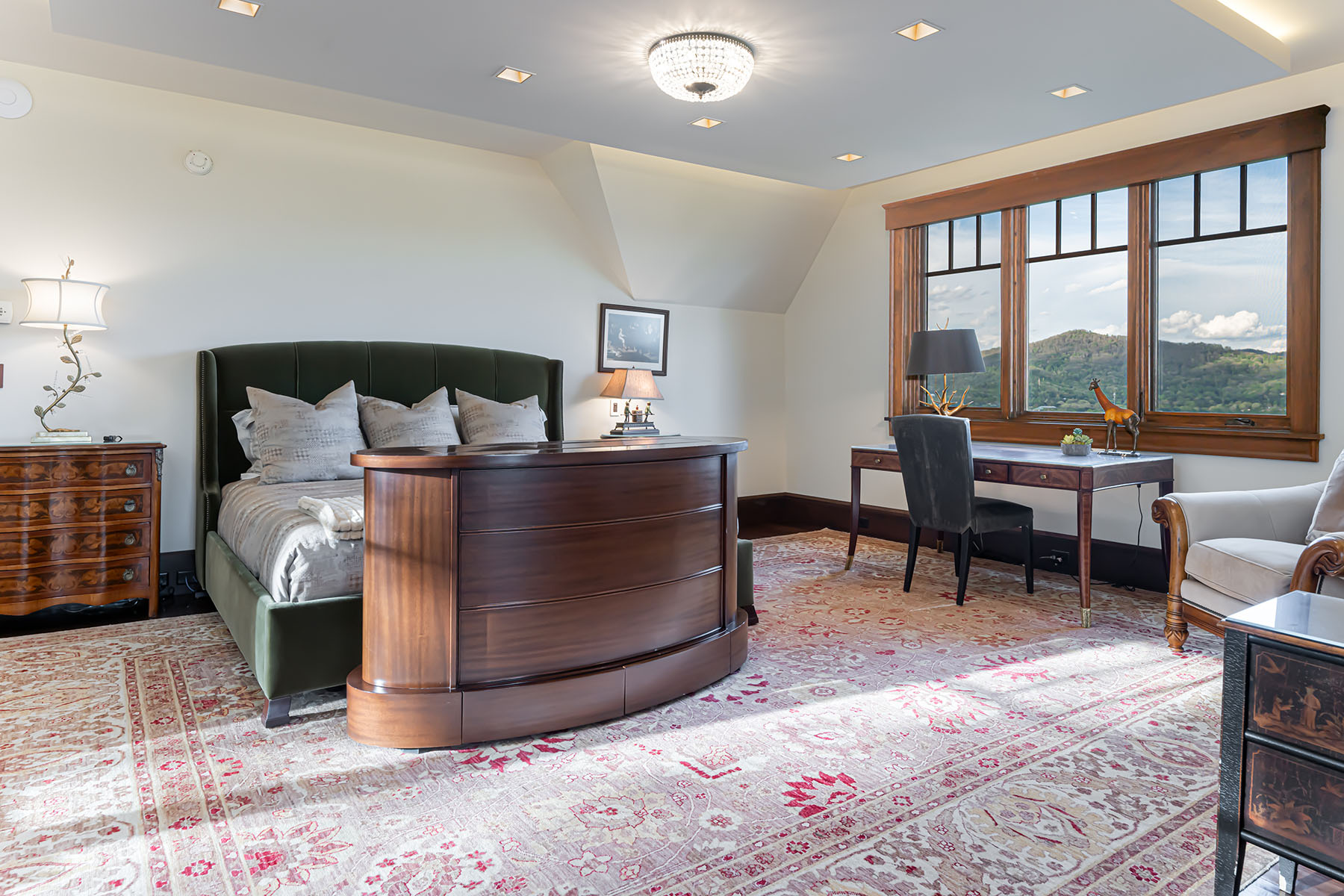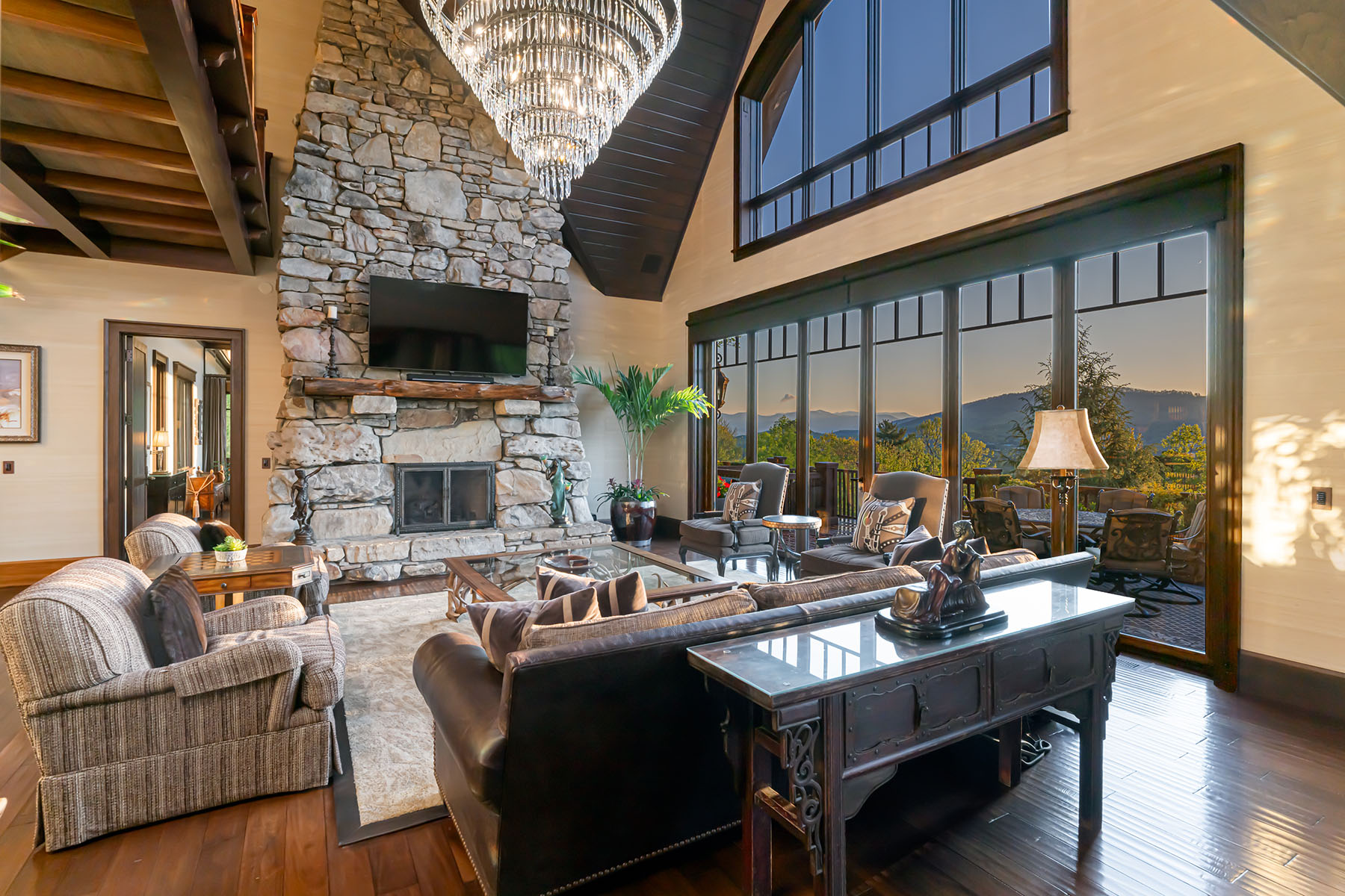 Just minutes from downtown Asheville, 66 North Deerhaven Lane is an extraordinary gated luxury estate in Asheville, N.C. offering over five acres of private gardens, award-winning landscape design and refined mountain living in the heart of the Blue Ridge Mountains. Known as Deerhaven Gardens, this remarkable property combines architectural elegance, world-class outdoor living and exceptional privacy just minutes from Asheville's dining, arts and cultural amenities. The residences were completely renovated and expanded in 2011 with the estate's grounds were masterfully designed by renowned Asheville landscape architect Charles Clay Mooney, whose work at Deerhaven Gardens earned the American Society of Landscape Architects' highest national award. The property is centered around a spectacular 77-foot infinity-edge swimming pool with cascading waterfalls, natural stone terraces, streams and botanical gardens, recognized by Luxury Pools & Outdoor Living Magazine as Best Overall Outdoor Living Design in the United States. The main residence is designed to seamlessly blend indoor and outdoor living. A dramatic great room with vaulted ceilings, exposed beams and tongue-and-groove paneling opens through more than 200 feet of NanaWall accordion glass doors, creating an indoor-outdoor mountain retreat. Imported stone surfaces and natural materials complement the surrounding landscape while providing sophisticated luxury finishes throughout. At center of the home, the chef's kitchen features a 60-inch Wolf range, Sub-Zero refrigeration, dual Miele dishwashers and custom cabinetry, opening to expansive living and dining spaces ideal for entertaining. Modern systems include fully integrated smart-home technology, geothermal HVAC, backup generators and advanced lighting, security and climate controls. The primary suite offers a private sanctuary with fireplace, spa-inspired bath, heated floors, steam shower, jetted soaking tub and custom cabinetry. Upstairs guest suites and an executive office capture sweeping sunrise views across the Blue Ridge Mountains. The terrace level recreation wing includes a media lounge, billiards room, full bar, wellness room, and fitness studio with direct access to the pool terrace and gardens. A separate guest house provides exceptional flexibility with its kitchen, living room, primary suite, bunk room and recreation space, ideal for hosting extended guests, multigenerational living or private staff accommodations. Outdoor amenities are equally impressive and include multiple entertaining terraces, a screened porch with hibachi grill, poolside summer kitchen and bar, and a private tennis court with observation deck and outdoor wet bar. Meandering paths wind through curated botanical gardens, tranquil ponds and wooded trails, creating one of the most remarkable private estates in the Southeastern United States. Despite its serene setting, the property is exceptionally convenient, approximately 15 minutes to downtown Asheville, eight minutes to Biltmore Forest Country Club, five minutes to the Blue Ridge Parkway, and under 15 minutes to Asheville Regional Airport and private aviation at Signature FBO. Offered turnkey with select exclusions, Deerhaven Gardens represents a rare opportunity to own one of Asheville's celebrated luxury estates, combining privacy, architectural design, award-winning gardens and world-class outdoor living in the Blue Ridge Mountains.