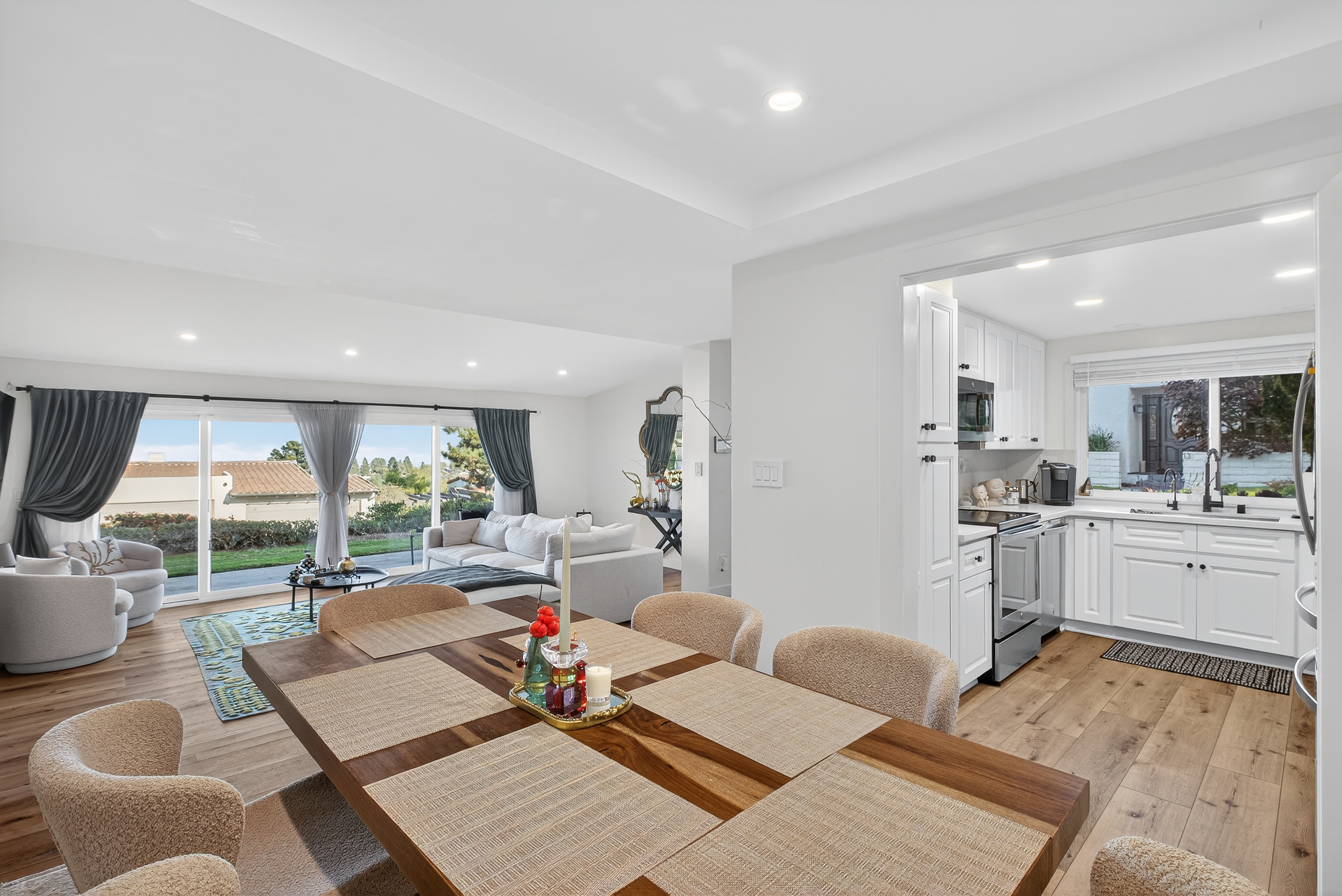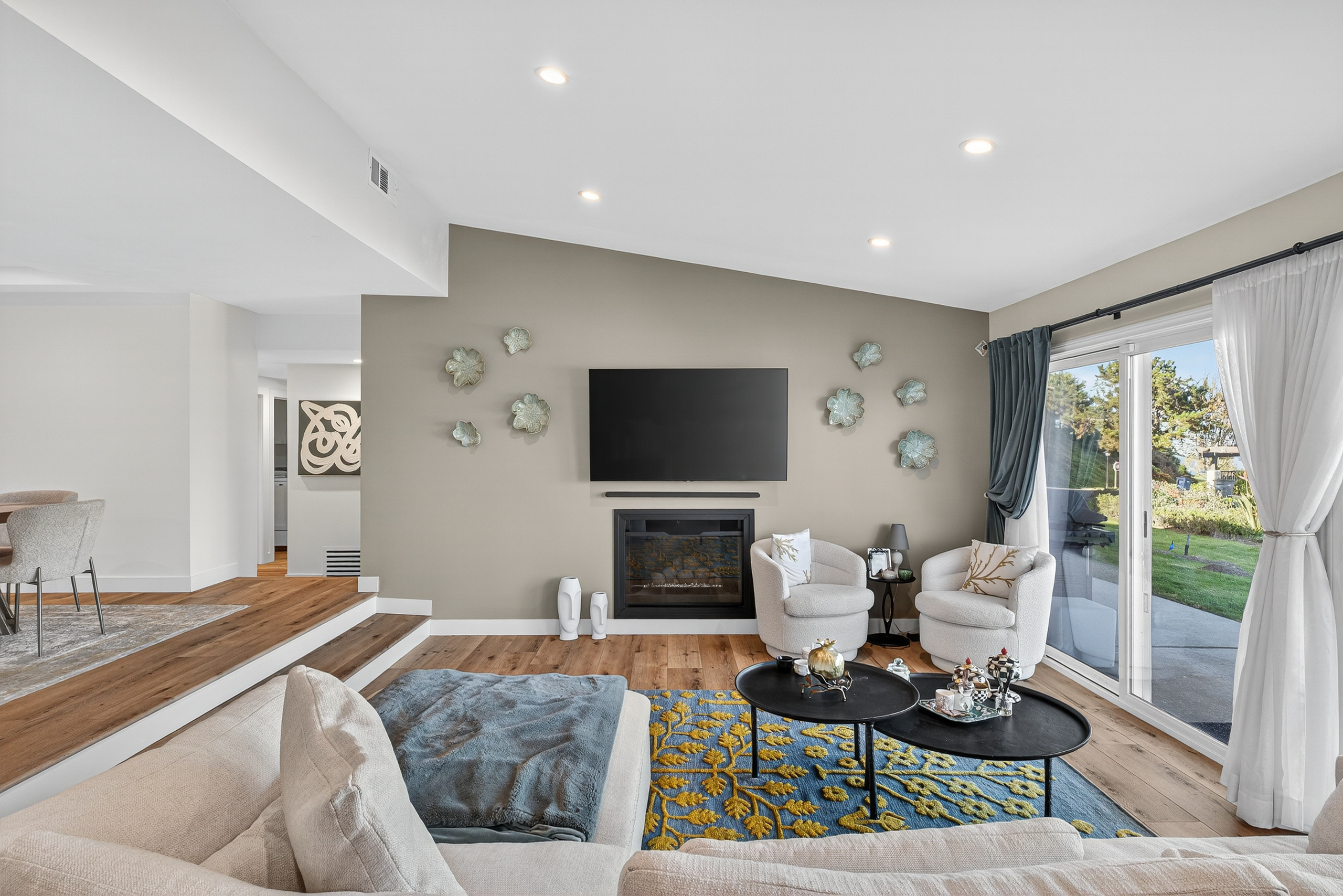 Rare single-level end unit with stunning panoramic city light views! Spectacularly remodeled. Enjoy breathtaking vistas that stretch from Downtown Los Angeles to the San Pedro Pier. This 3-bedroom, 2-bath home offers an expansive backyard and full-width patio — perfect for entertaining or quiet evenings under the lights. Beautifully updated with stainless steel appliances, quartz countertops, recessed lighting, and luxury vinyl and engineered wood flooring throughout. The spacious living room with fireplace opens to the patio, seamlessly blending indoor and outdoor living. The primary suite features large closets, a walk-in, an updated bath, and direct patio access. A two-car garage provides extra storage and a 220V outlet ready for an EV charger. Located in The Terraces, a prestigious 24-hour guard-gated community with pools, spas, tennis courts, clubhouse, and playground. A rare floor plan and exceptional opportunity — this one won’t last!
