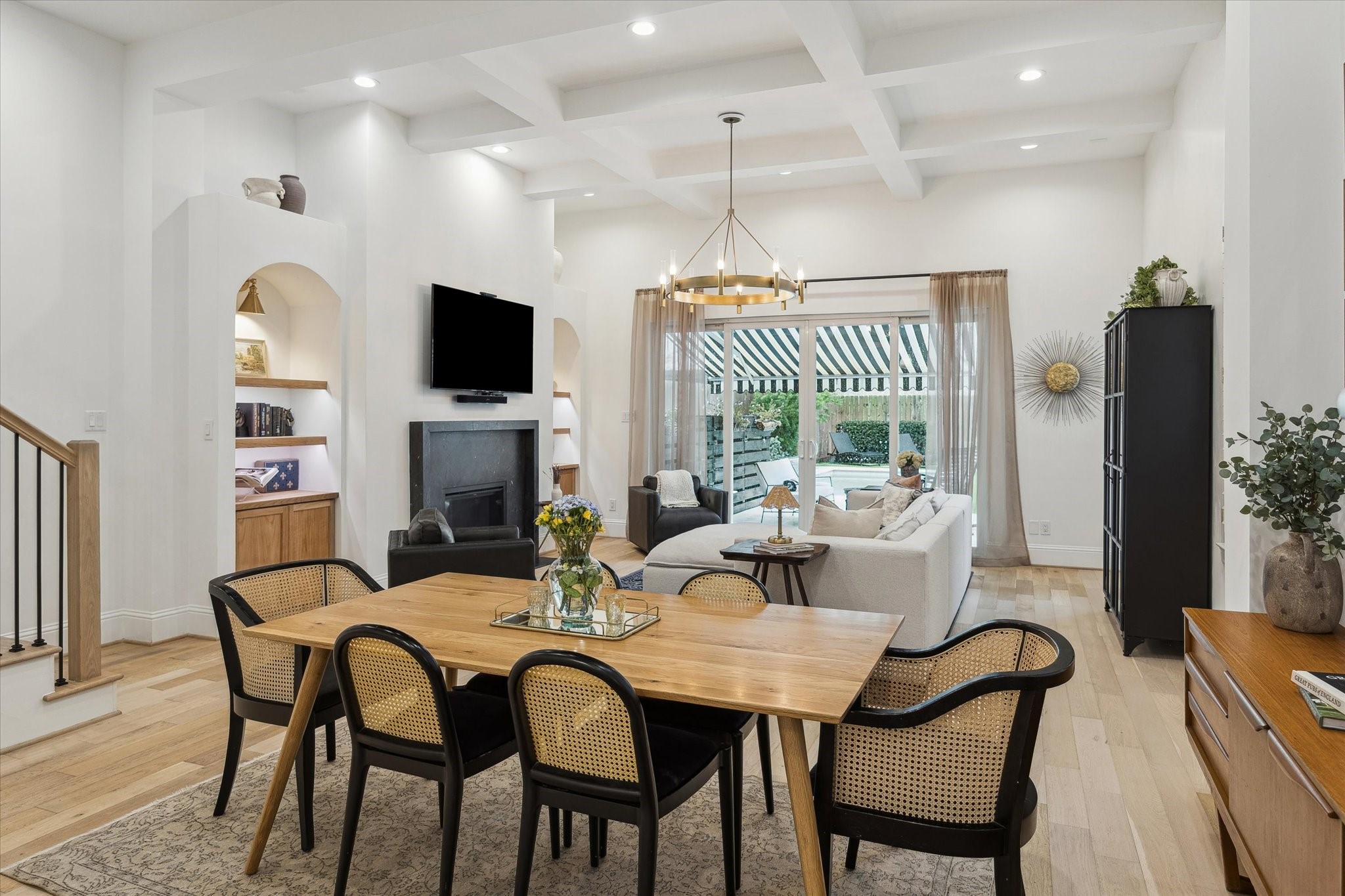 Coming Soon - Stunning 4 bed, 3.5 bath home with game room and outdoor entertaining paradise in an unbeatable Heights location. First floor- open living features 12 ft beamed ceilings, wide plank hardwoods & oversized french doors leading to custom landscaped backyard with pool, turfed yard and patio with automatic retractable awning. Light and bright chef's kitchen with quartz countertops, stainless appliances, walk-in pantry and ample storage. Adorable mud room space. Second floor-expansive primary suite features coffered ceilings, two closets and spa-like bath with soaking tub + shower. Two well-sized secondary beds share bath with tub/shower. Third floor with 20 x 14 game room , wet bar and 4th bedroom with ensuite bath. Two- car garage. Steps to the Hike and Bike, Hotel Daphne and numerous parks/restaurants. Modern and stylish with timeless appeal and a rare backyard oasis!
