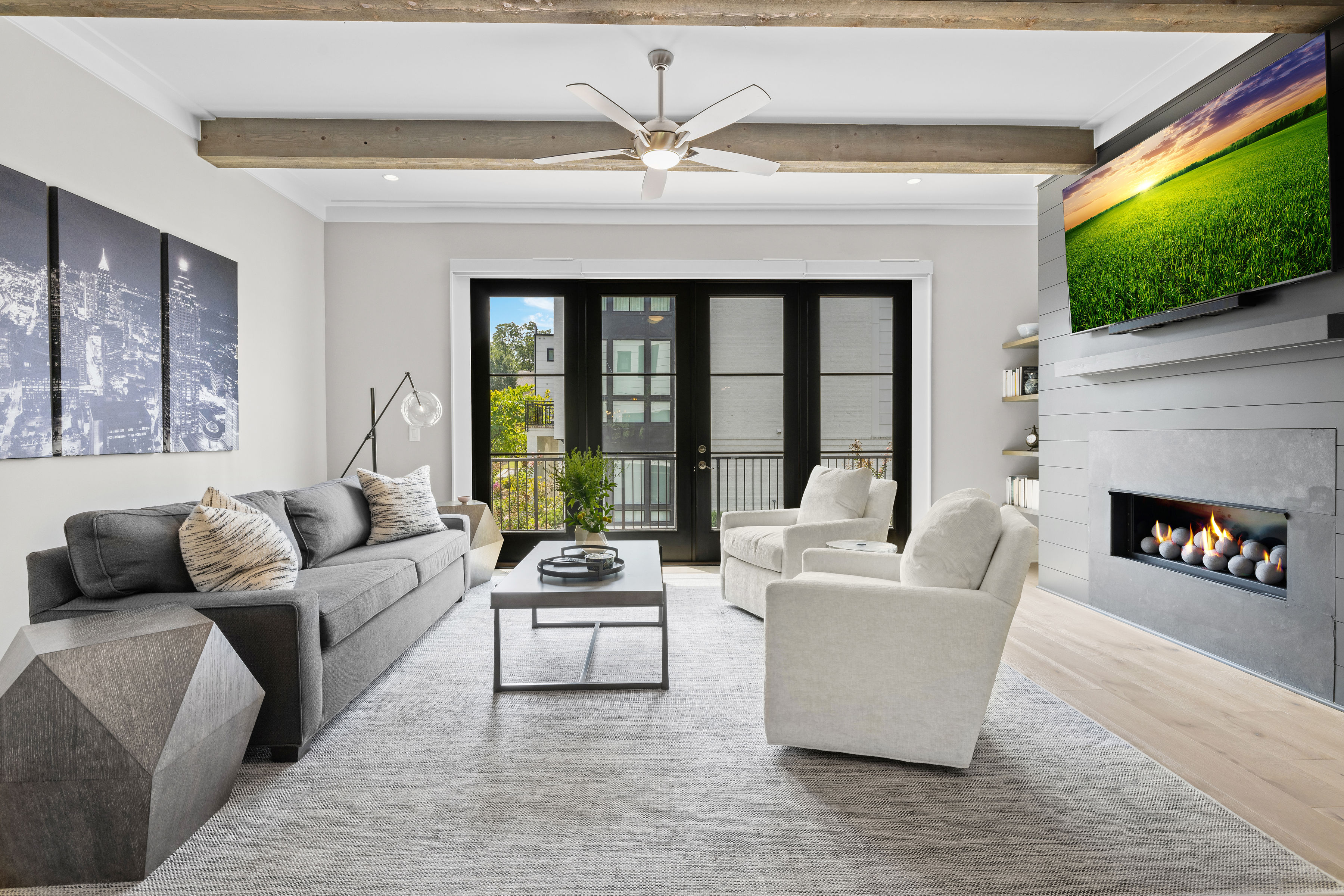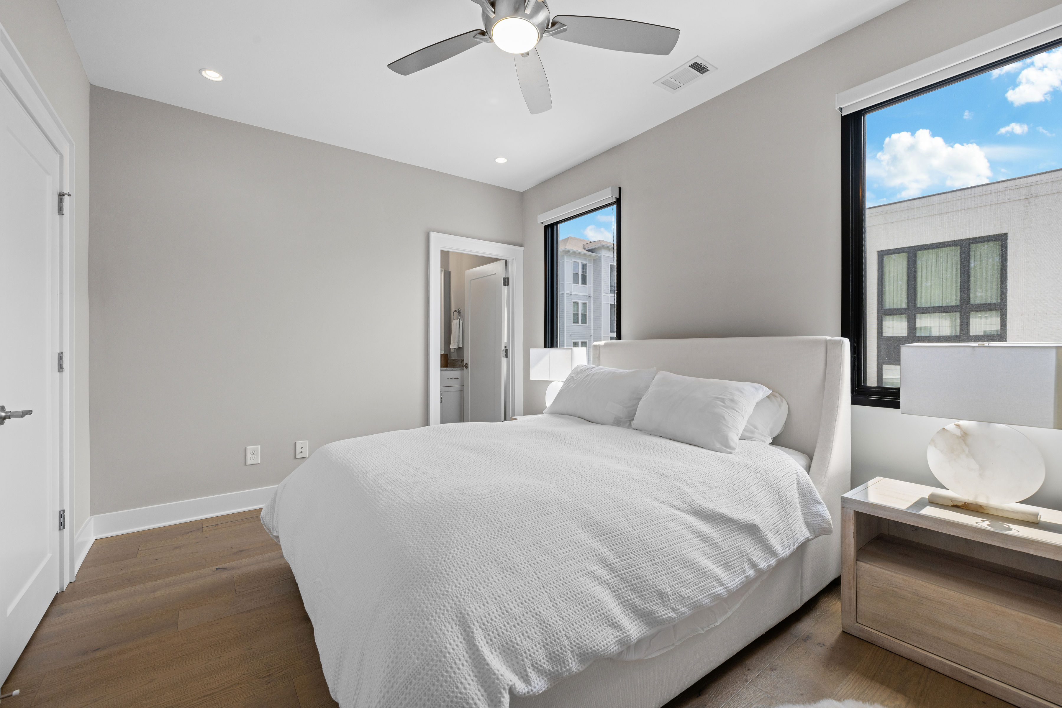 Luxurious three-level townhome available for rent in highly sought after Brookhaven! Spacious, light-filled property offers an open floorplan, ten foot ceilings, large Jeld-Wen windows, designer finishes, ample storage, three outdoor entertainment/relaxing areas and two-car garage. Upon entering you'll be impressed by a spacious main level bedroom, private bathroom and convenient mudroom. Up one level in the main living area you'll find a gorgeous flow highlighted by a stunning kitchen with white soft-close cabinets, Quartz countertops, farmhouse sink, a huge island, stainless steel Jenn-Air appliances (six-burner gas range), upgraded tile backsplash and custom light fixtures. The kitchen is open to a large dining area on one side that features a brick accent wall and a sun-drenched living area on the opposite side outfitted with shiplap wall accents, fireplace, wood ceiling beams and access to an oversized deck with decorative flooring. On the top level you'll find an oversized Owner's suite with spa-like bath and large custom walk-in closet. This level also offers a secondary bedroom with en-suite bathroom and walk-in closet. LG washer/dryer included. Additional features include weathered oak wide-plank hardwood floors throughout, decorative barn door, custom fixtures, shiplap walls, crown molding, solid core interior doors and motorized window shades. No details have been spared! This gem is situated in an exclusive, boutique community offering amazing walkability, easy access to public transportation, shops, restaurants, entertainment and more.