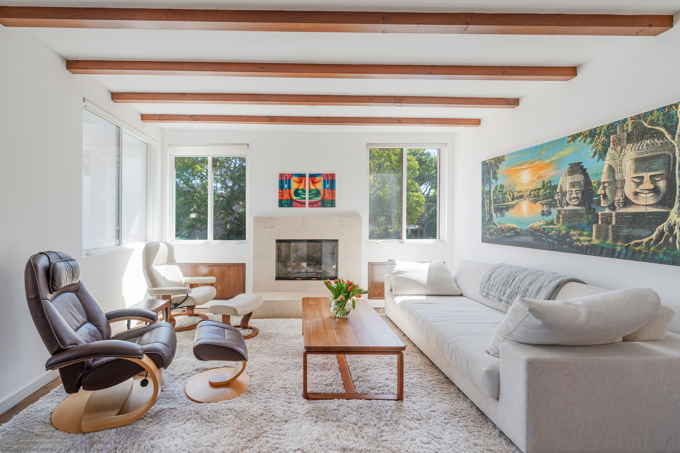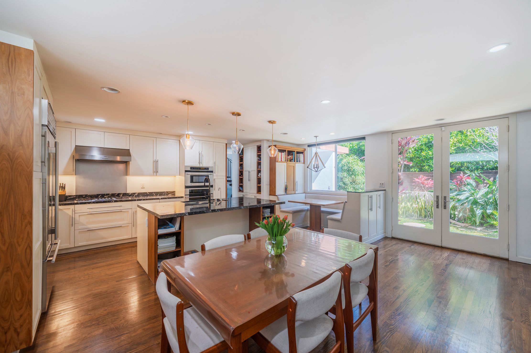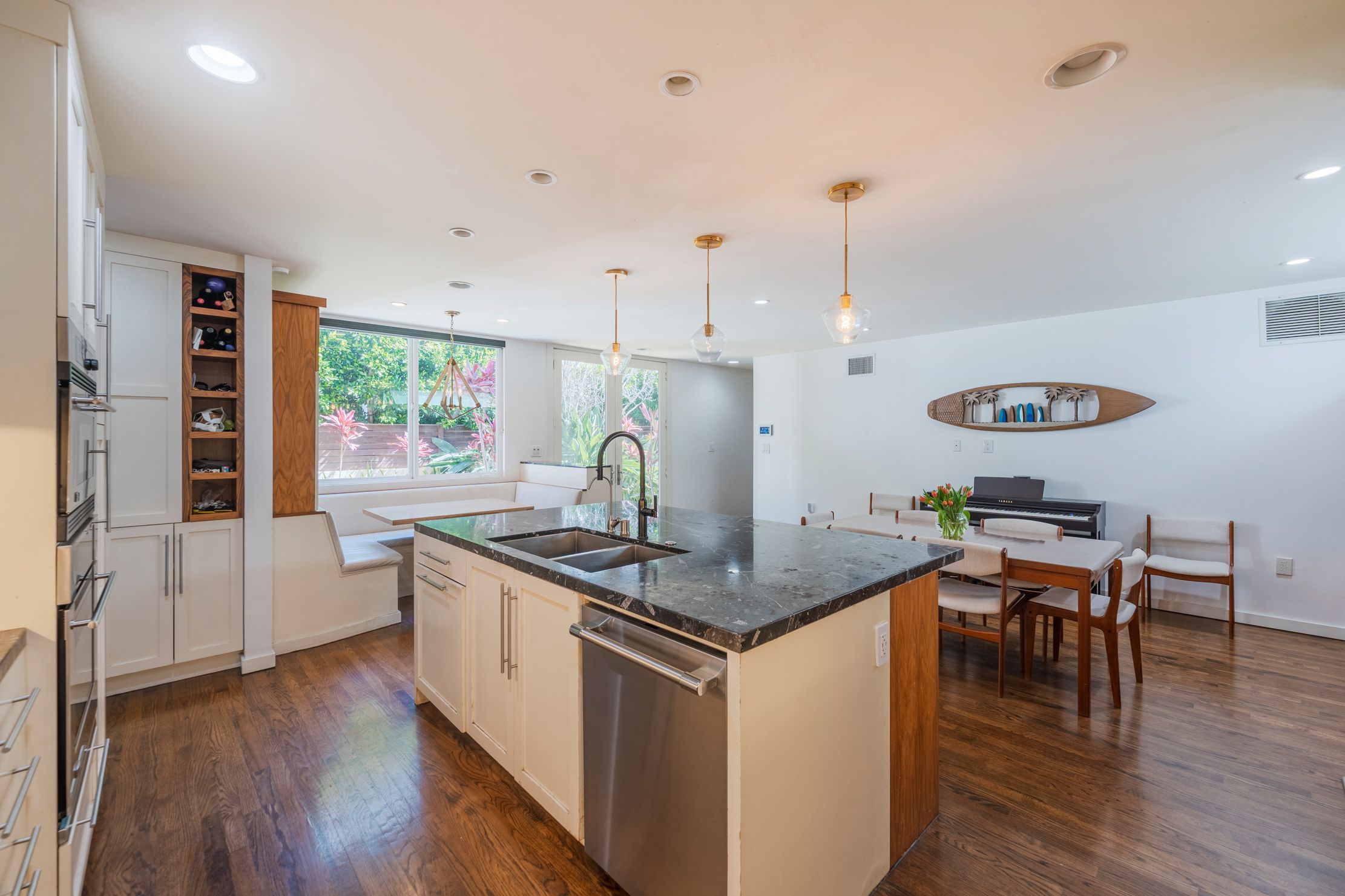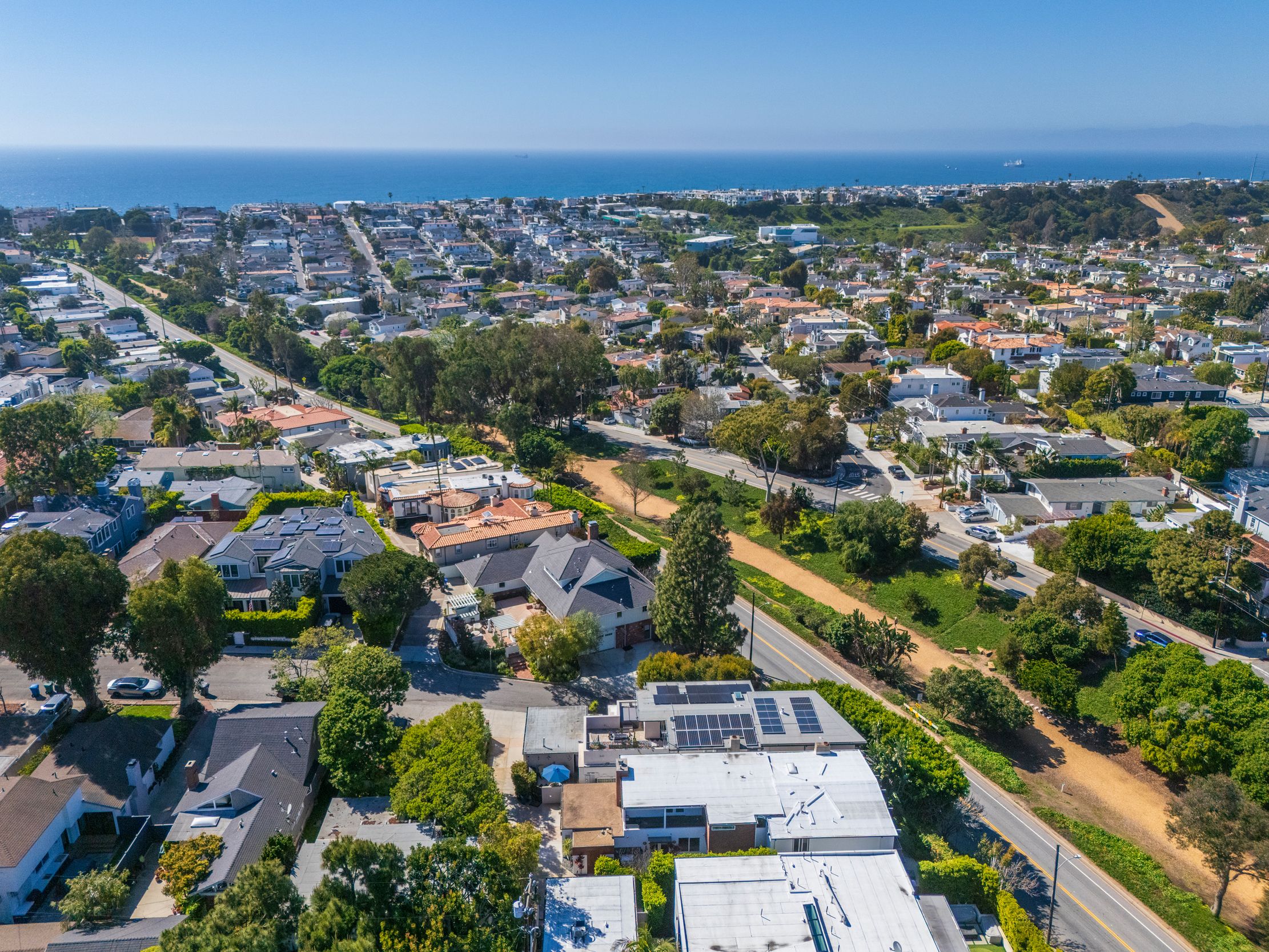 Experience the best of coastal living in this beautifully appointed rental in Manhattan Beach’s highly sought after Tree Section. Ideally located on a private cul-de-sac overlooking the serene greenbelt and just blocks from downtown and the beach, this stunning coastal contemporary home offers the relaxed yet refined lifestyle the South Bay is known for. The home features five spacious bedrooms (one of which is conveniently set up as an office) and four bathrooms, highlighted by sleek architectural lines, dramatic wood-truss high ceilings, and a striking floating staircase with mid-century influence. The home has a fantastic open floorplan that creates seamless indoor-outdoor living, with expansive living and dining areas framed by floor-to-ceiling windows that fill the home with natural light and ocean breezes. The chef’s kitchen is designed for gathering and entertaining, featuring high-end appliances including a Sub-Zero refrigerator and Thermador range and dishwasher. A charming built-in breakfast nook offers a sunny spot for morning coffee. Upstairs, the luxurious primary suite includes a spacious walk-in closet, ensuite bathroom with soaking tub, tranquil sitting area with fireplace, and a private balcony. The additional bedrooms feature vaulted ceilings and enjoy lovely tree-top views. The outdoor spaces are equally inviting with landscaped areas perfect for relaxing or entertaining, along with a built-in BBQ grill and ping pong table. This fully furnished seasonal rental is available April through July and is completely turnkey with all utilities included. Simply arrive and start enjoying the best of Manhattan Beach living. It’s also a perfect opportunity to enjoy the South Bay during the FIFA World Cup, with convenient access to SoFi Stadium for matches and global events. Located within blocks of highly regarded schools including American Martyrs and Pacific Elementary, and close to parks, restaurants, boutiques, and the beach, this home provides the opportunity to experience the very best of Manhattan Beach’s coastal lifestyle. Just bring yourselves and settle in for an unforgettable South Bay summer.