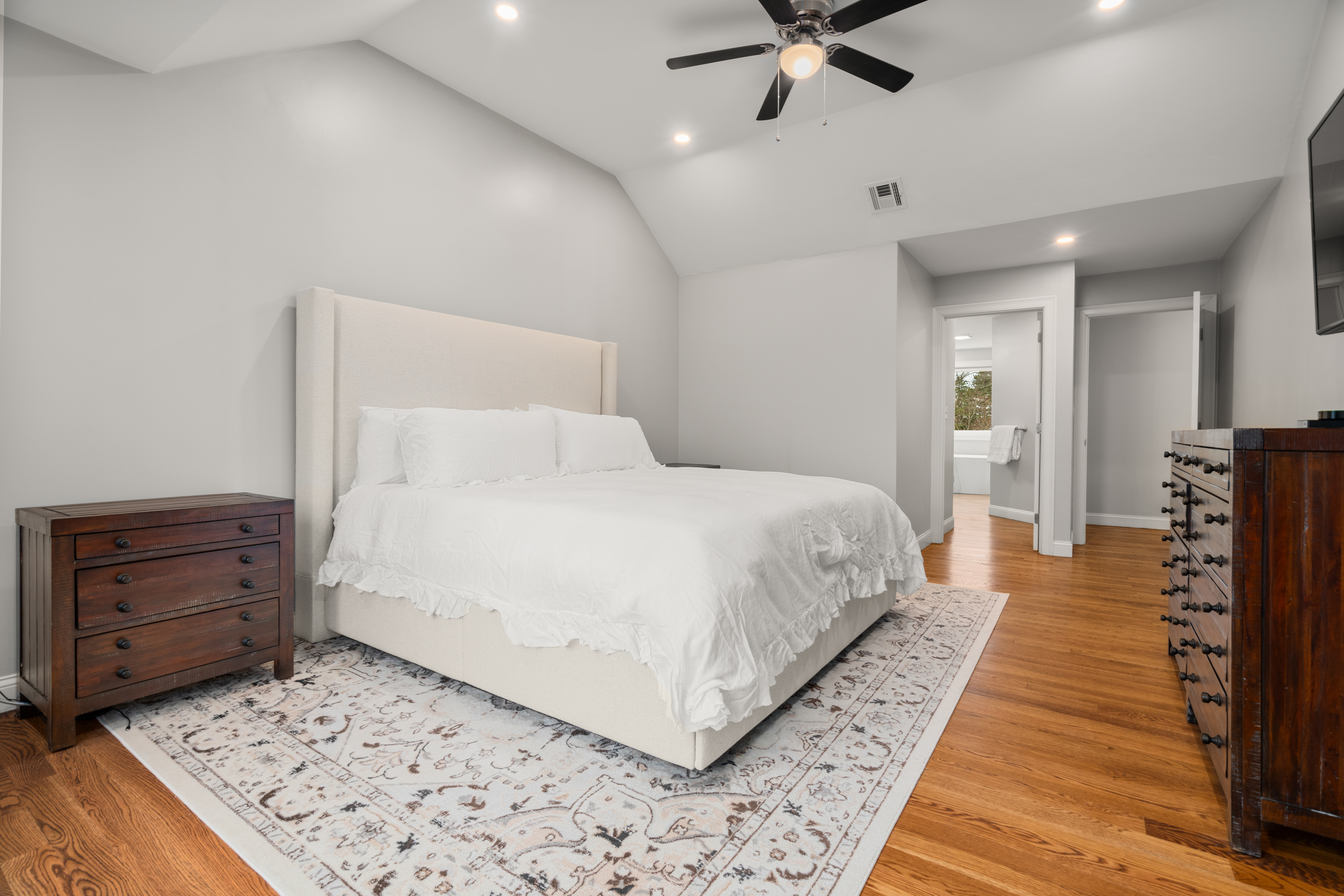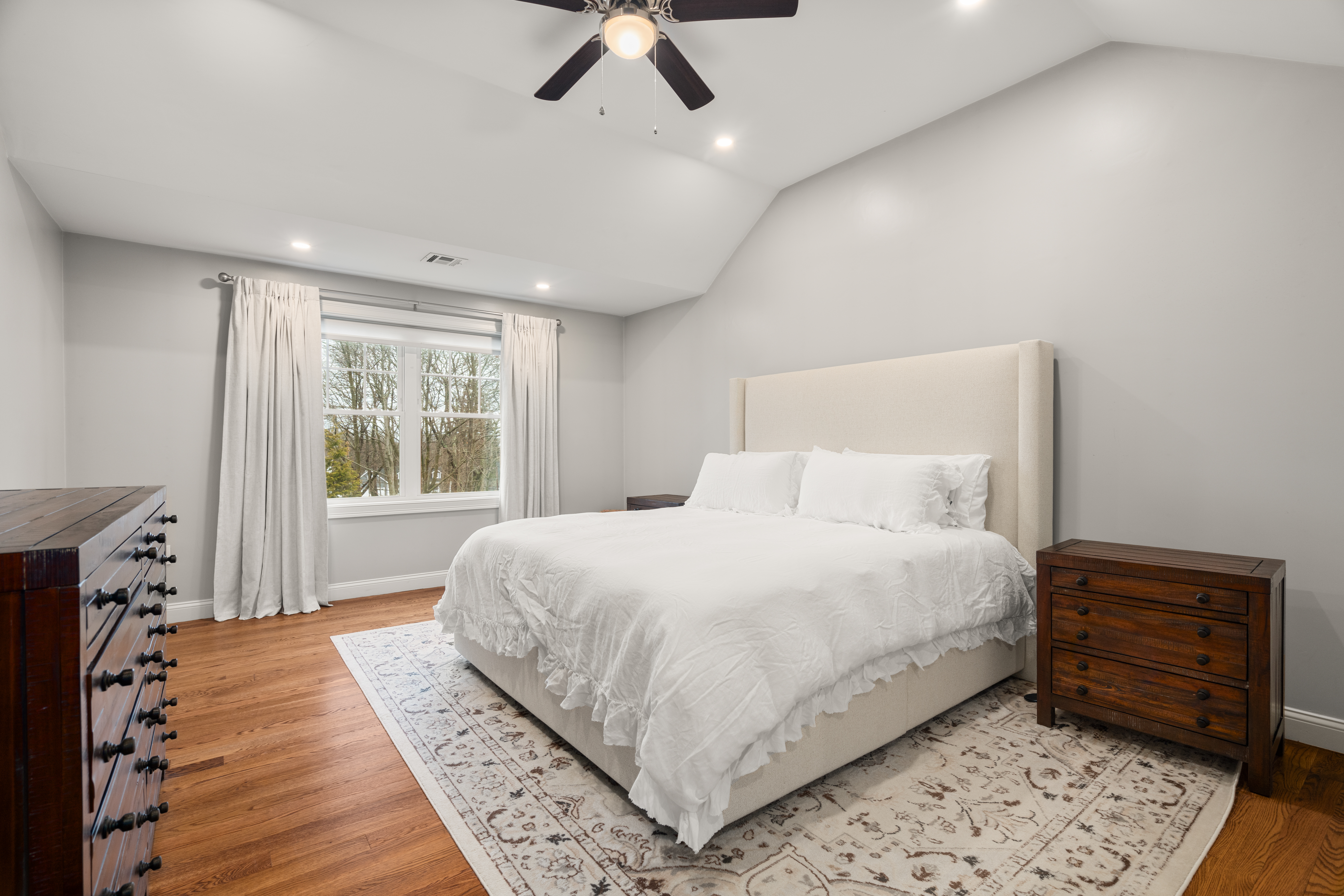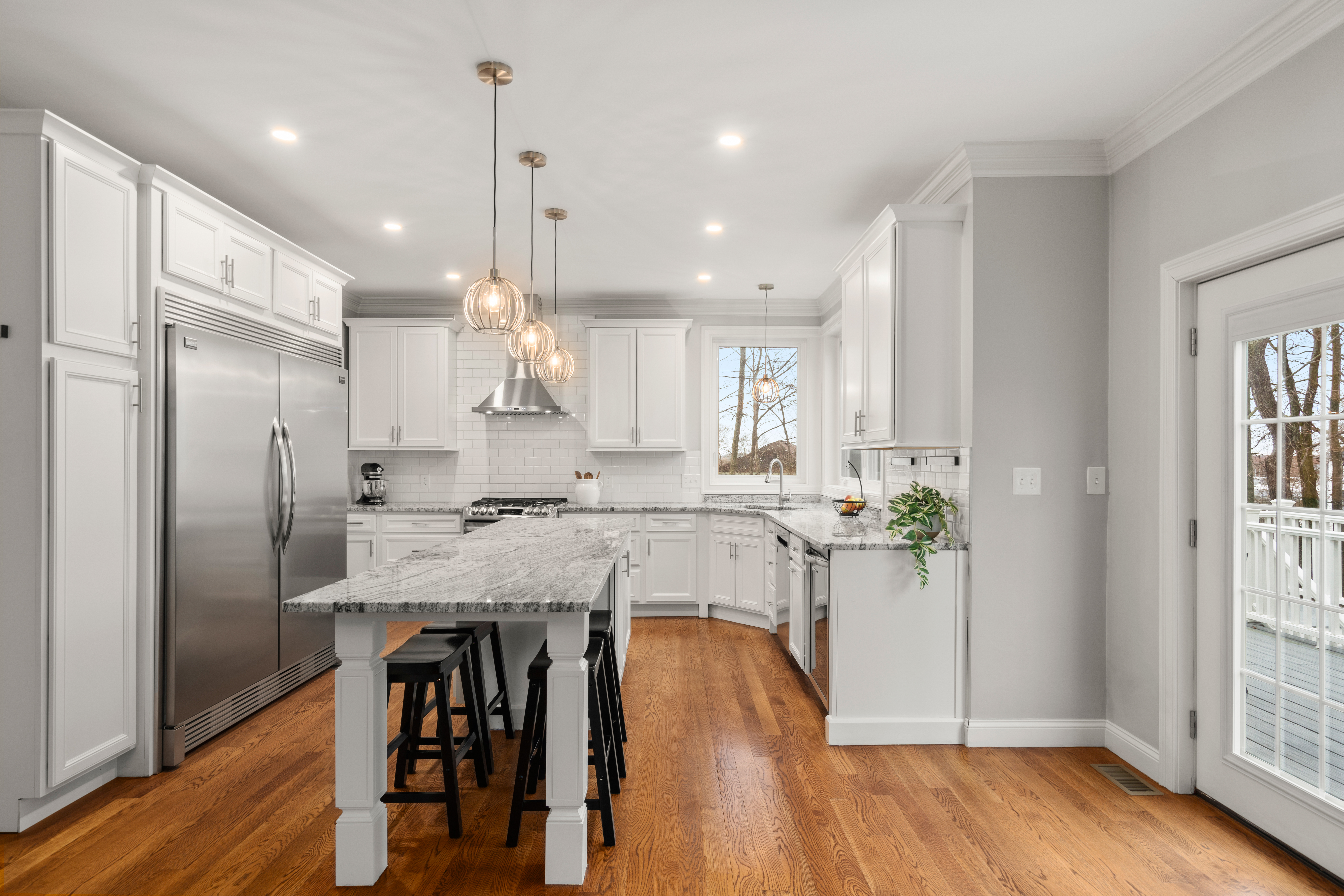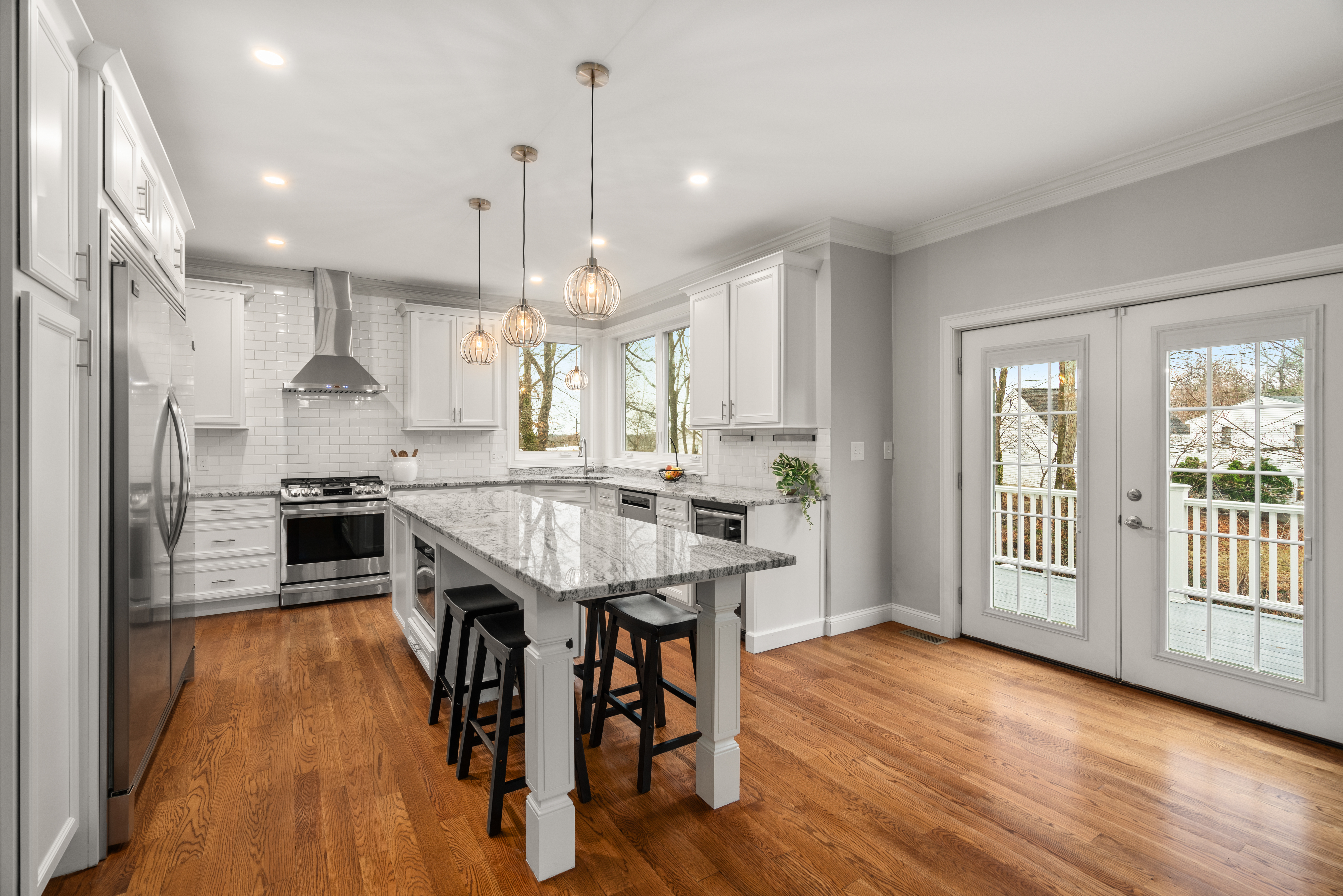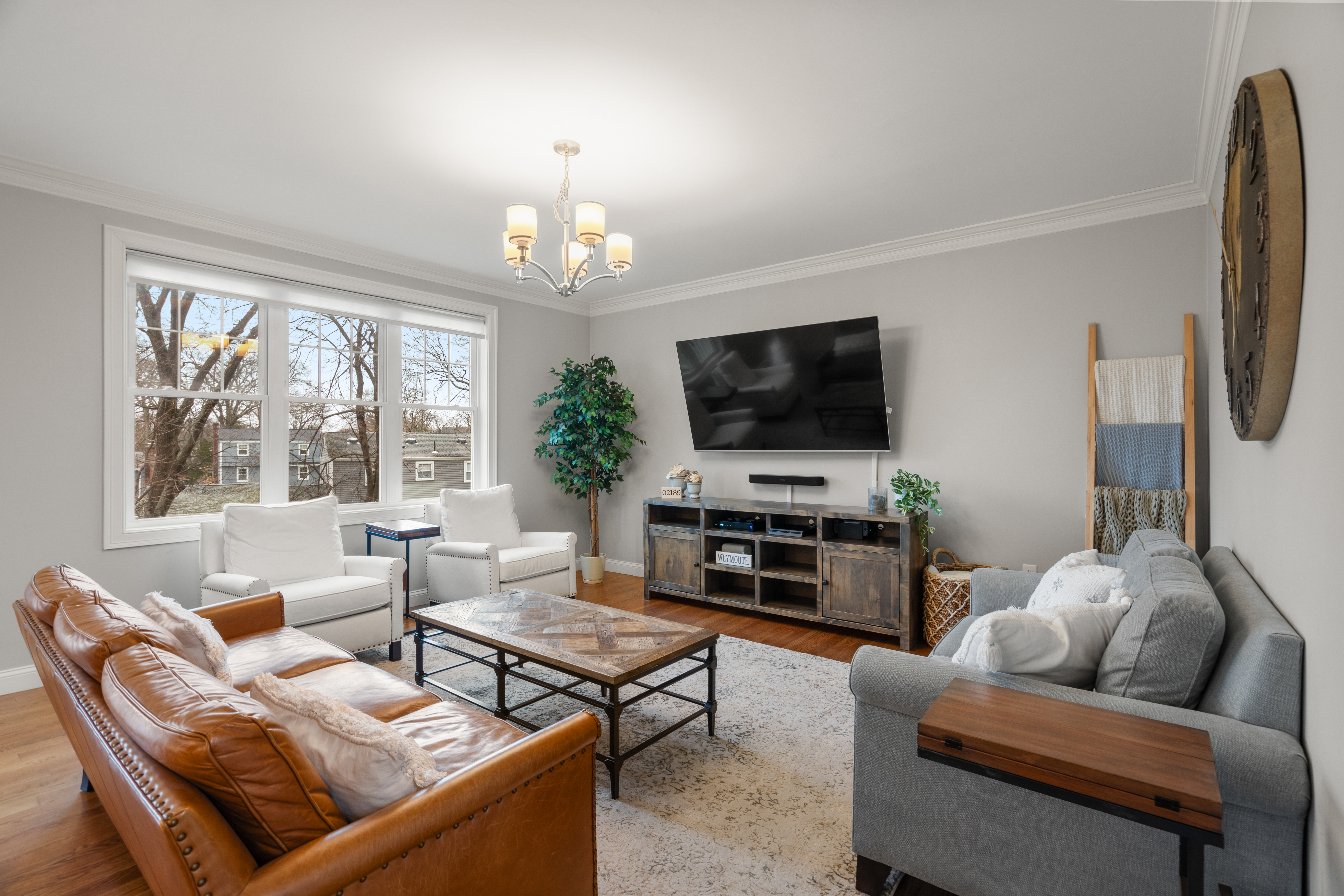 Set far back from busy Commercial Street on a private, nearly one acre lot, this stunning 2018 construction offers the rare combination of seclusion and convenience. Just minutes from Legion field and Jackson square, and a short drive to East Weymouth commuter rail, the location is stellar. The home is anchored by a grand staircase leading to four generous bedrooms plus a versatile bonus room currently used as a gym. The primary suite is a true sanctuary, with a walk-in closet and sun-drenched bathroom with soaking tub, walk-in shower, and double vanity. On the main level sits an expansive open-concept kitchen with large island flowing seamlessly into a light-filled living room. A formal dining room, separate den, dedicated office, powder room, and laundry room complete the first floor. The home features central air as well as hardwood floors and recessed lighting throughout, a large back deck overlooking the yard, garage, and unfinished walk out basement for expansion potential.