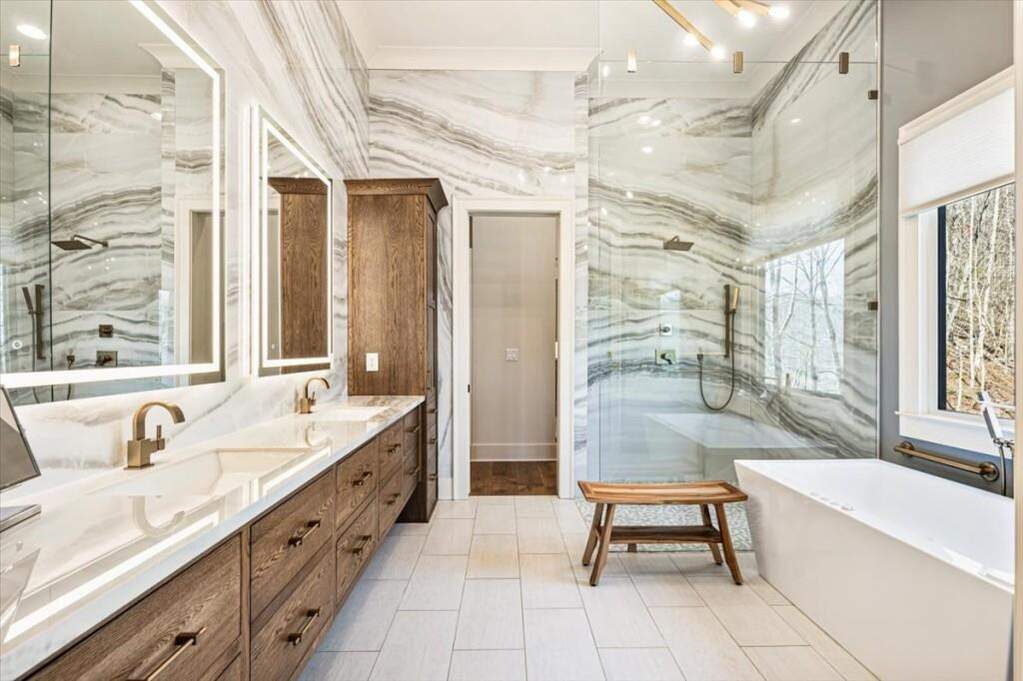 Experience refined mountain living in this custom-built craftsman estate nestled in the foothills of the Blue Ridge Mountains. Overlooking the tranquil Chestatee River and the renowned Jack Nicklaus Signature Golf Course within the gates of Achasta, one of North Georgia's most exclusive communities in Dahlonega, this extraordinary home is the epitome of timeless elegance designed for modern living. From the moment you arrive, the home's stunning curb appeal sets the tone with beautiful stonework, copper gas lanterns, designer garage doors, meticulously manicured landscaping and an inviting covered porch. As you step inside the double front doors, the expansive ceilings and wall of sliding glass doors with picturesque views bathe the space in natural light. The open concept design allows for effortless flow between the stunning chef's kitchen and fireside family room with beautiful beamed, vaulted ceilings. As the heart of the home, the kitchen does not disappoint featuring a statement range hood adorned with imported Italian porcelain carried over from the fireplace and stunning quartzite bedecking the oversized eat-in island, countertops and statement backsplash that reaches to the ceilings. The scullery and dedicated bar area are perfect for effortless entertaining. Immediately off the living space is an exceptional covered porch complete with a stone fireplace, outdoor kitchen, motorized screens, and elevated heaters ideal for gathering and enjoying the beauty of the mountains from sun-up to sun-down throughout the year. The main-level primary suite is a true retreat, offering direct patio access and a spa-inspired bathroom with a full wall showcasing the same imported Italian porcelain from the main living space, floating double vanities, backlit mirrors, a soaking tub, and a spacious walk-in closet with direct access to the main-level laundry room for everyday convenience. Two additional bedrooms share a full bathroom, ideal for convenient one-level living for visitors while the vaulted room would serve as an ideal study or office as an inspiring work-from-home setting. An elevator provides seamless access between levels. Designed for gathering and entertaining, the terrace level offers a second kitchen and full bar, theatre/media room, and generous living space ideal for hosting. A second laundry room includes a built-in dog shower, and two large bedrooms with ensuite bathrooms provide comfort and privacy for guests. Step outside to a relaxing patio with a hanging daybed, with a path leading to a fire pit and outdoor dining area nestled in nature. Above the garage, a beautifully finished private guest suite with kitchenette and ensuite bathroom creates the perfect retreat for extended stays. There is truly something for everyone in this special mountain community. Behind the private gates of Achasta lies a spectacular setting with resort-style amenities including the Jack Nicklaus Signature Golf Course, an elegant clubhouse and restaurant with a private chef, pro shop, swimming, tennis, pickleball, and eight scenic hiking trails. Residents also enjoy kayaking, fishing, and tubing along the beautiful Chestatee River, along with a vibrant calendar of social events within the community. Just a short, 10-minute drive from the gates of Achasta lies the quaint, historic town of Dahlonega, boasting charming festivals and events throughout the year, boutique shopping, acclaimed wineries, and exceptional dining. With the nearby Northeast Georgia Health System medical center, a convenient Publix minutes away, and easy access to GA-400, Achasta delivers an extraordinary blend of luxury escape and everyday accessibility. A true North Georgia treasure that is hard to believe it's only an hour from Atlanta - welcome to a life of leisure, beauty, and elevated mountain living at 448 Golden Bear Pass.