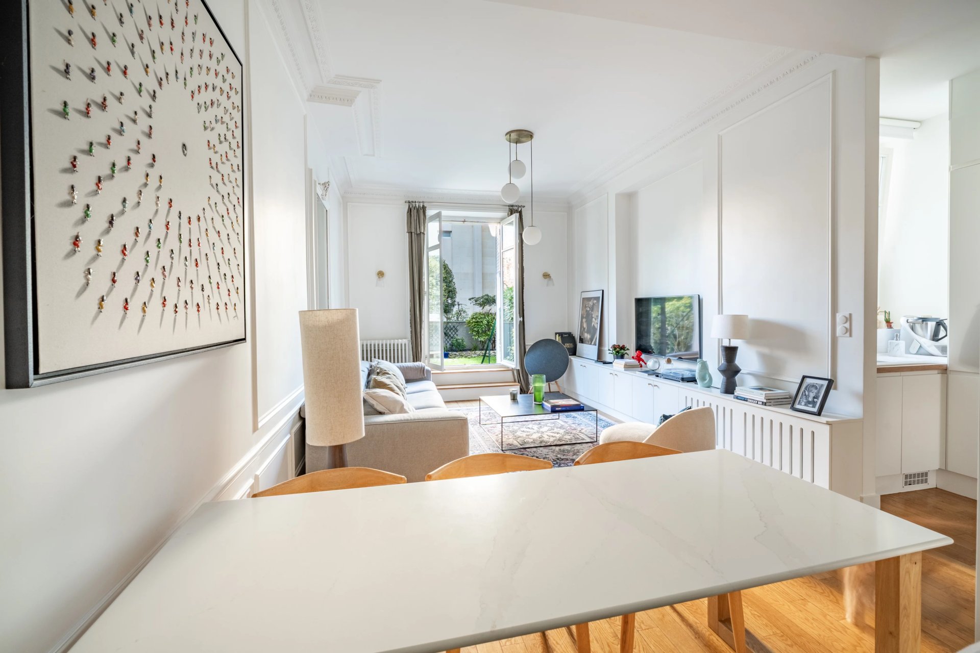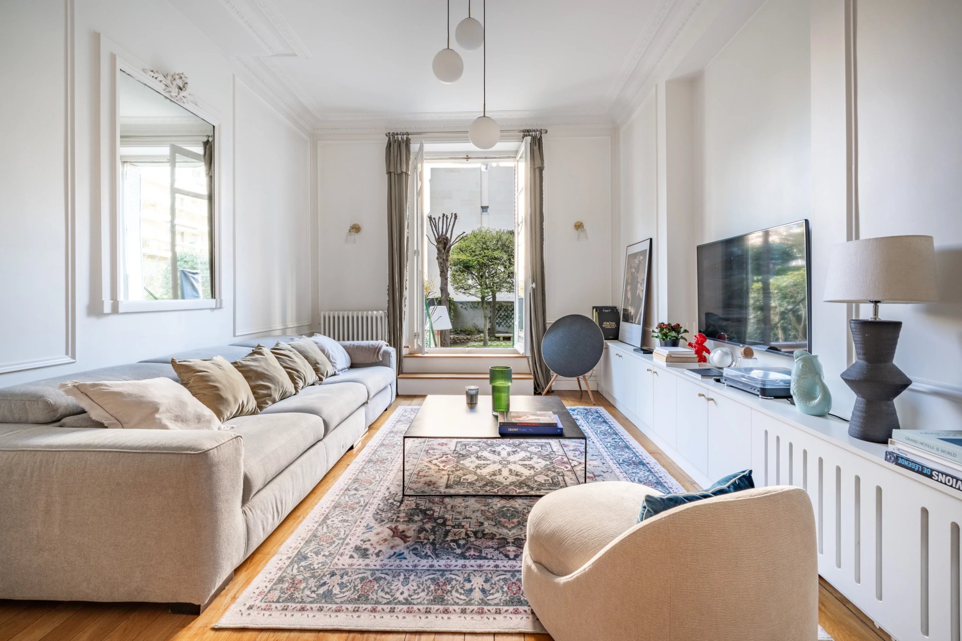Situé au cœur de Neuilly, cet appartement entièrement rénové ouvre sur un jardin privatif de plus de 150 m² au calme absolu.