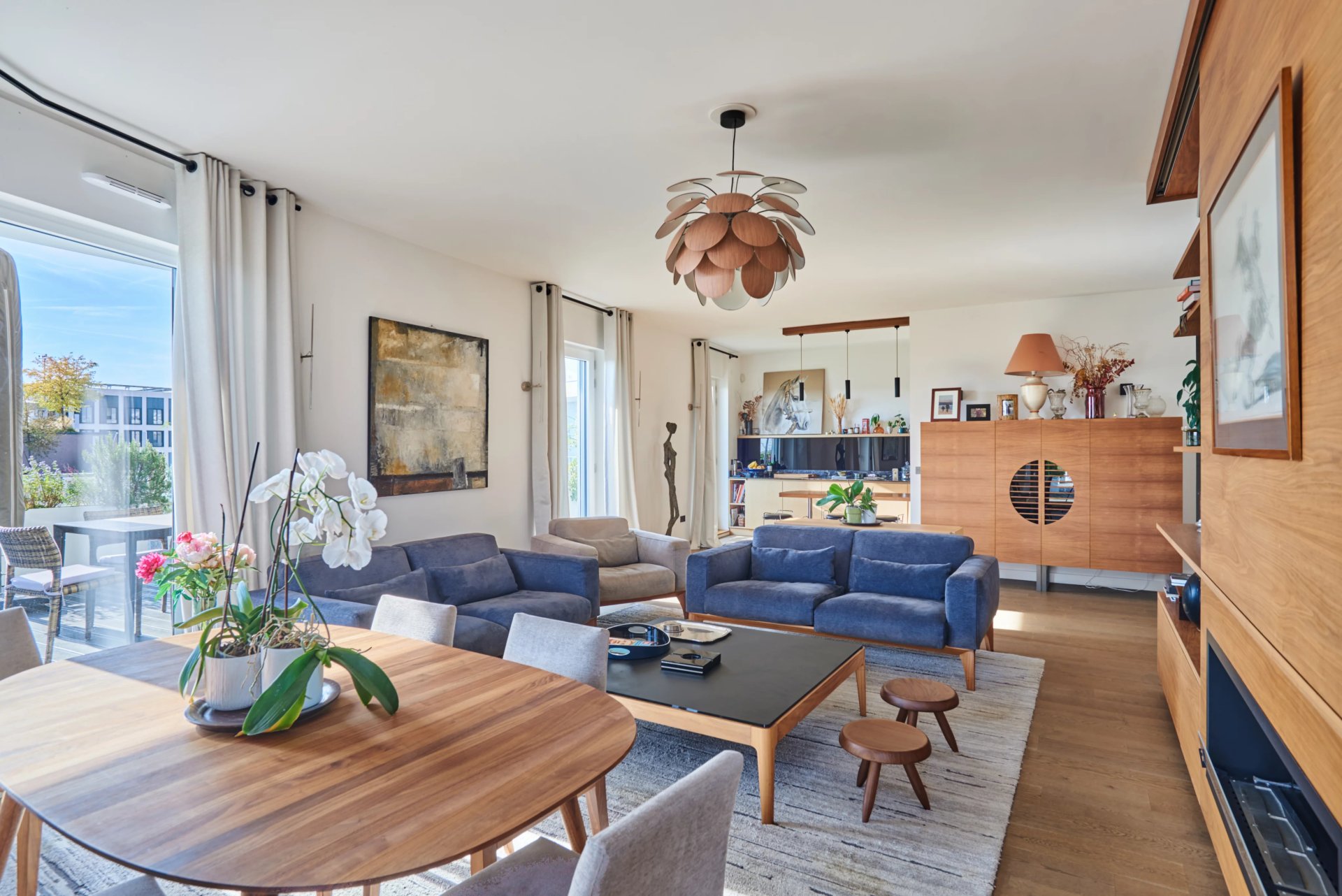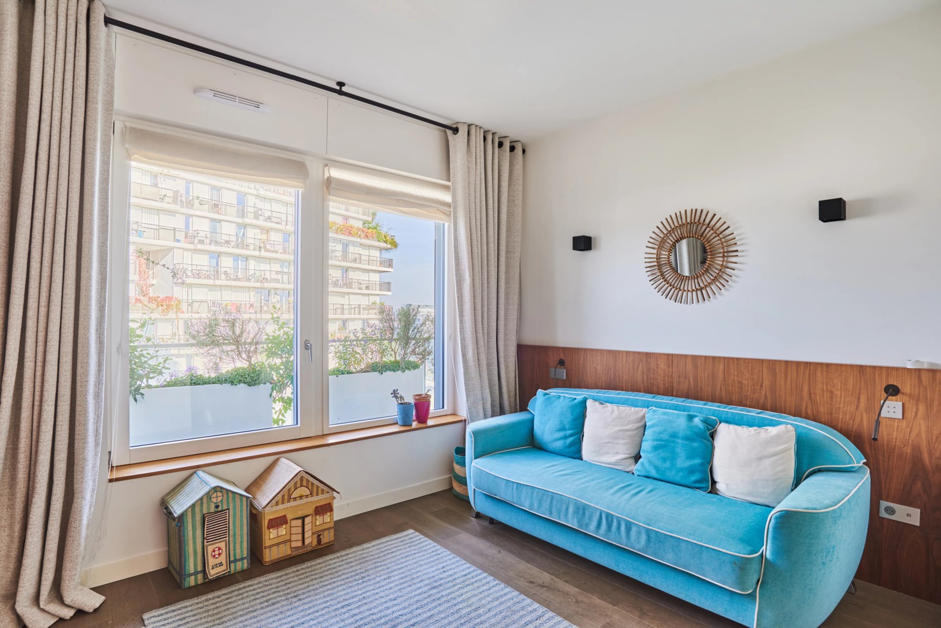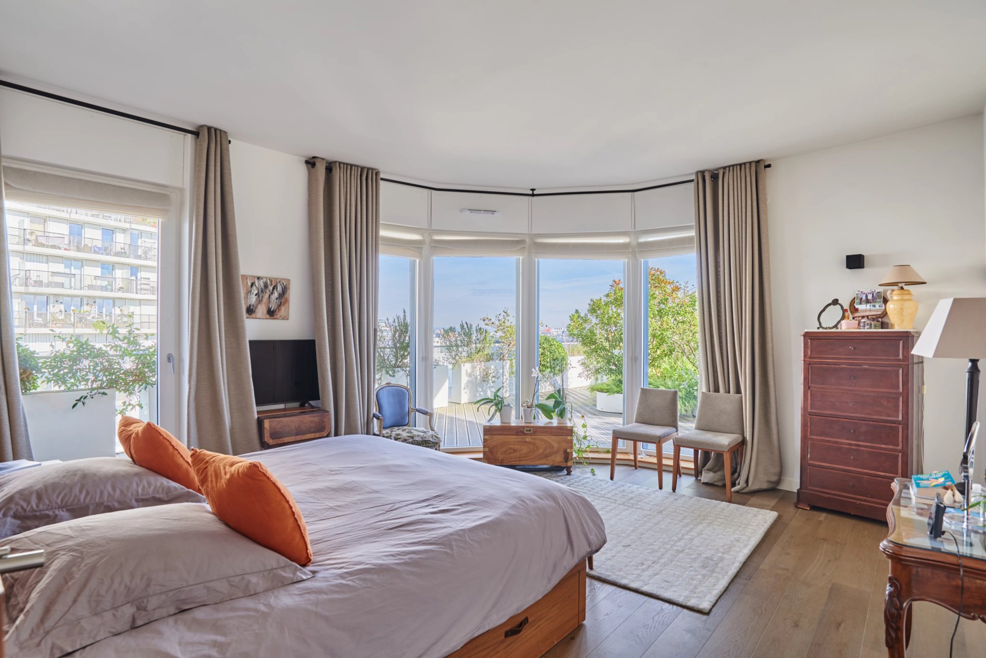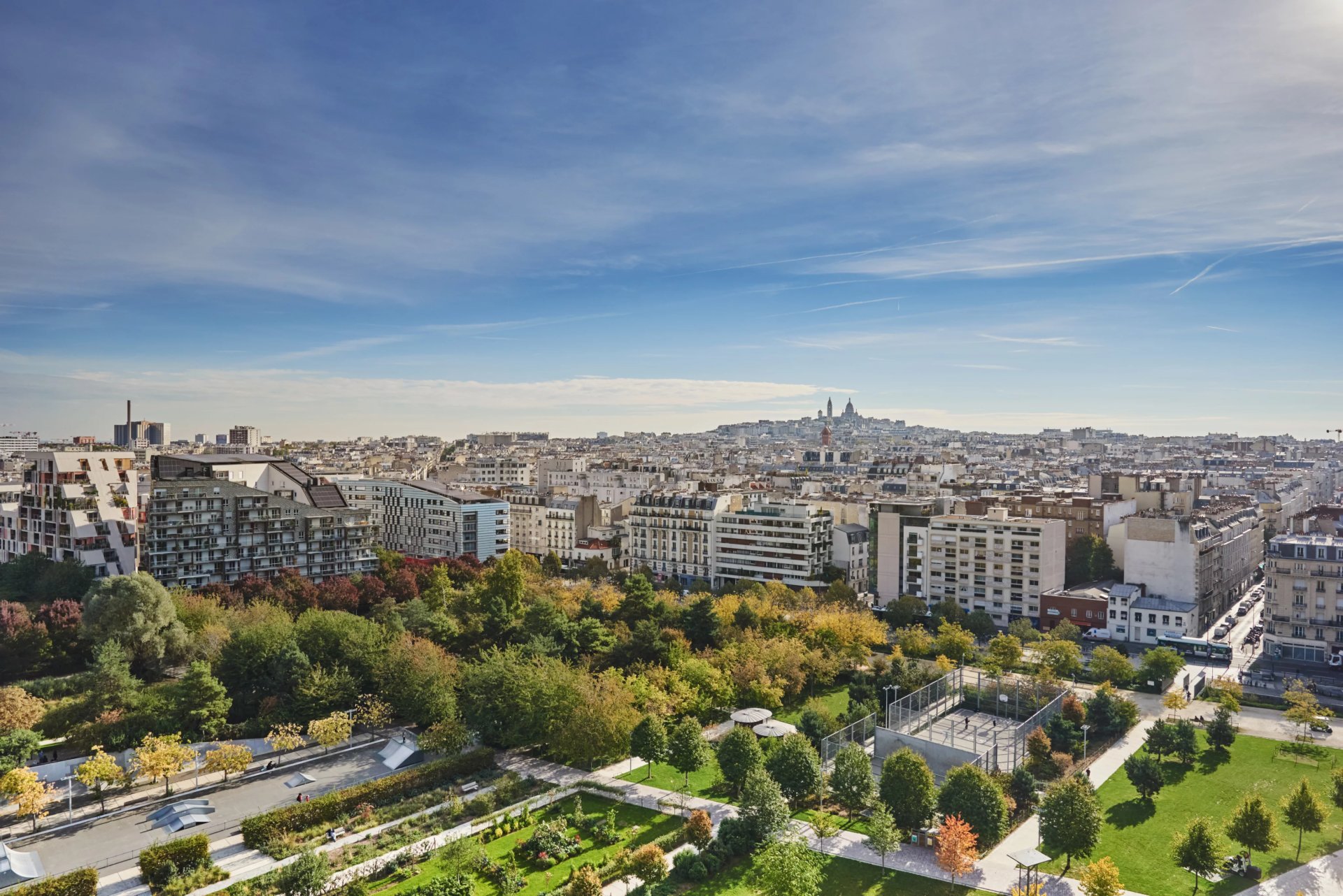 This superb apartment benefiting from a stunning near 250 sqm terrace commanding an open view of Sacré Coeur Basilica is on the 9th floor of a recent building with a lift located just next to Martin Luther King Park. Beautifully appointed and in perfect condition, it includes a double living/reception room opening onto the leafy terrace, a semi open-plan kitchen, a master suite with a bathroom, a study, a dressing room and a separate wc, two further bedrooms each with a shower room, a utility room and a separate wc.