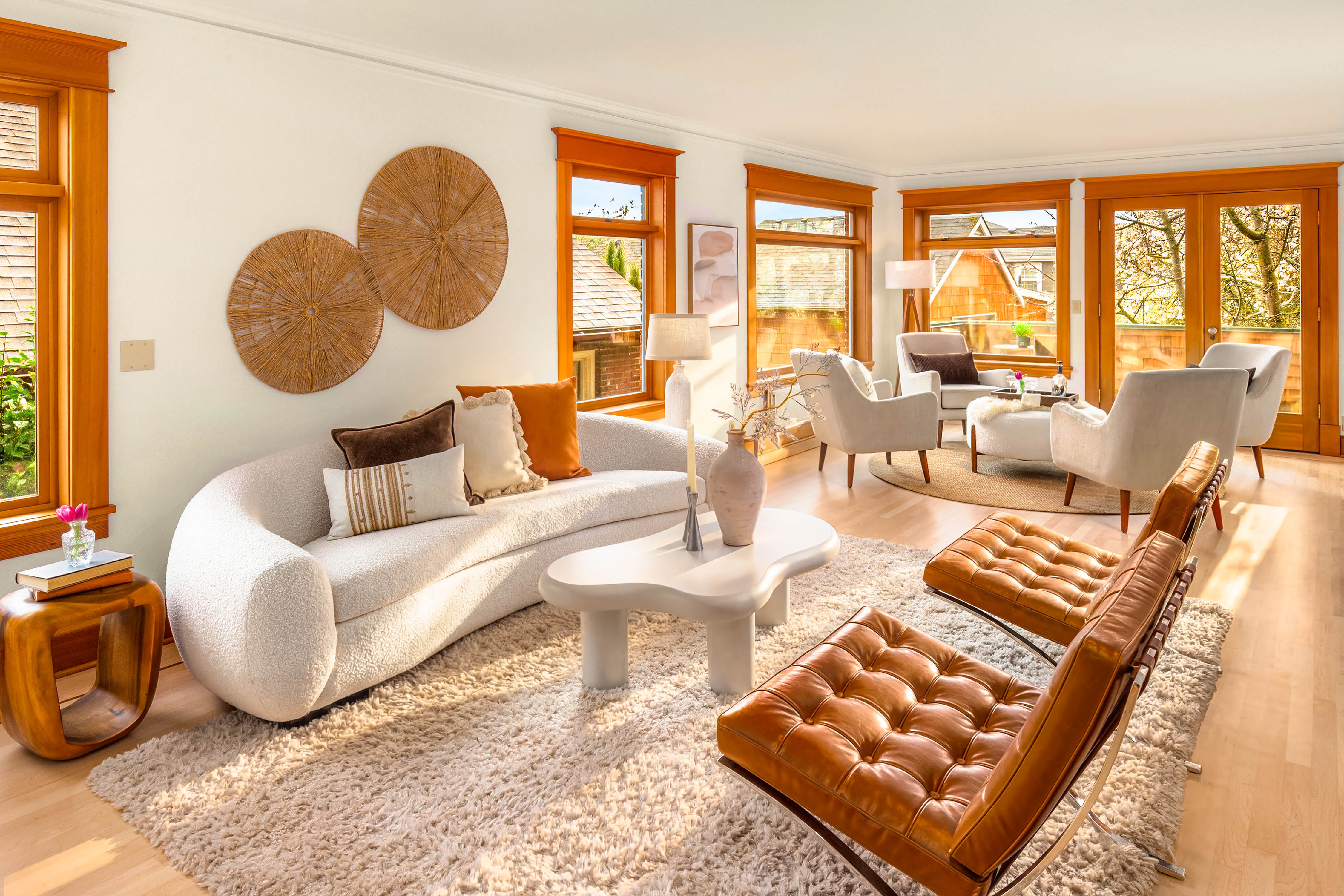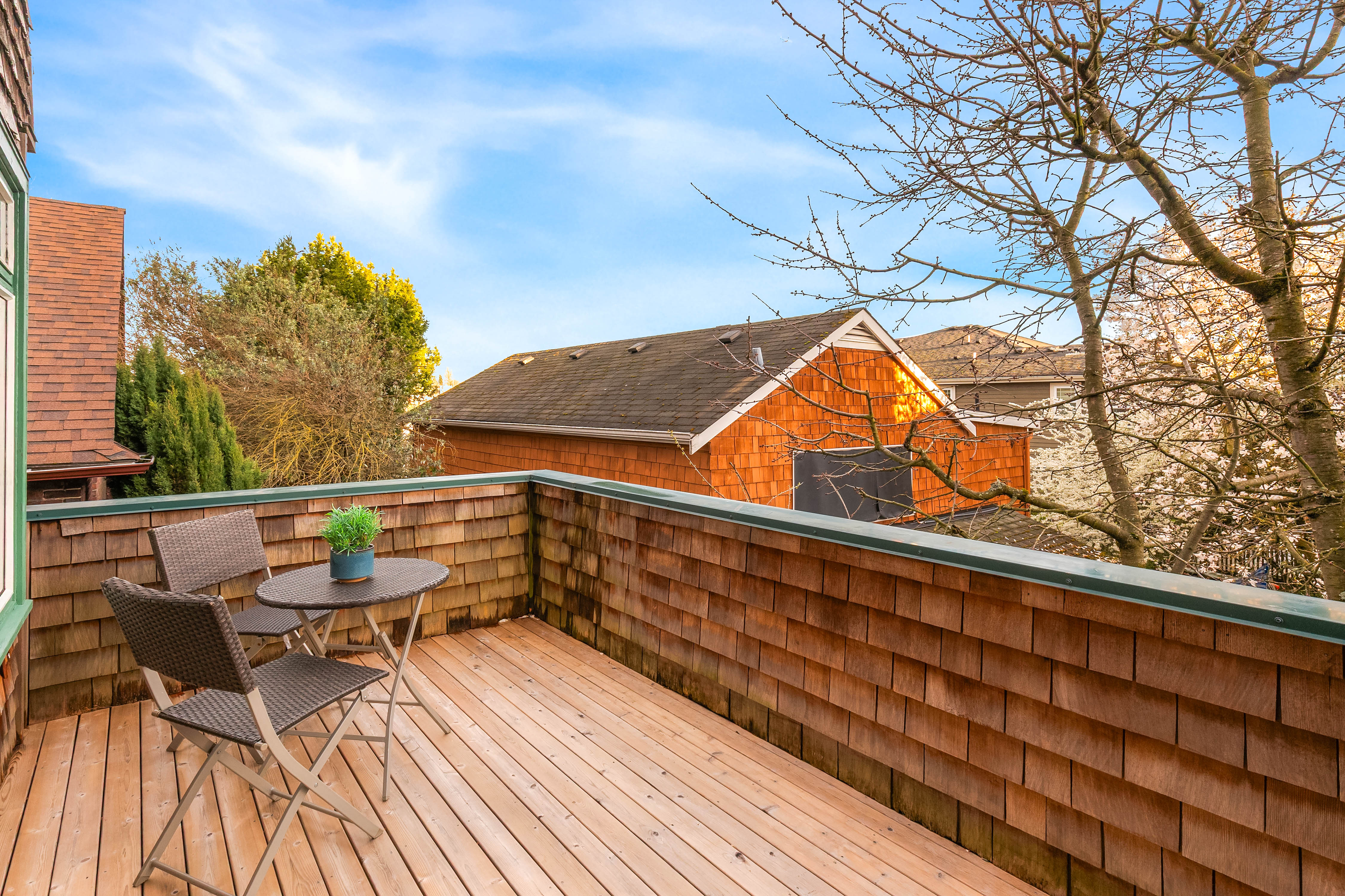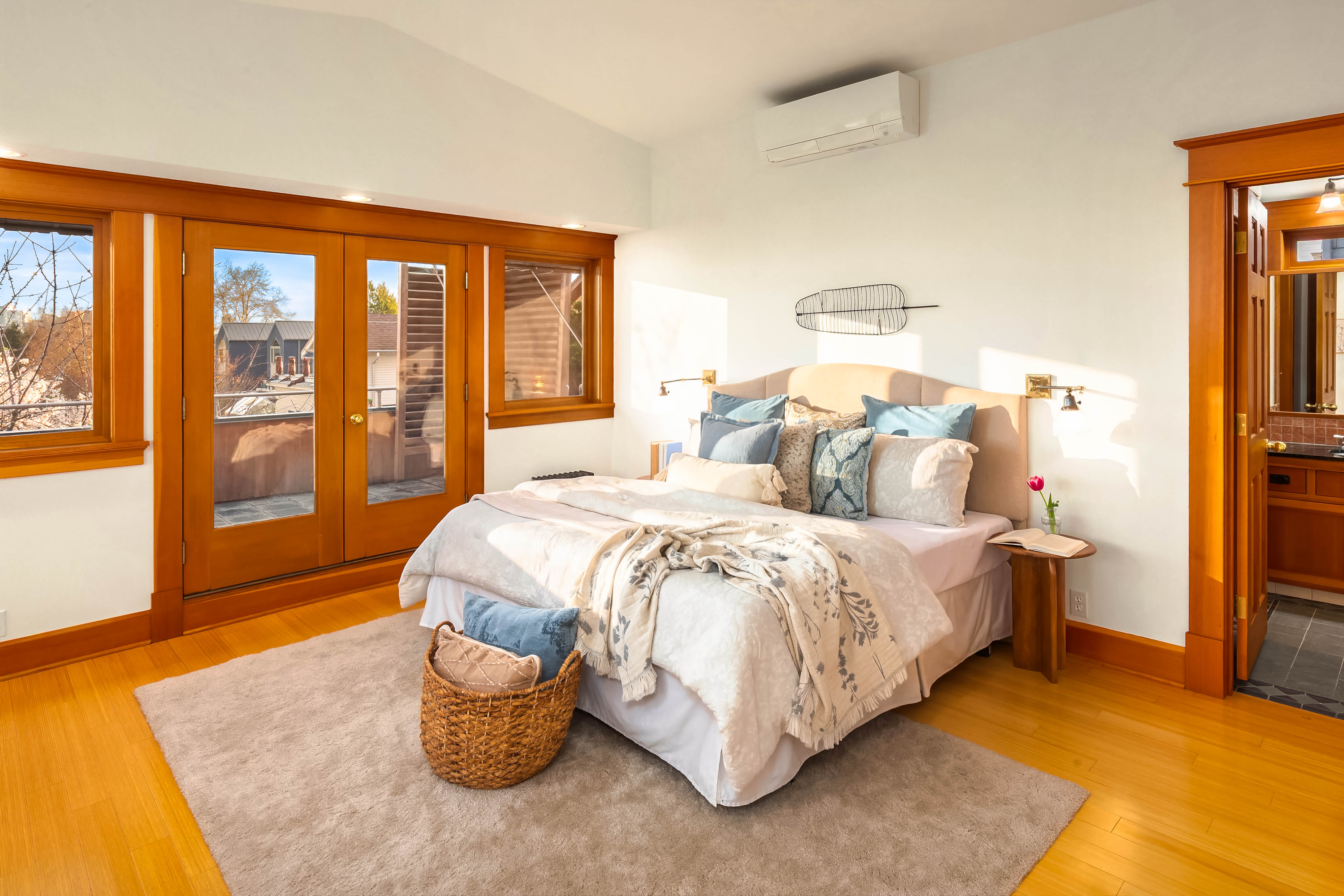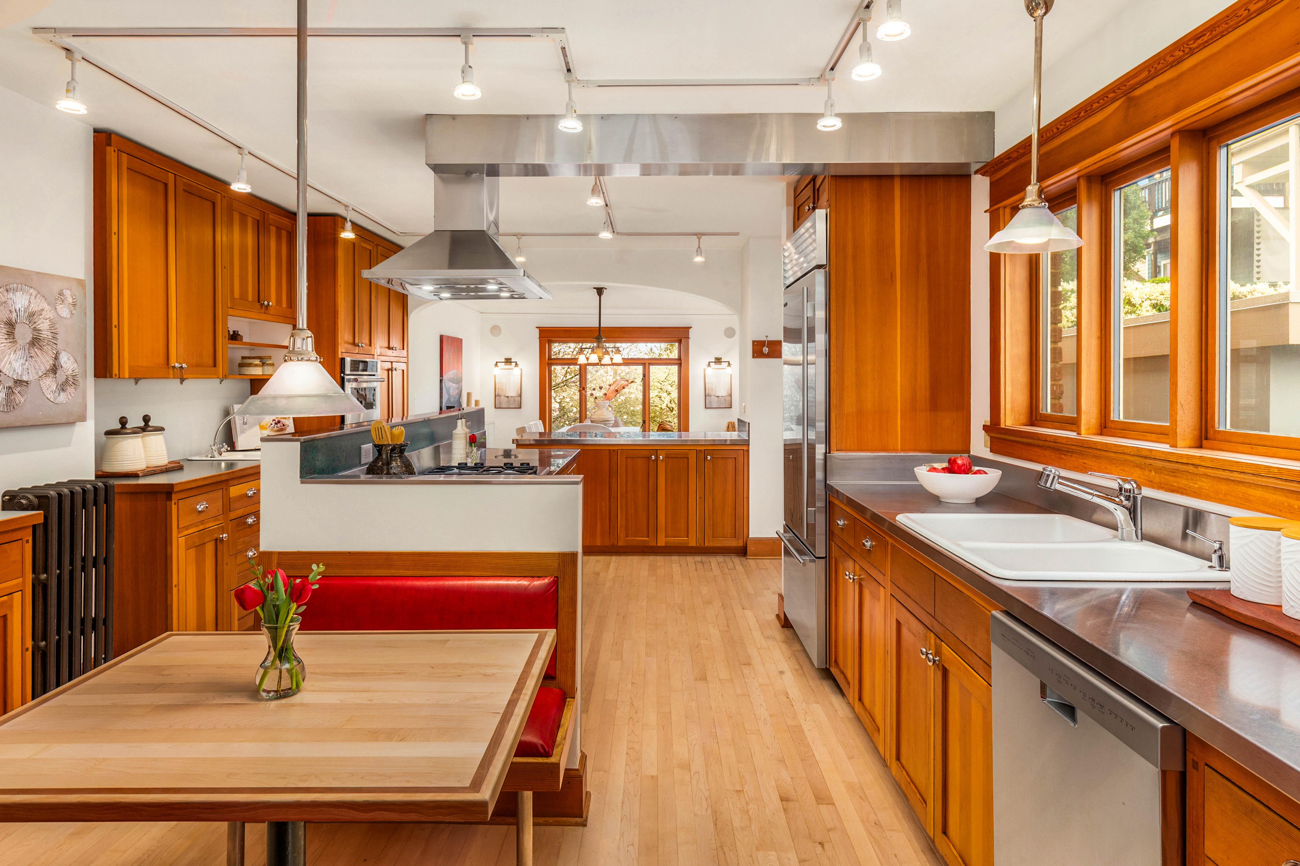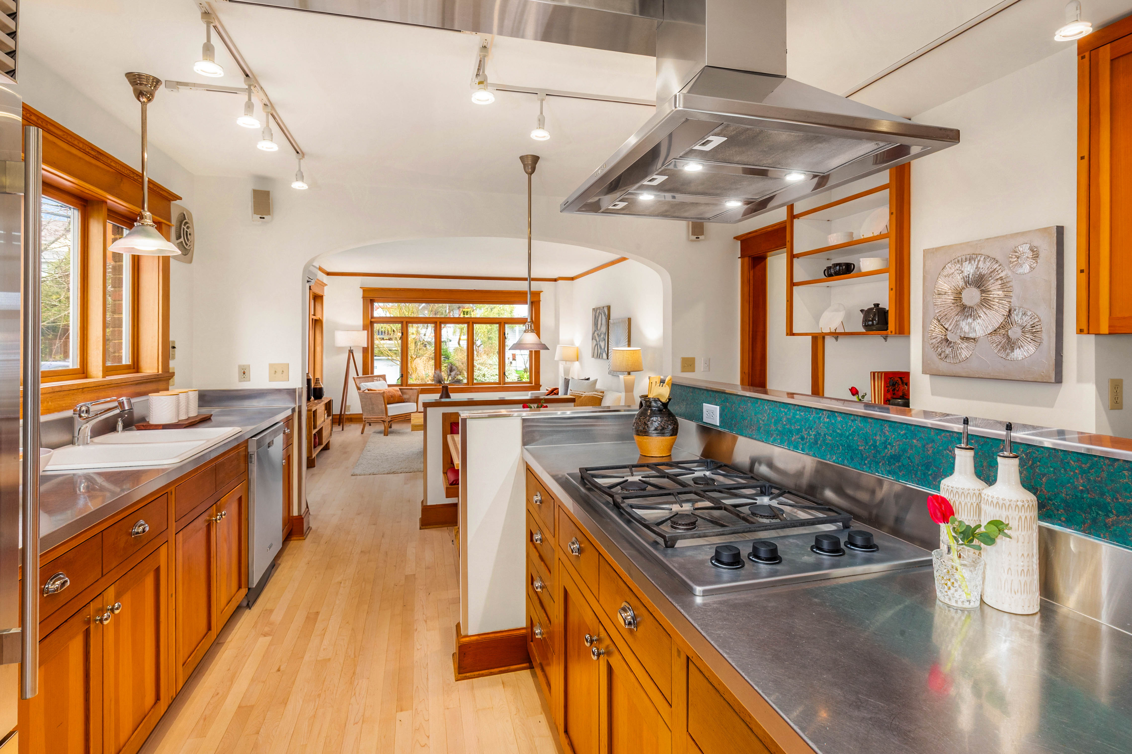 Offered for the first time in 40 years, this remarkable home in the heart of Wallingford blends historic character with striking architectural design. Originally built in 1927 and thoughtfully transformed into a stunning single-family residence with extensive upgrades throughout, the home is beautifully positioned to capture panoramic views of Lake Union and the Seattle skyline. Exceptional craftsmanship and custom design define the interior. Vertical grain fir trim, maple and bamboo floors, and abundant wood windows fill the home with warmth and natural light, while a sculptural steel and maple staircase serves as an architectural centerpiece. Designed for everyday living and entertaining, the chef’s kitchen features Sub-Zero refrigeration, double wall ovens, stainless steel countertops, custom fir cabinetry, and an inviting built-in banquette. A hidden passive wine cellar stores up to 750 bottles, while a daylight MIL suite with a separate entrance offers flexibility for guests, extended living, or potential rental income. The upper level enjoys sweeping lake and skyline views and hosts a serene primary suite with a custom-designed bath and two private outdoor spaces—a hot-tub-ready deck and a sunny south-facing terrace with 180-degree views, perfect for gardening. Ideally located just blocks from Wallingford’s restaurants, parks, the Burke-Gilman Trail, and Lake Union—a rare opportunity to own one of Wallingford’s most distinctive and thoughtfully crafted homes.
