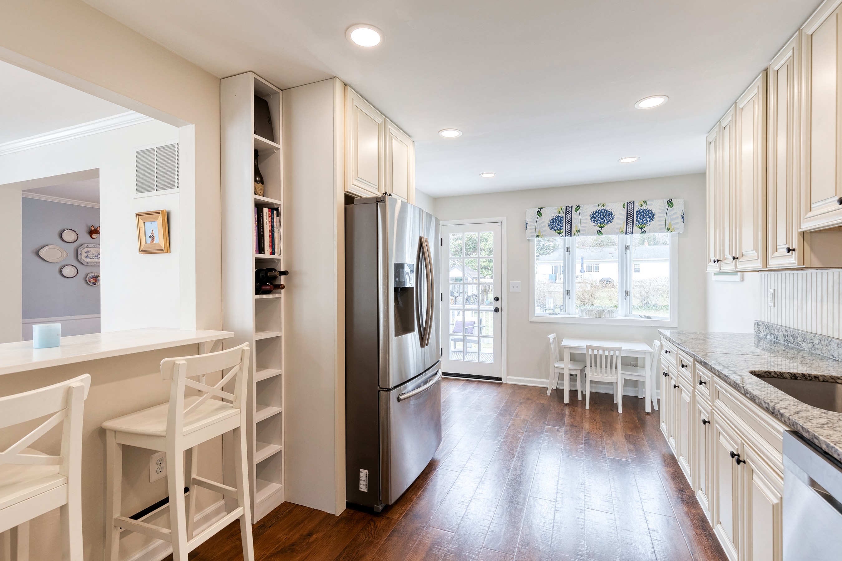Welcome to 8206 Burnley Road, a thoughtfully updated home offering comfortable one-level living in the highly desirable and rarely available Village Green neighborhood. This light-filled property features three spacious bedrooms, two full bathrooms, a one-half bathroom, a large, completely renovated basement, along with gorgeous finishes throughout. Step into the beautiful, bright living room highlighted by a large bay window with a brand new gas fireplace and charming built-in shelving. The dining room features a built-in bar, creating the perfect setting for entertaining. The updated kitchen offers great functionality and direct access to the large, flat backyard, complete with a swing set and storage shed, ideal for outdoor enjoyment, play, or gardening. The main level includes three generously sized bedrooms and two full bathrooms, providing convenient one-level living. The fully renovated basement (April 2024) offers a giant flexible living space with a large sitting area, a separate room that can function as a bedroom or guest room, dedicated office space, a half bath, and a utility room with plenty of storage and space for an at-home gym. Major system updates provide peace of mind, including a new roof (2021), HVAC system (2020), and hot water heater (2021). Several appliances have been recently replaced, including the washer, dryer, and dishwasher. Located in the most ideal part of town, just minutes from shopping, dining, parks, and commuter routes, and walking distance to the highly rated Riderwood Elementary School, this home offers plenty of opportunities for outdoor exercise and recreation nearby. Prepare to fall in love with the perfect blend of charm, space, updates, and convenience.