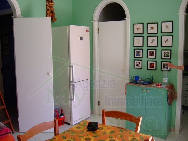 Village Makauda - Sciacca Terraced house in condominium, 70 sqm. Comprises: entrance - living room, kitchen, bedroom, bedroom with two bunk beds, bathroom, laundry - utility room, veranda with awning, patio which is accessed by spiral staircase, parking in the common parking. The house is full of furniture, household and kitchenware accessories, appliances (fridge, oven, stove, television, washing machine, electric water heater) and air (n ° 2 air conditioners). The beach reserved for the village condos is just 5 minutes walk.