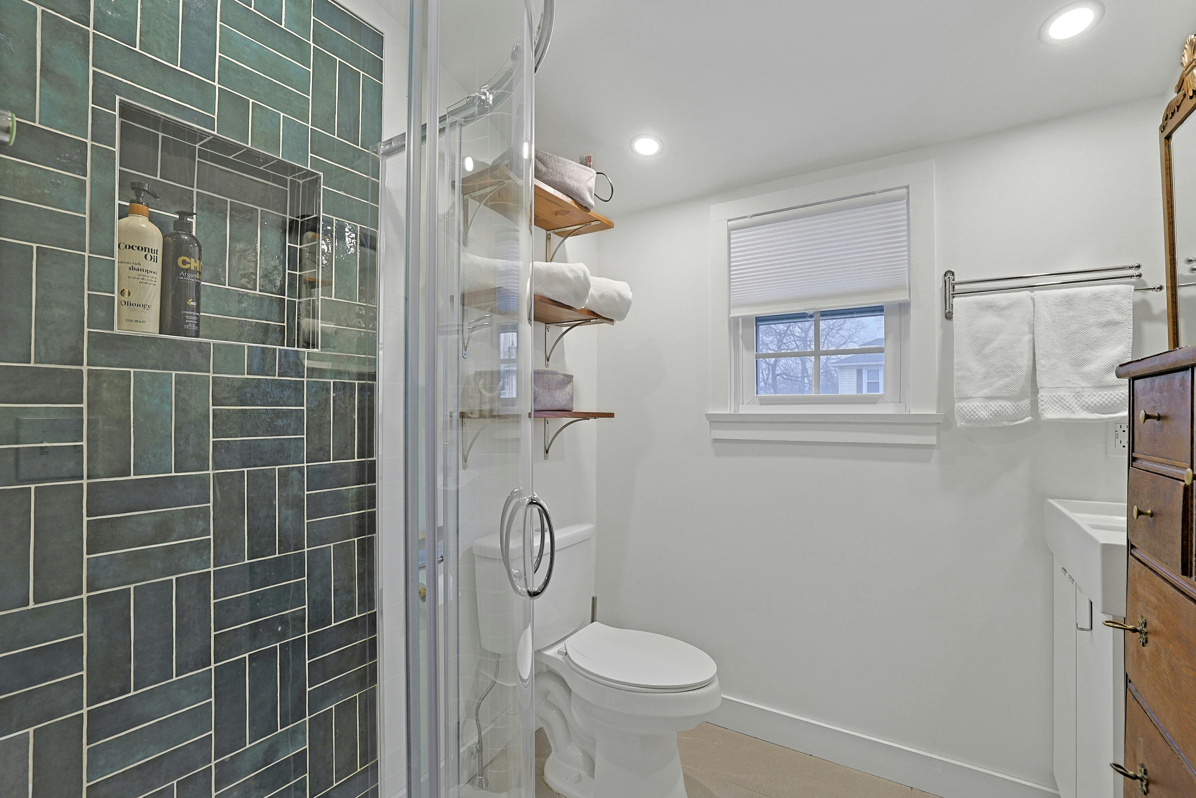 A wonderful home in the Hudson Highlands, 1 Bridge Terrace is the classically crafted, yet updated house you've been searching for. Built in 1946 and remodeled extensively since 2019, this one level Bungalow is filled with unique touches. Park in the driveway, a short distance to the glass front door. Up original river rock lined steps, find the entryway. Inside, the enclosed three-season porch is an expansive, slate floored and exposed raftered room with many possibilities. Right now, it's the family room with doors to the living room and kitchen. Step into the living room and find a beautiful space with hardwood floors, abundant windows and sconces that cast light onto the beamed, gorgeous wood paneled ceiling. Off of the living room is the dining room, which is open to the updated kitchen and looks out to the porch. The creatively remodeled kitchen, with stainless steel refrigerator, open shelving that makes finding ingredients and tools a breeze and customizable lighting, is a great place to prepare a meal. From the living room, we can move back to the two comfortable bedrooms. The first is deep with access to the attic. The second has two closets. Like much of the rest of the home, warm hardwood floors are comfortable under foot. The renovated bathroom features a tile and glass shower and unique, modern sink and vanity. The washer and dryer are also conveniently on this level. Located on a level, easy to maintain corner lot, the home is just a short distance to the amenities of Fort Montgomery and a simple drive to the shops and restaurants of downtown Highland Falls. From here, you can branch out and experience the beauty of boating on the Hudson River, the invigoration of hiking in the nearby parks or be in Manhattan in just under an hour. Stop by for a look. You won't want to leave.