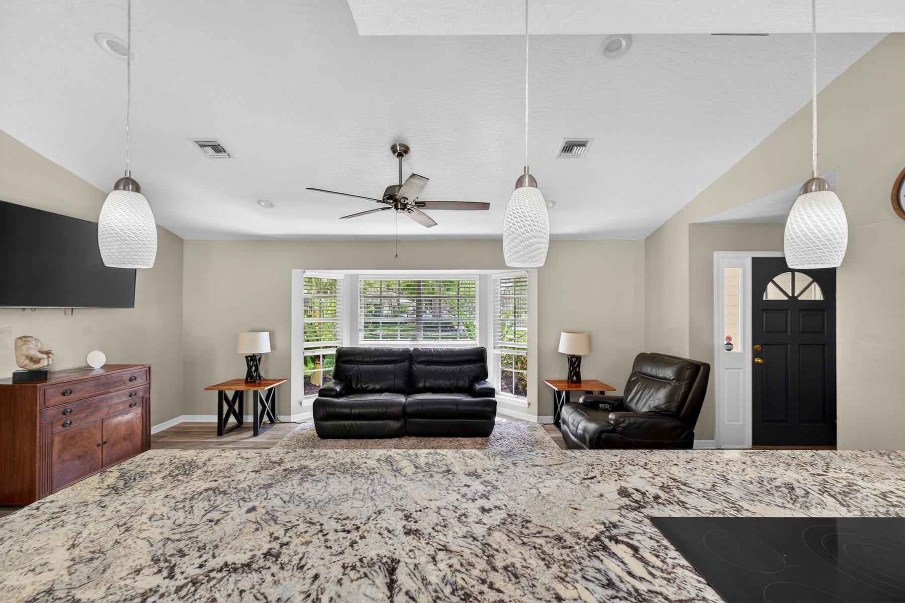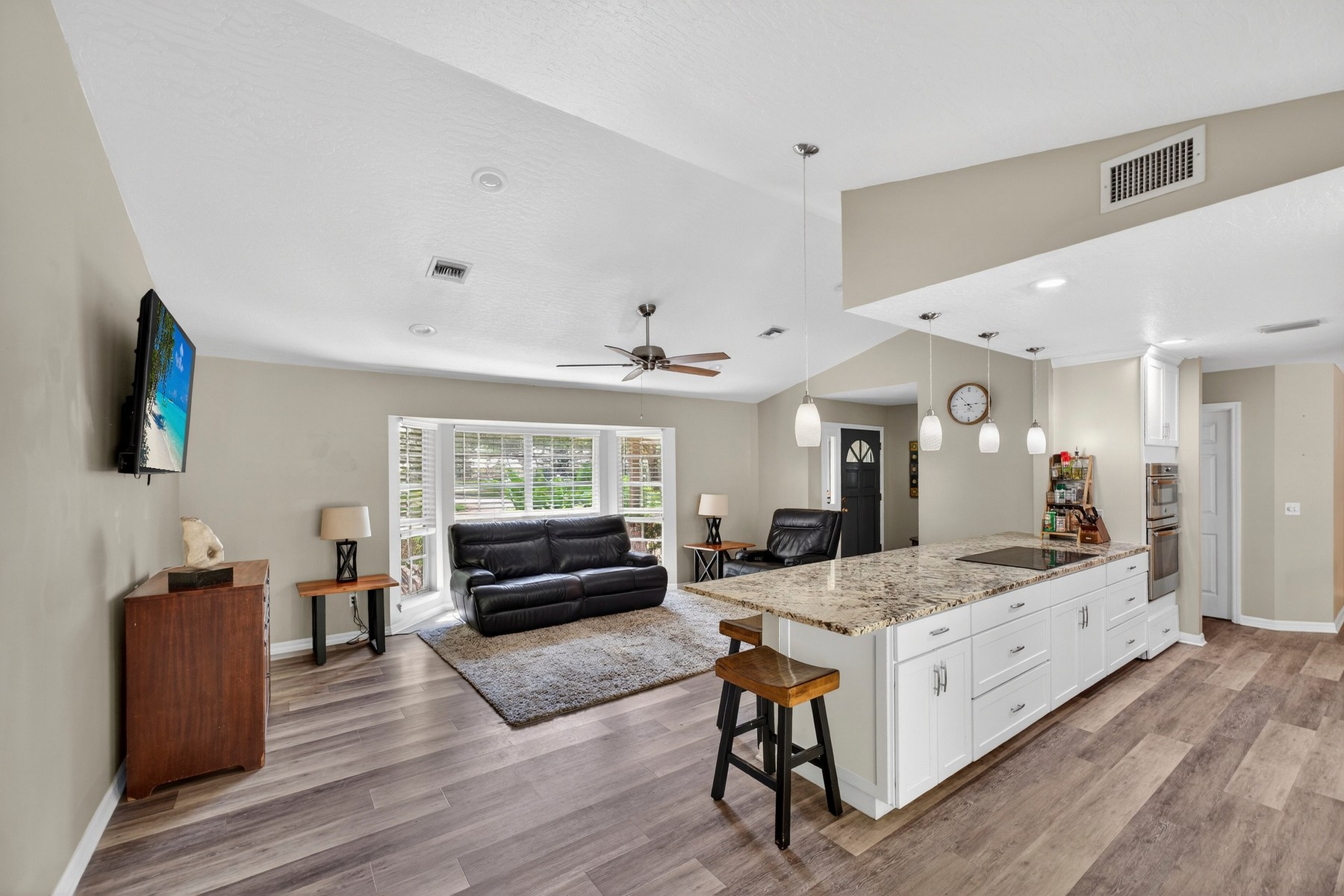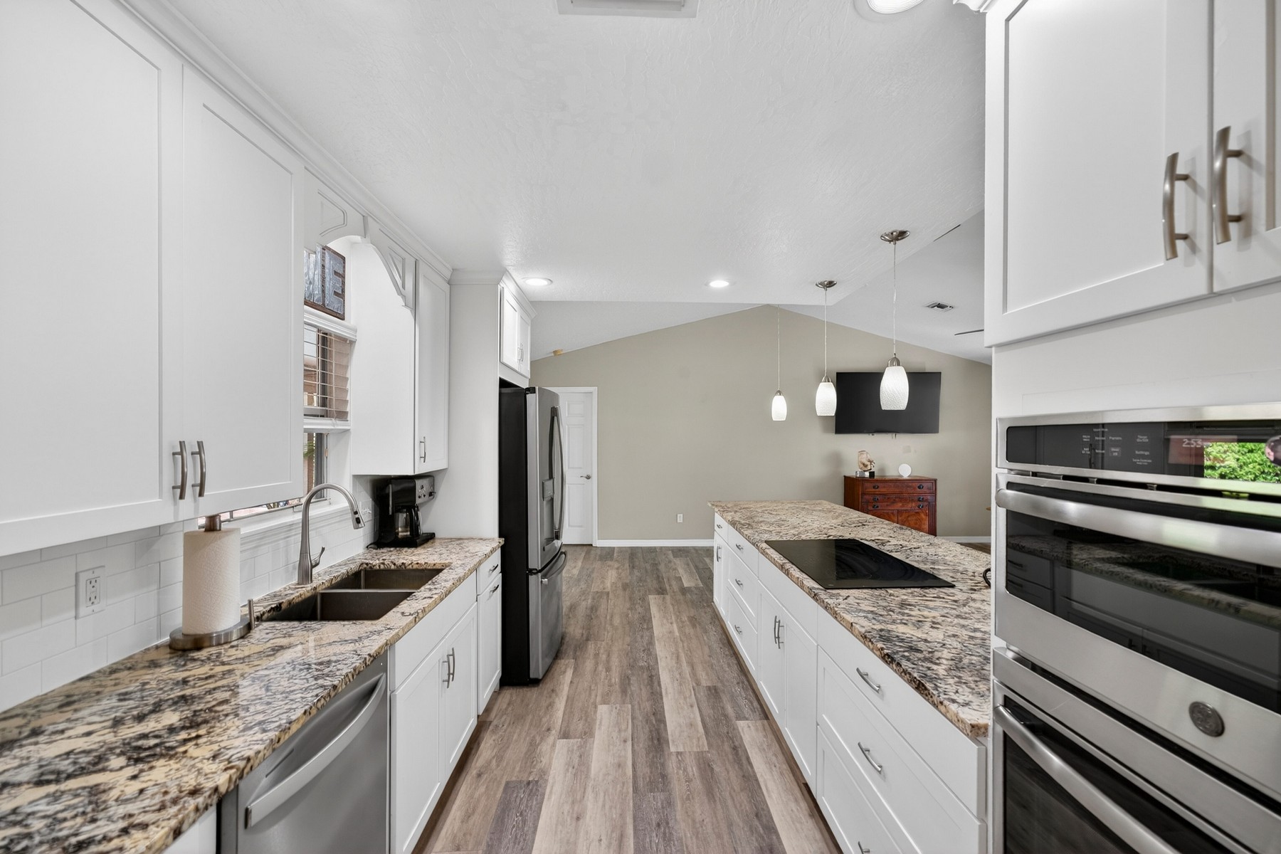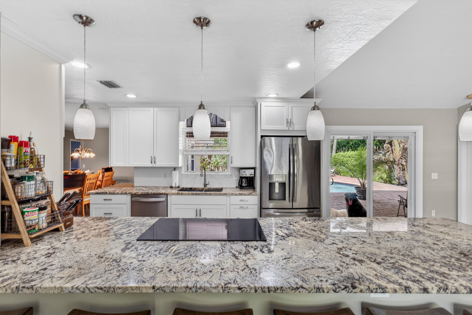 Wonderful location in the desirable and picturesque Woodlands community! This well-maintained 4-bedroom, 2 bath home offers a thoughtful split floor plan with the primary suite set apart from the secondary bedrooms. The updated kitchen opens to the family room and features a cooktop and wall ovens, perfect for everyday living and entertaining. Additional highlights include a dedicated dining room and an oversized laundry room. Relax outside in a beautifully landscaped, private backyard featuring a covered porch, pool, and fire pit. Updates include: 2014 roof, 2021 AC and appliances, 2018 water heater.