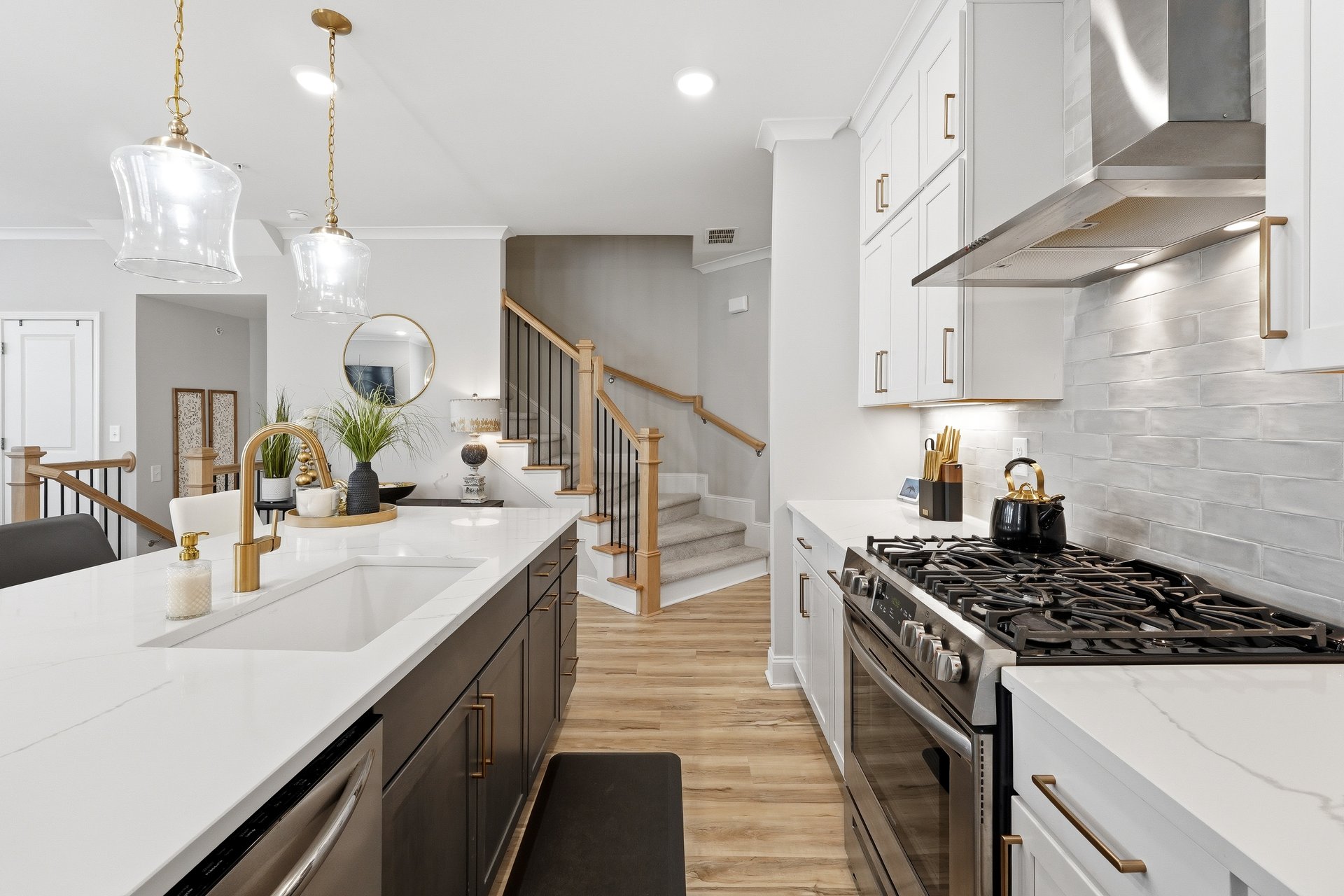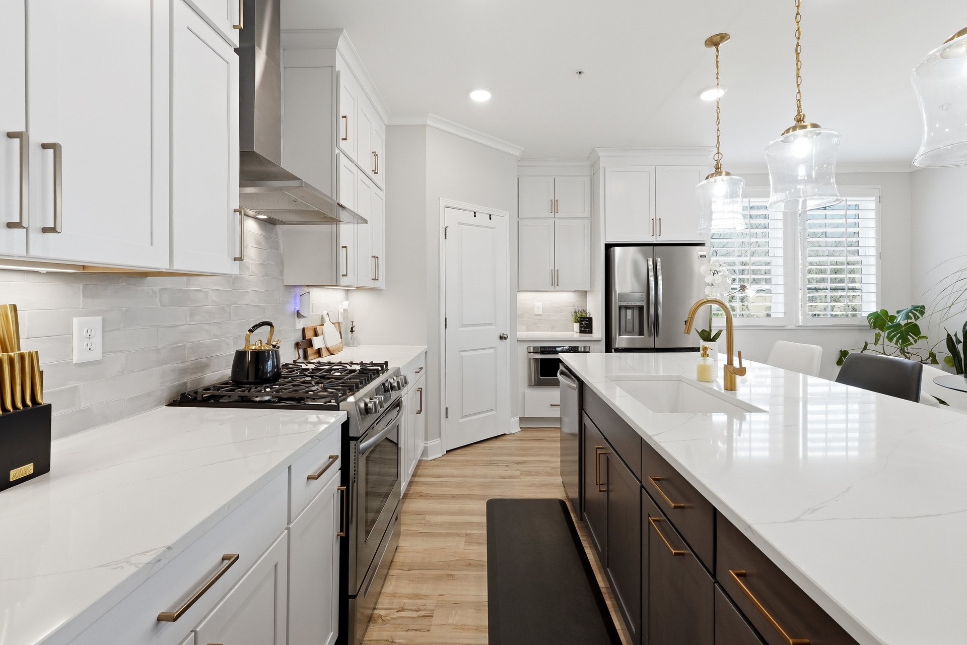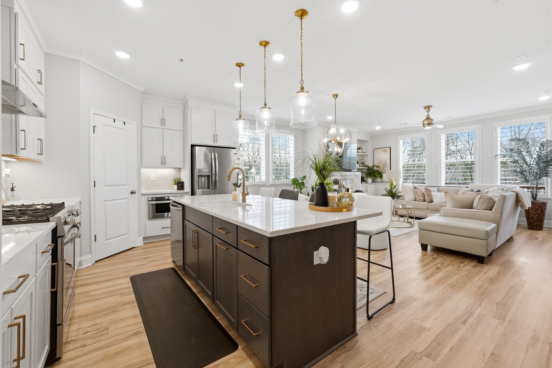 Just minutes from downtown Canton, this stunning end-unit townhome offers the perfect blend of modern design, upscale finishes, and low-maintenance living—all in one of the area’s most sought-after communities, The Retreat at River Green. Built just three years ago by J.W. Collection (John Wieland), this 2,700+ sq. ft. home is in pristine, better-than-new condition. The main level features a convenient two-car garage, high ceilings, a gas fireplace, plantation shutters and an open-concept layout. The chef’s kitchen is a true centerpiece, complete with a gas range, ceiling-height white cabinetry, an eight-ft island, stunning quartz countertops, and a sleek drawer microwave. Upstairs, the spacious owner’s suite offers a sitting room, spa-inspired bath, and a generous walk-in closet. An additional bedroom with full ensuite bathroom, laundry room and flex space round out the upper level. The finished daylight basement offers a third bedroom, full ensuite bath, oversized media/rec room, and a second laundry room—perfect for guests or multi-generational living. As one of the premier end units in the community, this home features one of the largest backyards in The Retreat, complete with fencing and beautiful views from the private deck. Homeowners enjoy access to River Green’s exceptional amenities, including two resort-style pools (one with waterslides and a splash pad), soccer and play fields, six tennis courts, a playground, clubhouse, community firepit within walking distance, and miles of scenic trails leading to the Etowah River. Excellent Cherokee County Schools!