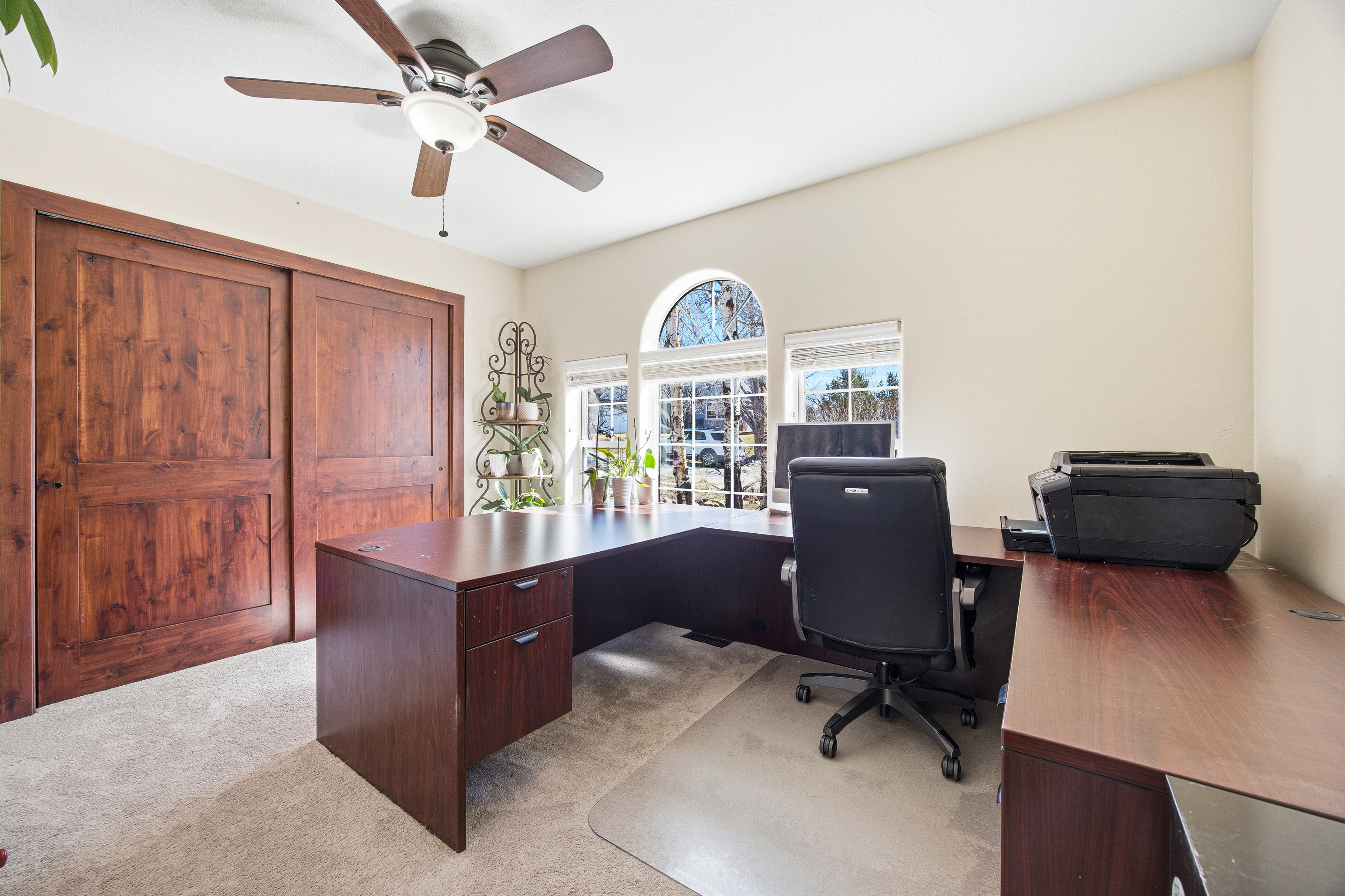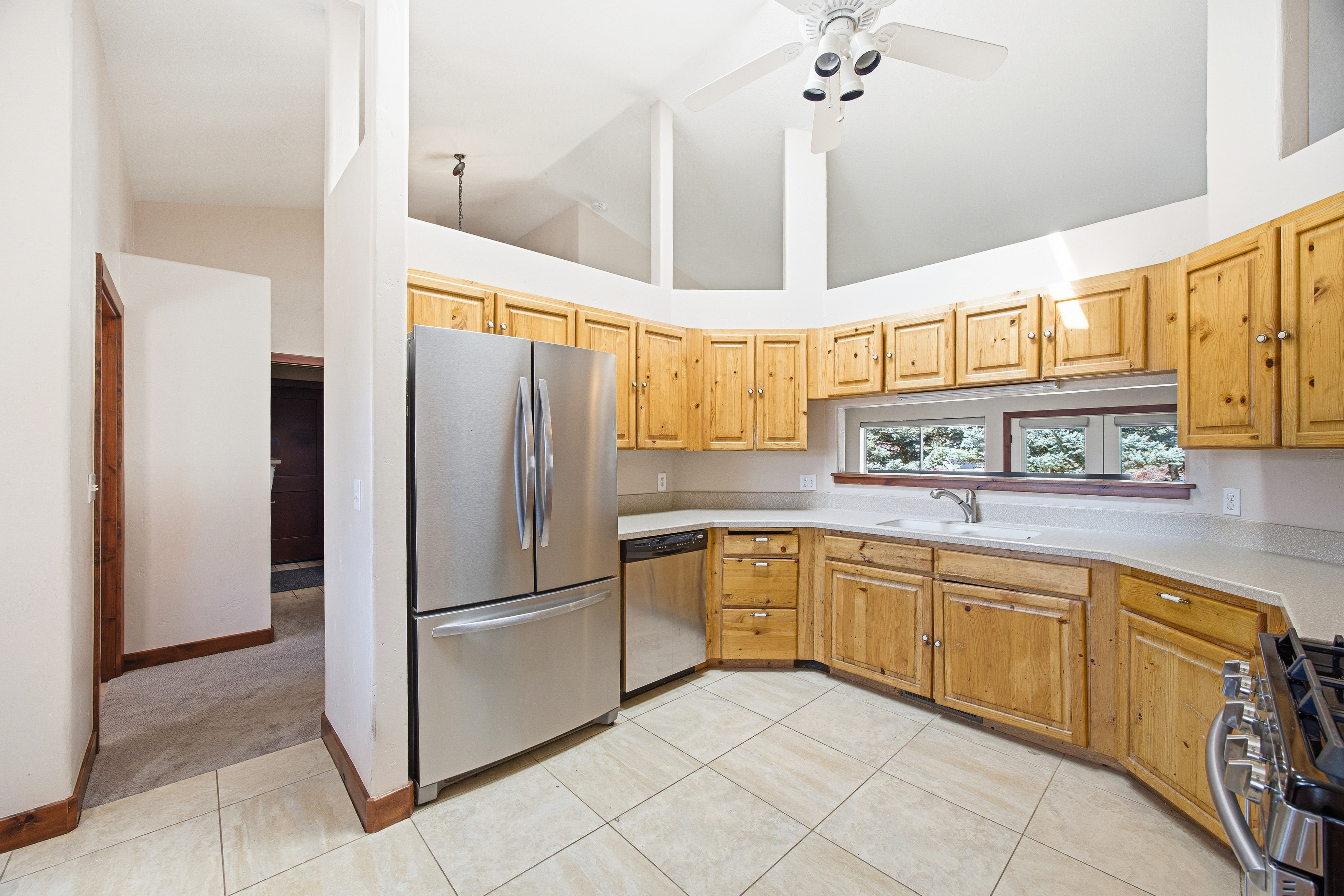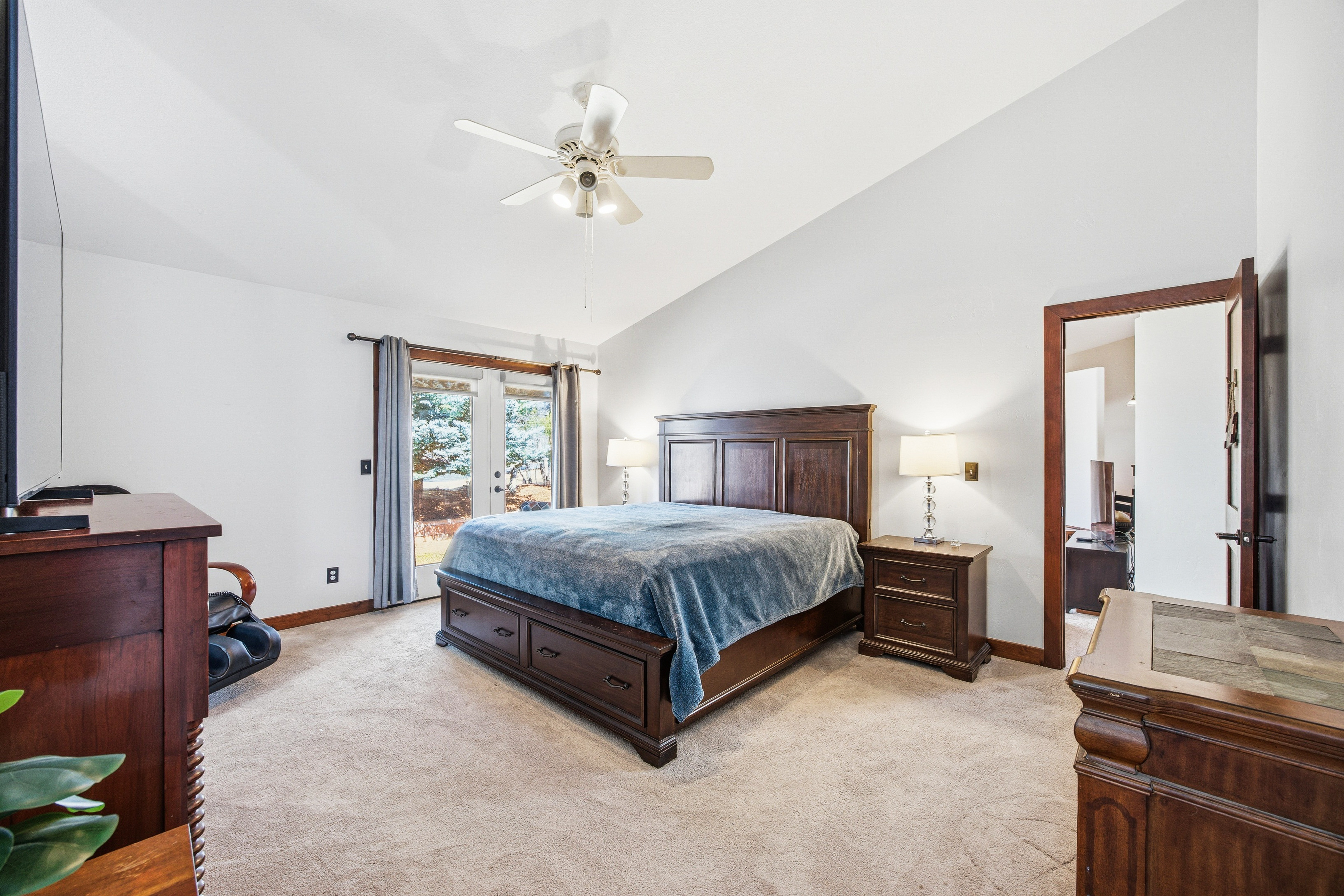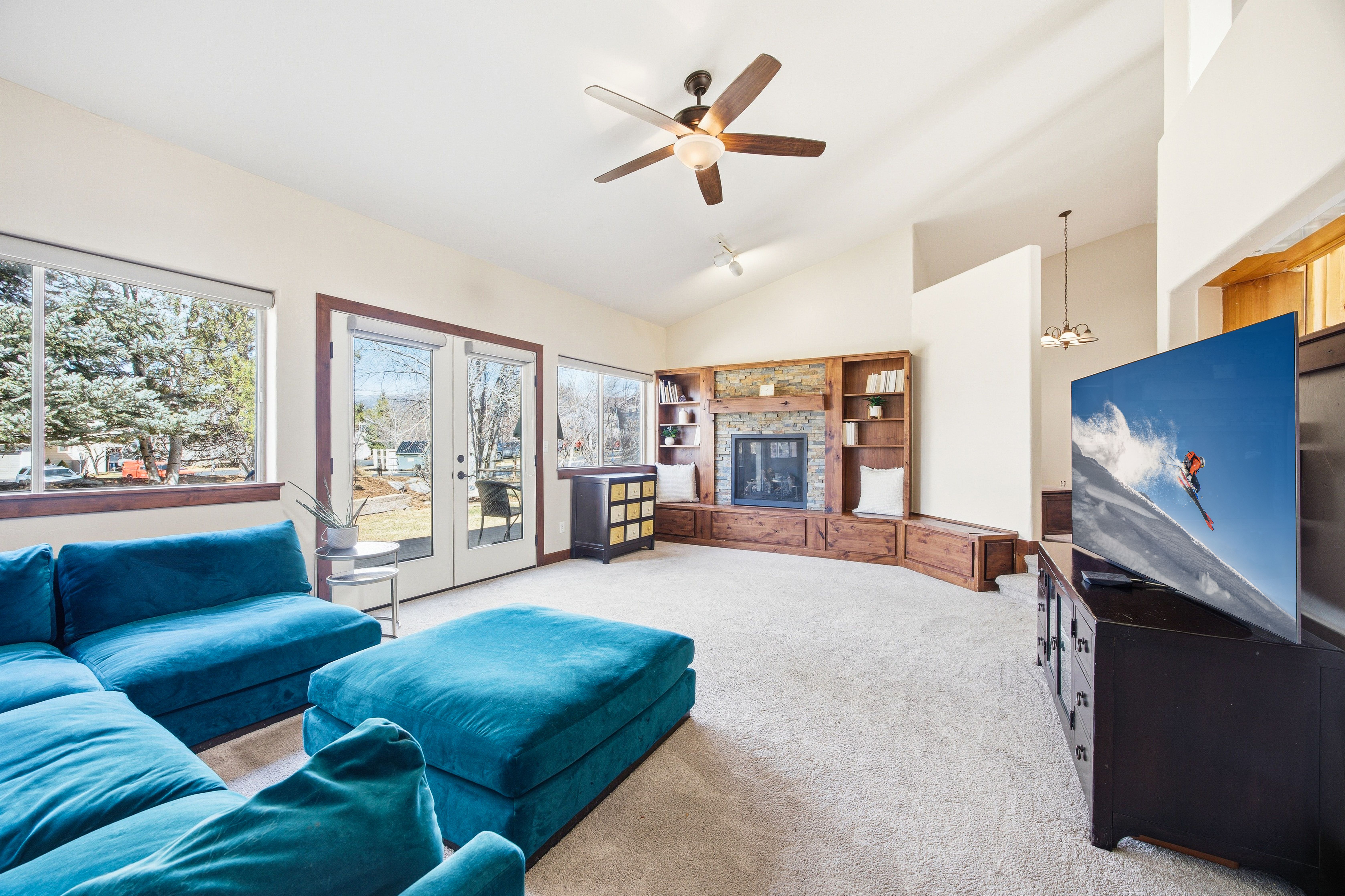 Beautifully maintained 3-bedroom, 3-bath residence offering thoughtful updates and effortless indoor-outdoor living in Eagle's desirable Terrace neighborhood. The light-filled main level features vaulted ceilings with two skylights, a custom built-in fireplace, and French doors that open from both the living room and primary suite to the outdoor spaces. Designed for the ease of main-level living, all three bedrooms are located on the primary floor.A comprehensive 2020 renovation introduced new carpet on the main level and stairs, French doors to the primary suite and living area, custom blinds, solid wood doors and trim, and tastefully updated bathrooms. The home has been further enhanced with a DaBella composite shingle roof installed in 2024. The finished lower level provides versatile additional space ideal for a media room, home office, fitness studio, or potential fourth bedroom.Outdoor living is equally inviting with Trex decking, a covered deck, and a spacious wraparound backyard designed for both relaxation and functionality. The yard is equipped with a sprinkler system and the garden features raised beds with a Subpod in-bed composter. A concrete pad and wiring are already in place for the hot tub of your dreams.Additional highlights include an Aquasana whole-house water filtration system, salt-free water softener, radon mitigation system, oversized 2.5-car garage, and additional off-street parking.Ideally located with convenient access to Eagle's shops, dining, trails, and community amenities, and offering exceptionally low HOA dues, this meticulously maintained home presents a rare combination of comfort, flexibility, and thoughtful upgrades.