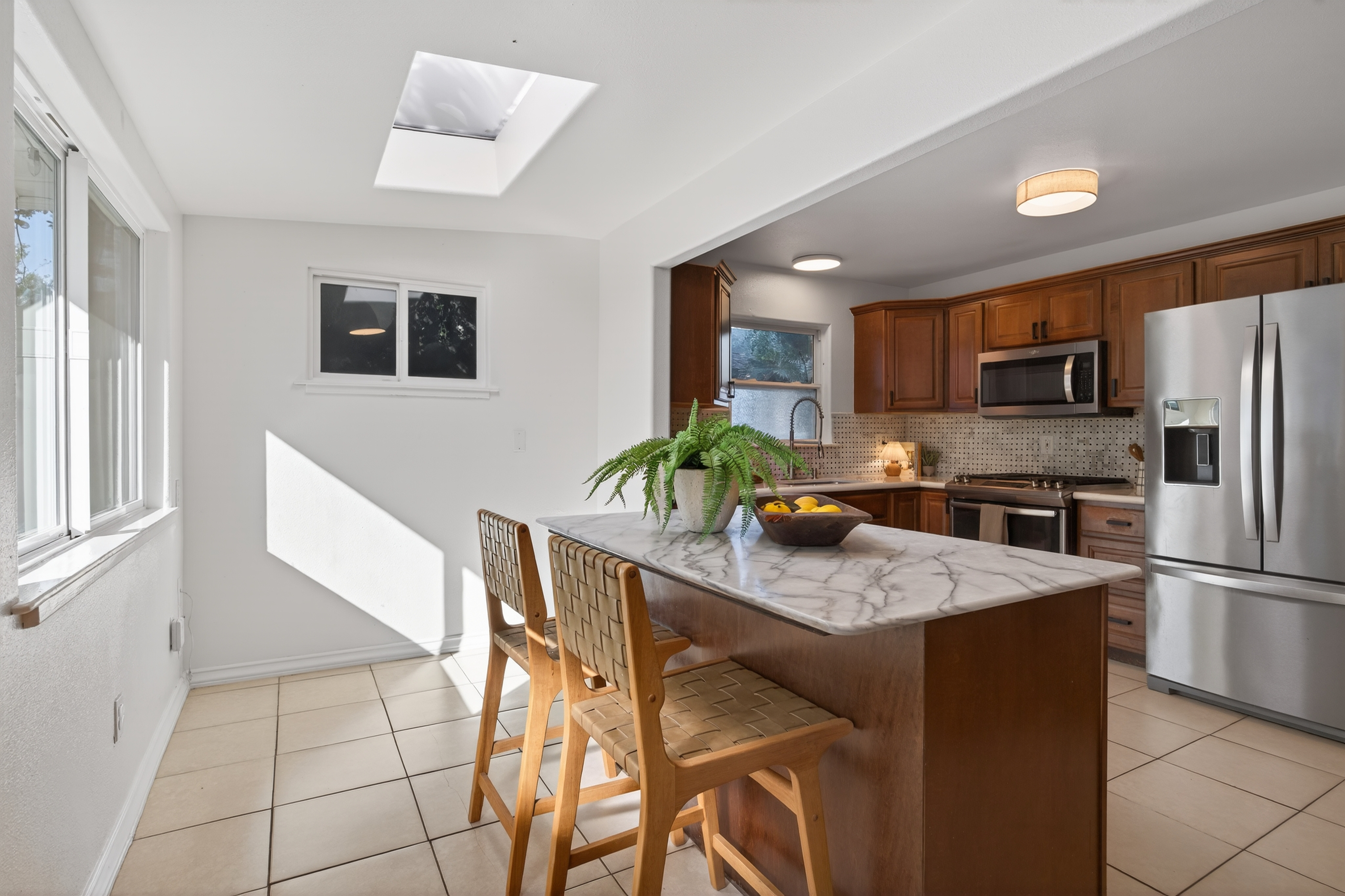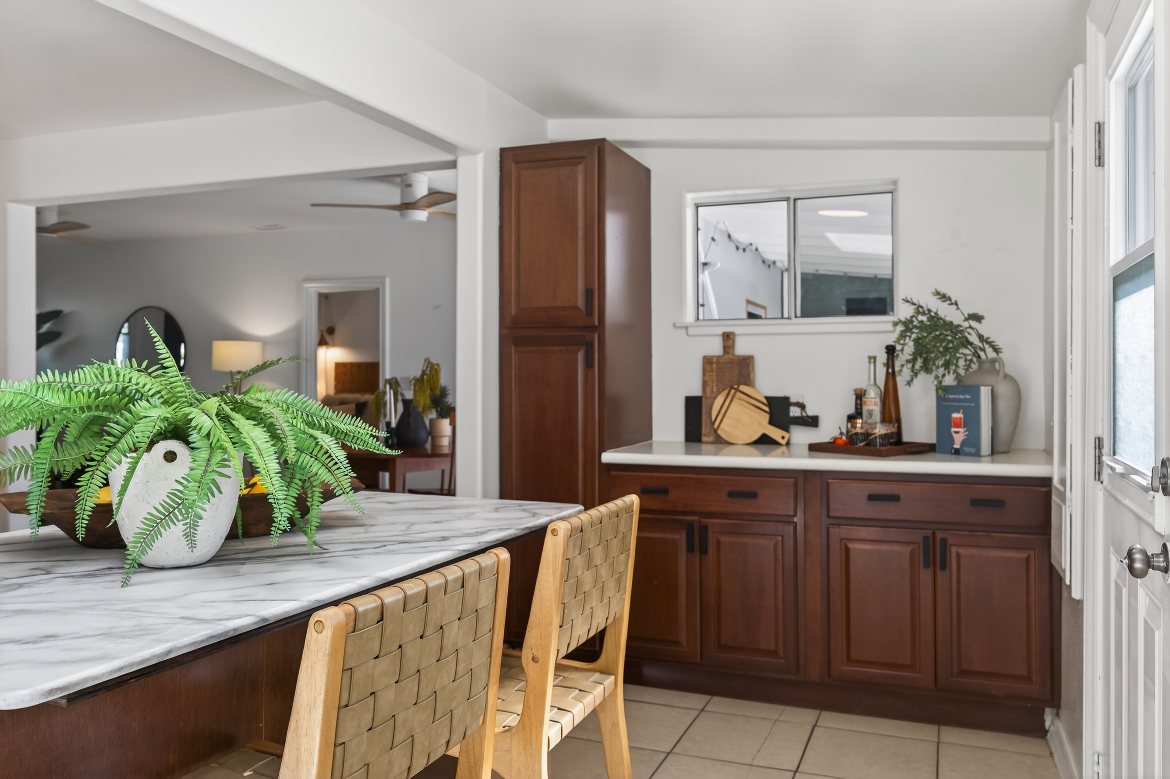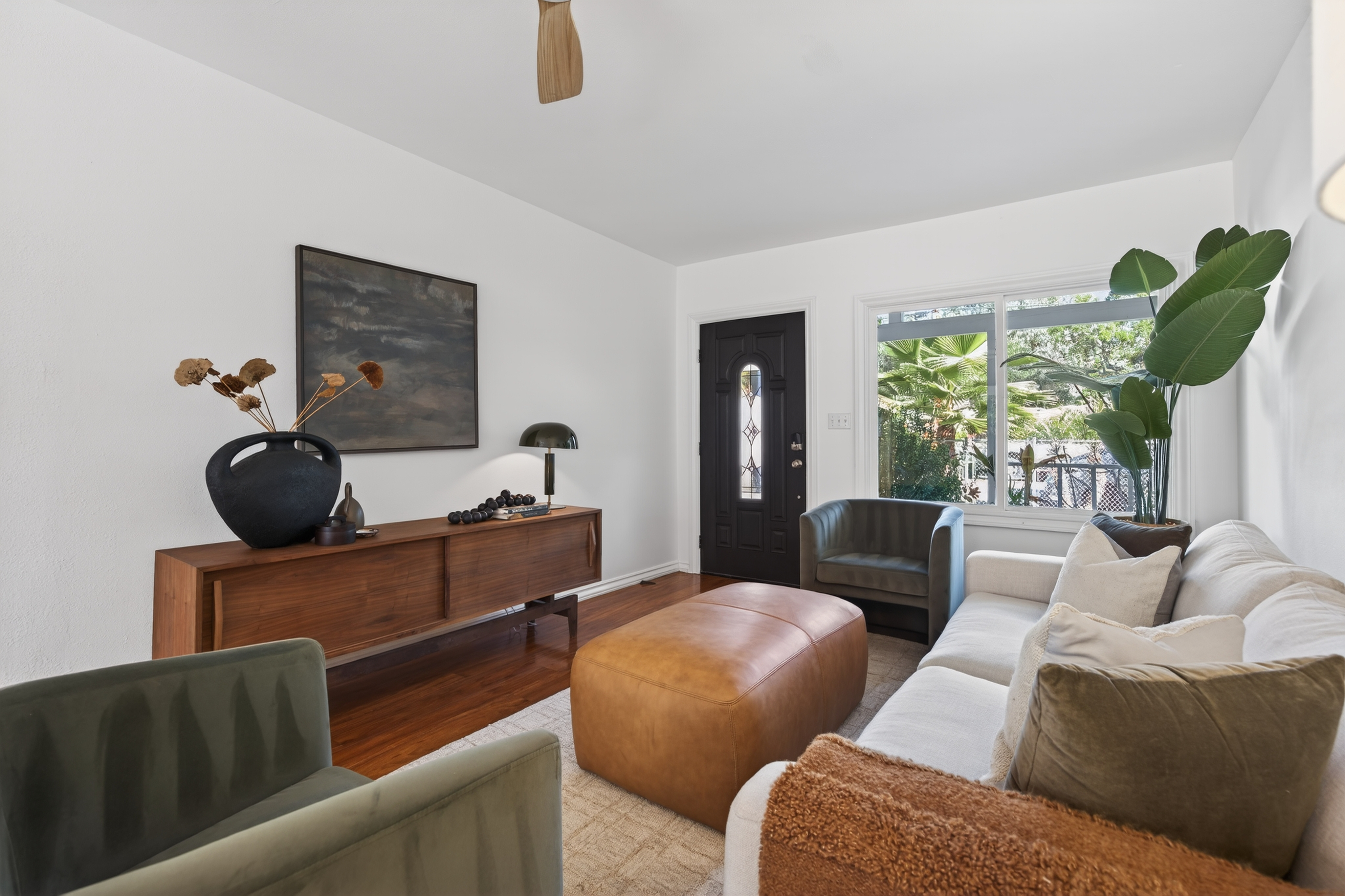Open Friday, March 20th from 9:30-12pm and Sunday, March 22nd from 1-3pm. This delightful California bungalow is ideally located in the heart of Ojai's charming Meiners Oaks neighborhood, just minutes from beloved local restaurants and the scenic Ventura River Preserve. Bathed in natural light, the home features an open floor plan that creates an effortless indoor-outdoor flow--perfect for enjoying Ojai's ideal climate. A spacious front porch invites slow mornings with coffee or relaxed evenings spent with friends, while the dining area opens to a charming screened-in porch for easy al fresco living. The primary bedroom is thoughtfully positioned apart from the guest bedroom and bath, offering privacy and comfort, with conveniently located indoor laundry. Recent upgrades include newer kitchen appliances, a newer HVAC system, and upgraded windows, lighting, and ceiling fans throughout. The detached garage features a finished room ideal for a home office or studio, as well as the opportunity for an ADU conversion. A private and generously sized yard is framed by majestic oak trees and dotted with fruit trees, with a welcoming deck perfect for entertaining or unwinding in nature. A true Ojai gem, ready to welcome you home.