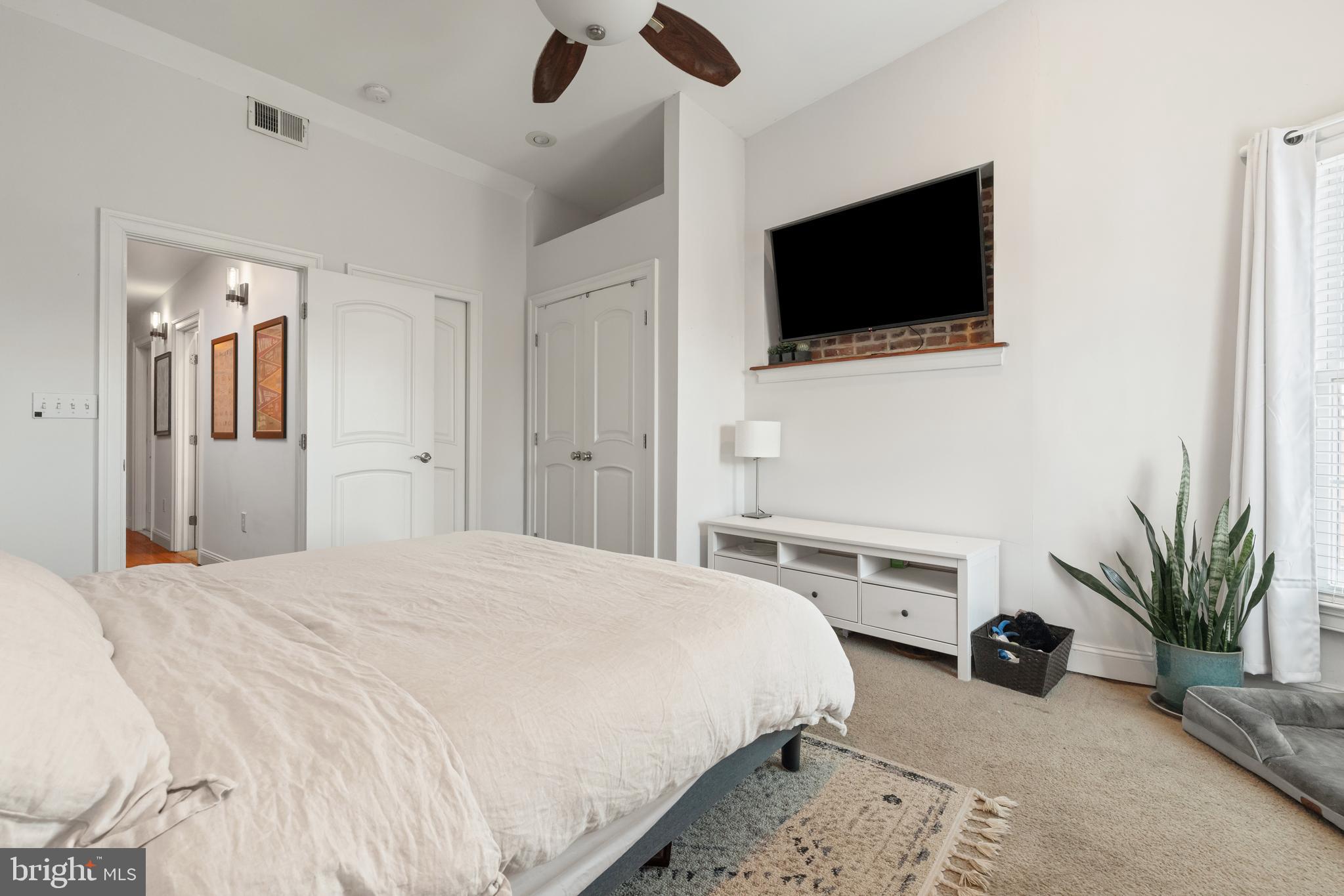Large 14' wide end-unit townhouse w/ 2-car off-street parking, great roof deck views, and a location just a block away from Riverside Park. Main level offers lots of natural light and an open floor plan with spacious living & dining areas. Kitchen provides plenty of storage, stainless-steel appliances (w/ gas range & vent hood for cooking), breakfast bar w/ granite countertops, and even a functional built-in bar/desk area. There's also a half-bath for guests, and a fenced in back deck area adjacent the dedicated rear parking area. Upstairs, there are 3 bedrooms & 2 full bathrooms, and a walkout to the rooftop deck. Basement is finished and offers additional space and a 3rd full bathroom, which could be used as a bedroom, guest space, exercise area, etc