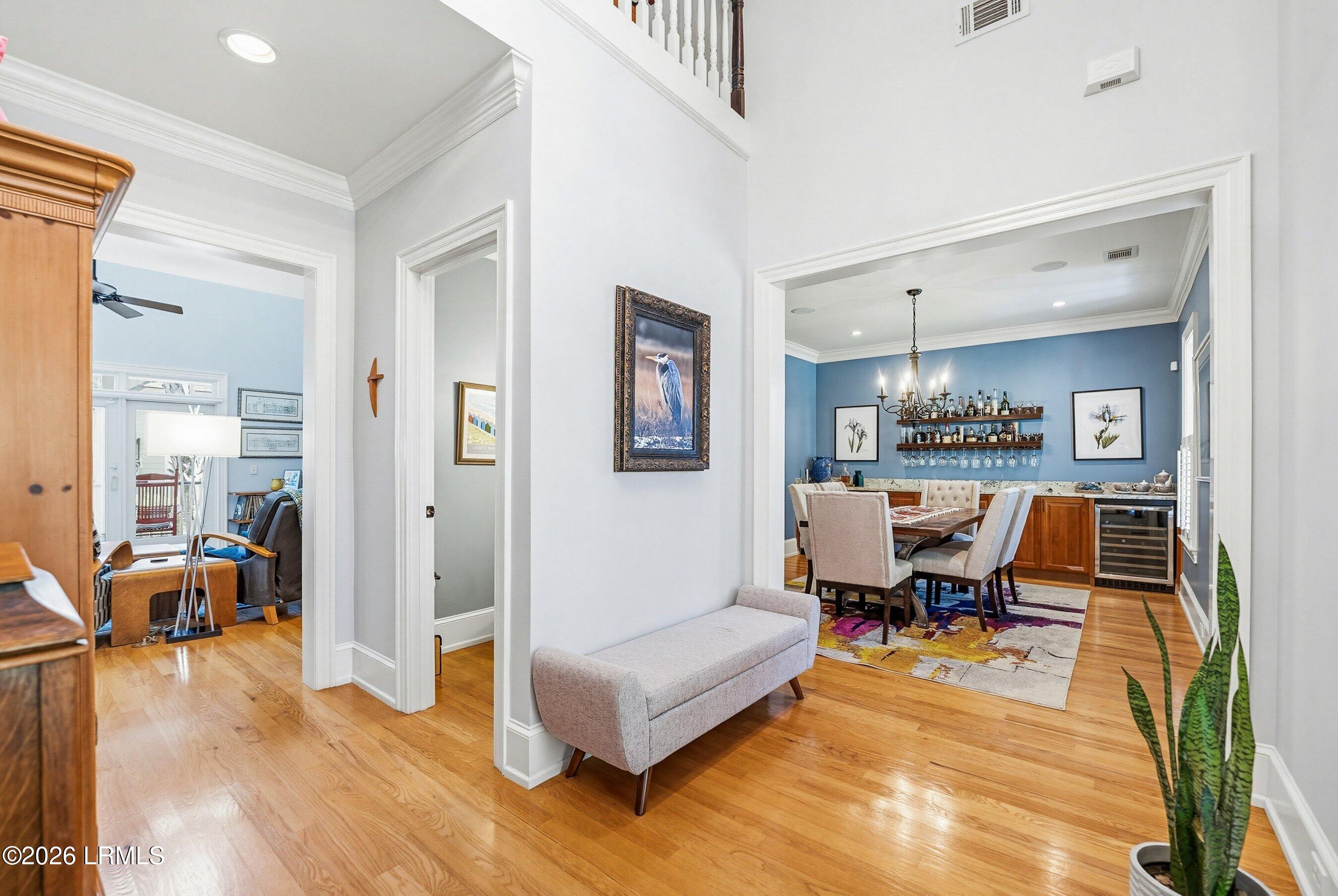 Welcome to 25 Timber Trail, an exceptional Lowcountry residence located in the desirable waterfront community of Cat Island. This spacious home blends classic Southern style with comfortable coastal living. Thoughtfully designed for both everyday living and entertaining, the home features expansive spaces filled with natural light, high ceilings, and beautiful architectural details throughout. The main living areas provide a seamless flow, creating an inviting atmosphere ideal for hosting family and friends. The well-appointed kitchen offers plenty of room for cooking, dining, and relaxing. Each of the four bedrooms features its own ensuite bathroom, providing privacy and comfort for family members and guests alike. The primary suite offers a peaceful retreat and ample closet space. Upstairs bedrooms offer storage, built ins, and comfortable living. Each bedroom has its own private bathroom. This home features a whole house generator, so no worries about power outages. The detached garage is climate controlled for your luxury vehicles and the upstairs includes a kitchenette and great space for a private office, workout room, or bedroom and includes its own full bathroom.