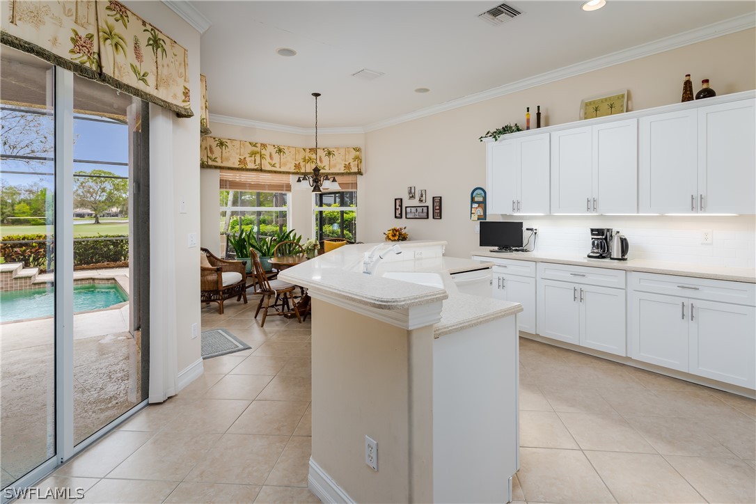 Located on a unique lot in Master's Reserve this great room design Augusta 1 home offers wide views of Mustang Golf Course, two lakes, a small bridge and gorgeous sunsets. The living room area opens to an oversized, extended lanai with a pool, elevated spa and added are for entertaining family and guests. The home features two large bedrooms, two bathrooms, a third bedroom used as a home office, open kitchen and dining area. Master's Reserve is a gated community of 135 homes centrally located within Lely Resort. Lely Resort is 10 miles from the pristine beaches and all the activities of downtown Naples plus offers local restaurants, shopping, medical facilities, golfing and much more. Marco Island with its white sand beaches and the Isles of Capri is just a short drive south of Lely Resort. Although optional, an application for membership to The Player's Club Spa can be available at the Spa. Welcome to Masters Reserve at Lely Resort- Your piece of Paradise!