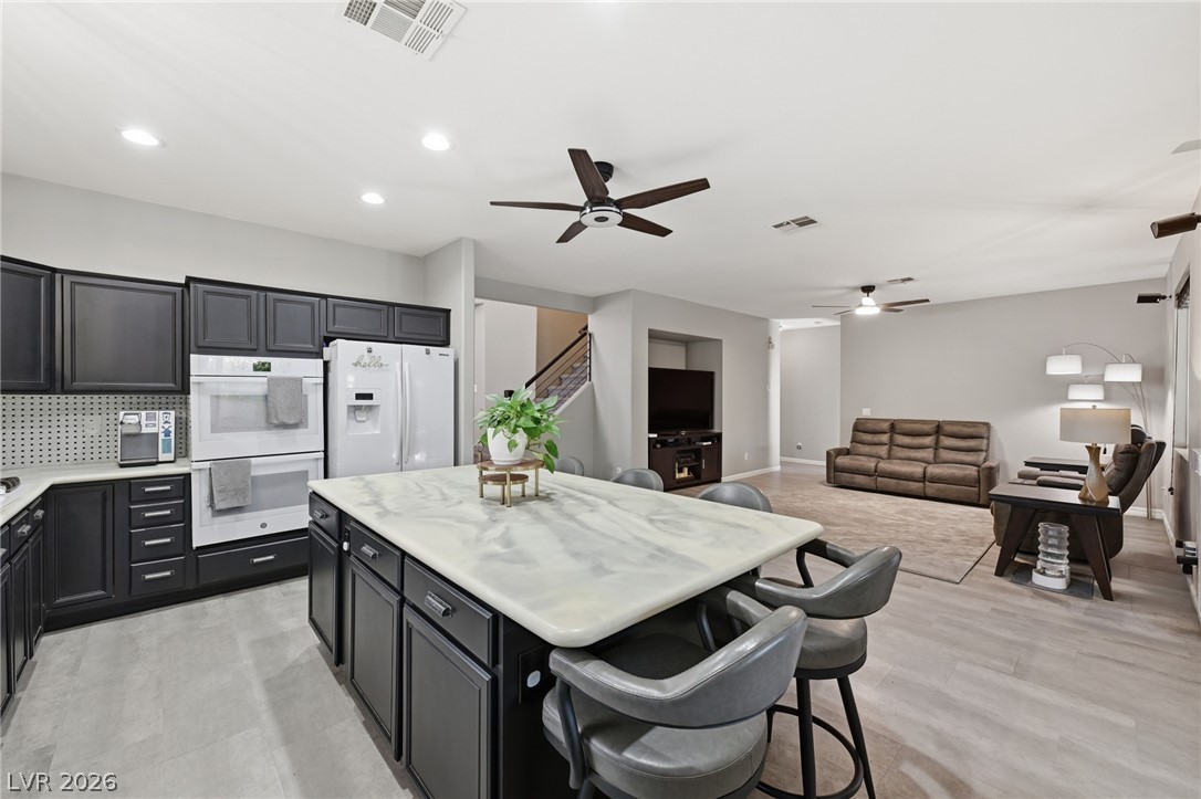 Checkout that curb appeal! This beautifully upgraded 5-bdrm, 3-bath home offers 2,747 sq ft of functional, stylish living, w/ a downstairs bdrm perfect for multigen living or guests. LVP & plush carpet flow throughout, featuring upgraded bathrooms, modern ceiling fans, & updated hardware. The primary en-suite boasts 2 oversized closets, huge bathroom w/ shower/tub, RO system & fan. The chef's kitchen offers a 6-ft island, double ovens, RO system, sleek finishes & custom French doors opening to your private backyard retreat. Outside, enjoy a sparkling pool/spa, 35ft covered patio w/ 3 fans, misting system, surround sound, built-in kitchen with BBQ, fryer, sink & kegerator, natural gas firepit, custom lighting, shed & dog run space, perfect for year-round enjoyment! Prime location - tucked in a cul-de-sac, near shopping, dining, parks, entertainment, freeway & transit, this home checks all your boxes & more! Too many upgrades to list! A must-see before it's too late! WELCOME HOME!