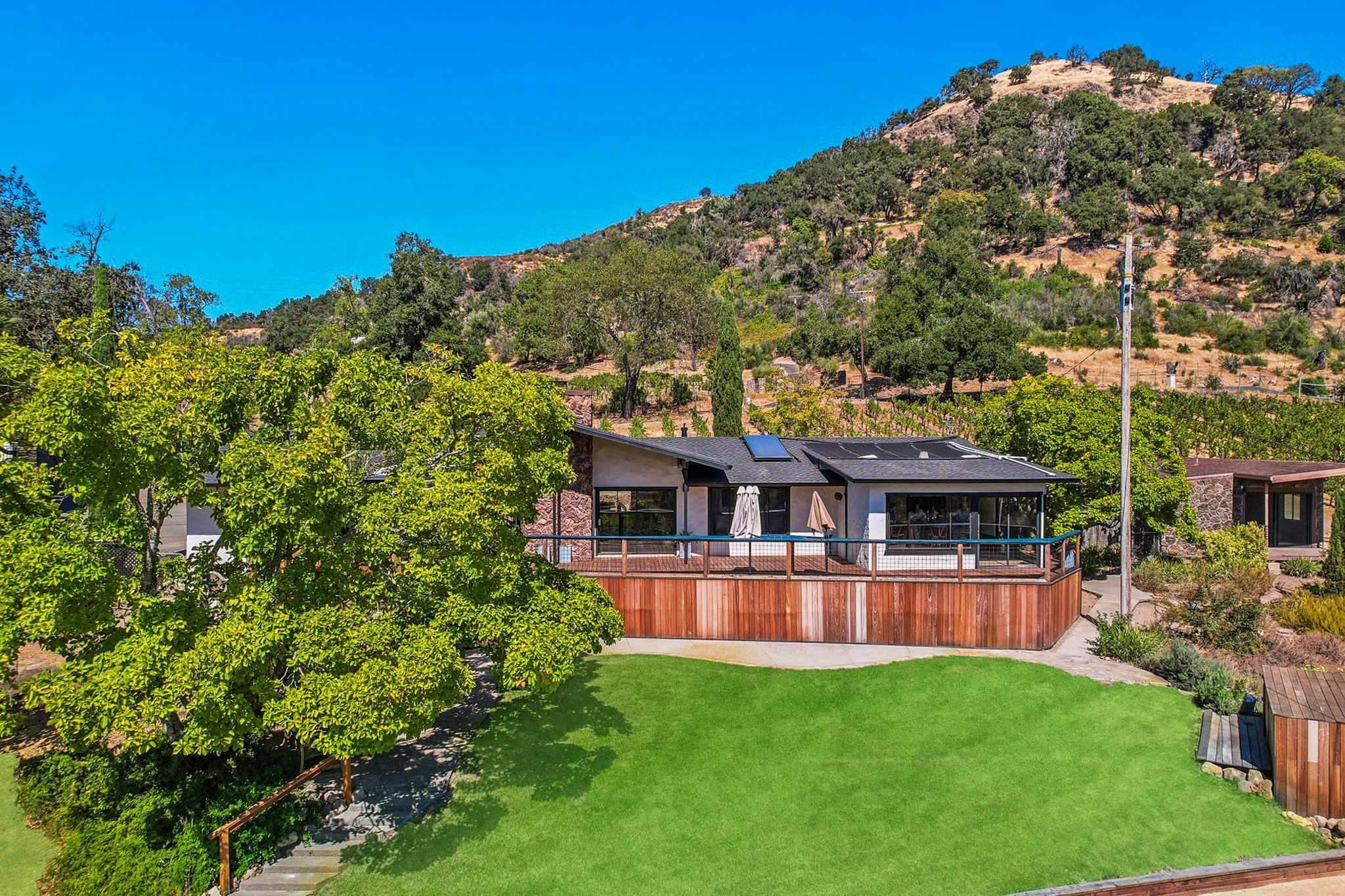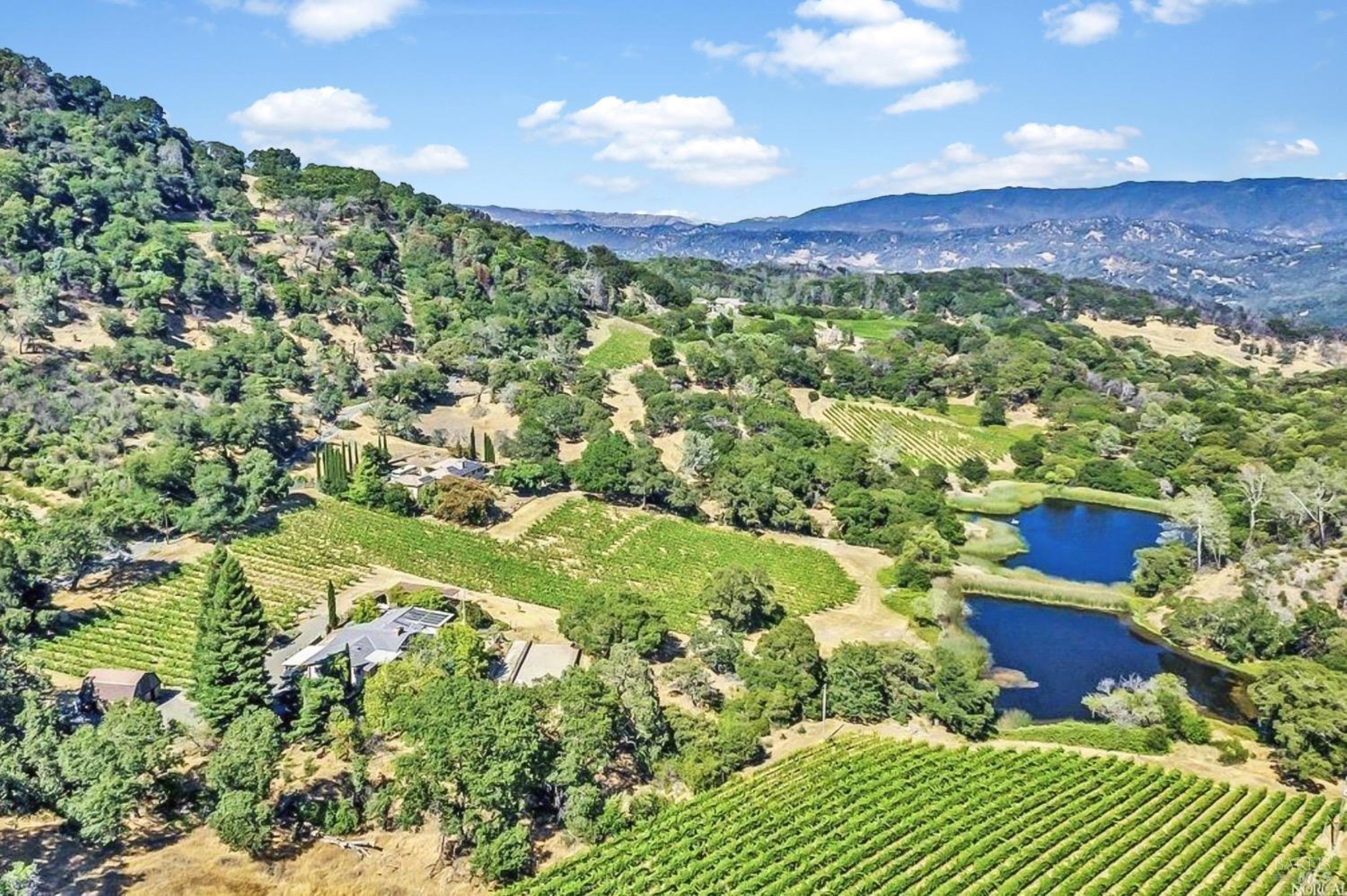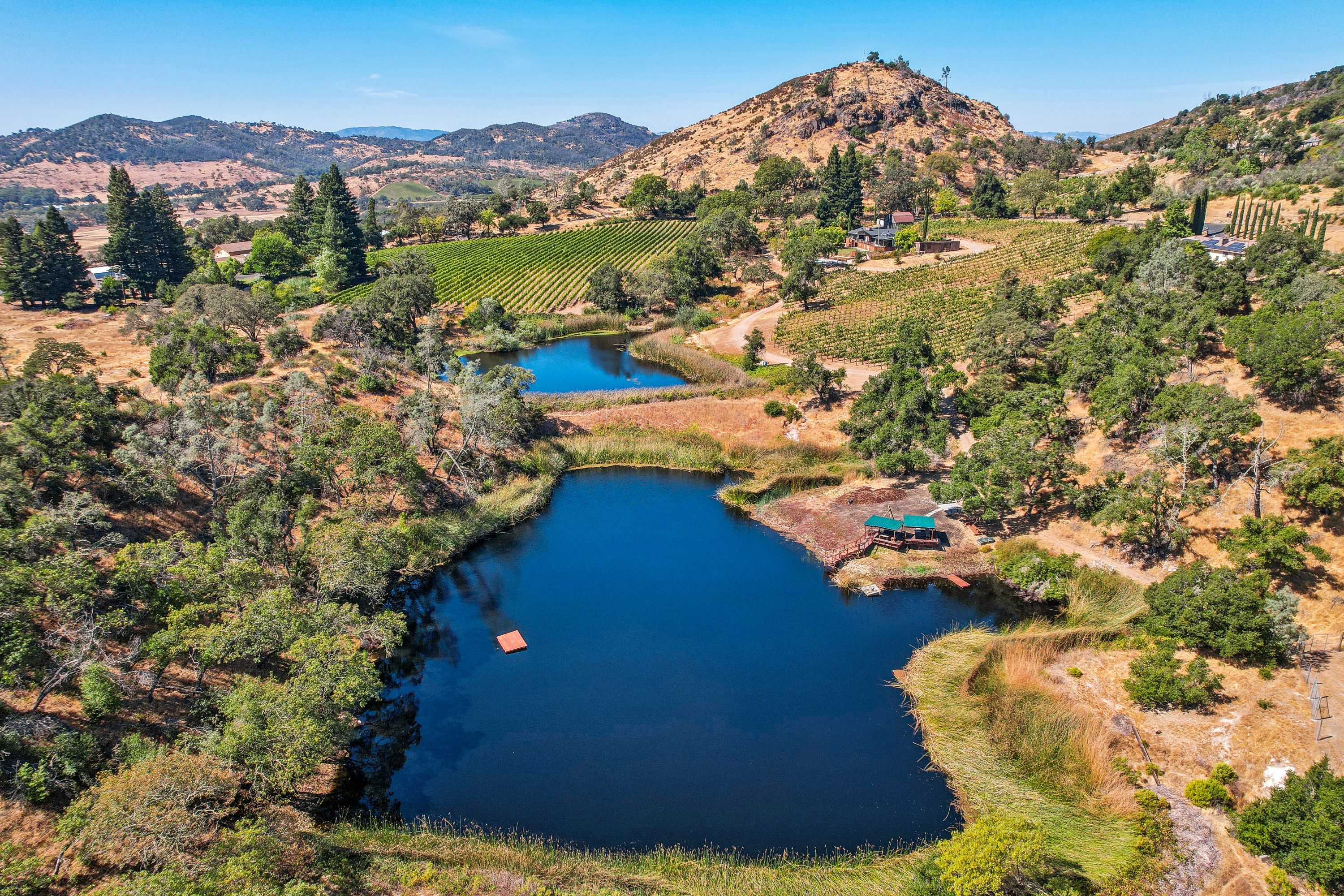 A rare opportunity to own a remarkable 22-acre estate in the prestigious Atlas Peak AVA of Napa Valley. Few properties offer the luxury of two private lakes complete with a beautiful custom dock perfect for paddle boards, canoes, kayaks, or relaxing beneath sunshades with built-in seating. The property features a sustainably farmed 4 acre vineyard producing exceptional Cabernet Sauvignon. The updated single-level residence captures sweeping views of the vineyards, surrounding mountains, and two spring-fed lakes, creating an extraordinary sense of privacy, tranquility, and abundant water. Located just minutes from the world-renowned Silverado Resort with its market, restaurant, tennis courts, and two championship 18-hole golf courses, this secluded estate offers the ultimate Napa Valley retreat.