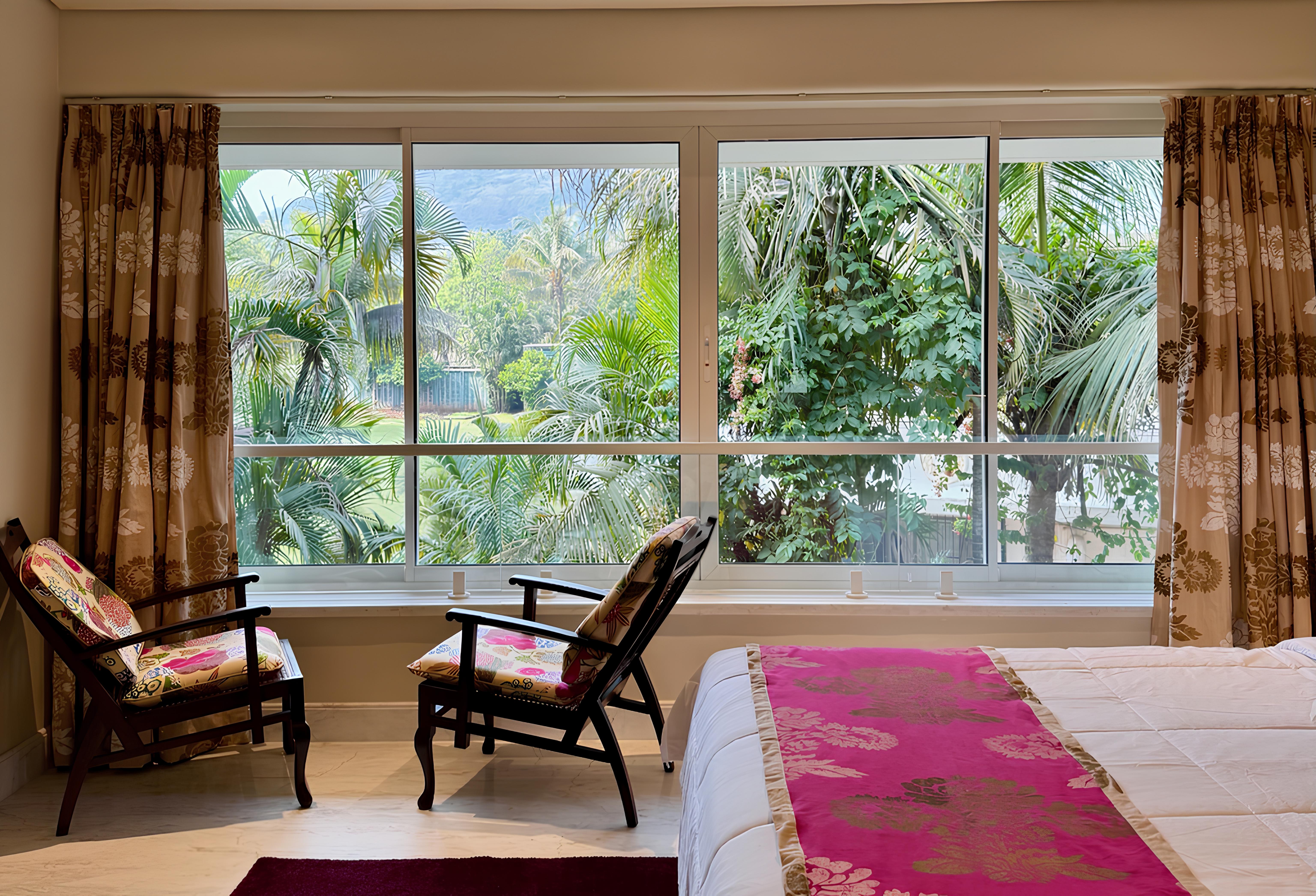 Situated at the end of a quiet cul-de-sac, the villa is just a three-minute drive from Lonavala’s main bazaar road, with Tata Lake and surrounding greenery forming a serene natural backdrop. The location offers privacy and calm while remaining accessible from Mumbai, with connectivity expected to improve further through the Mumbai–Pune Missing Link Project.