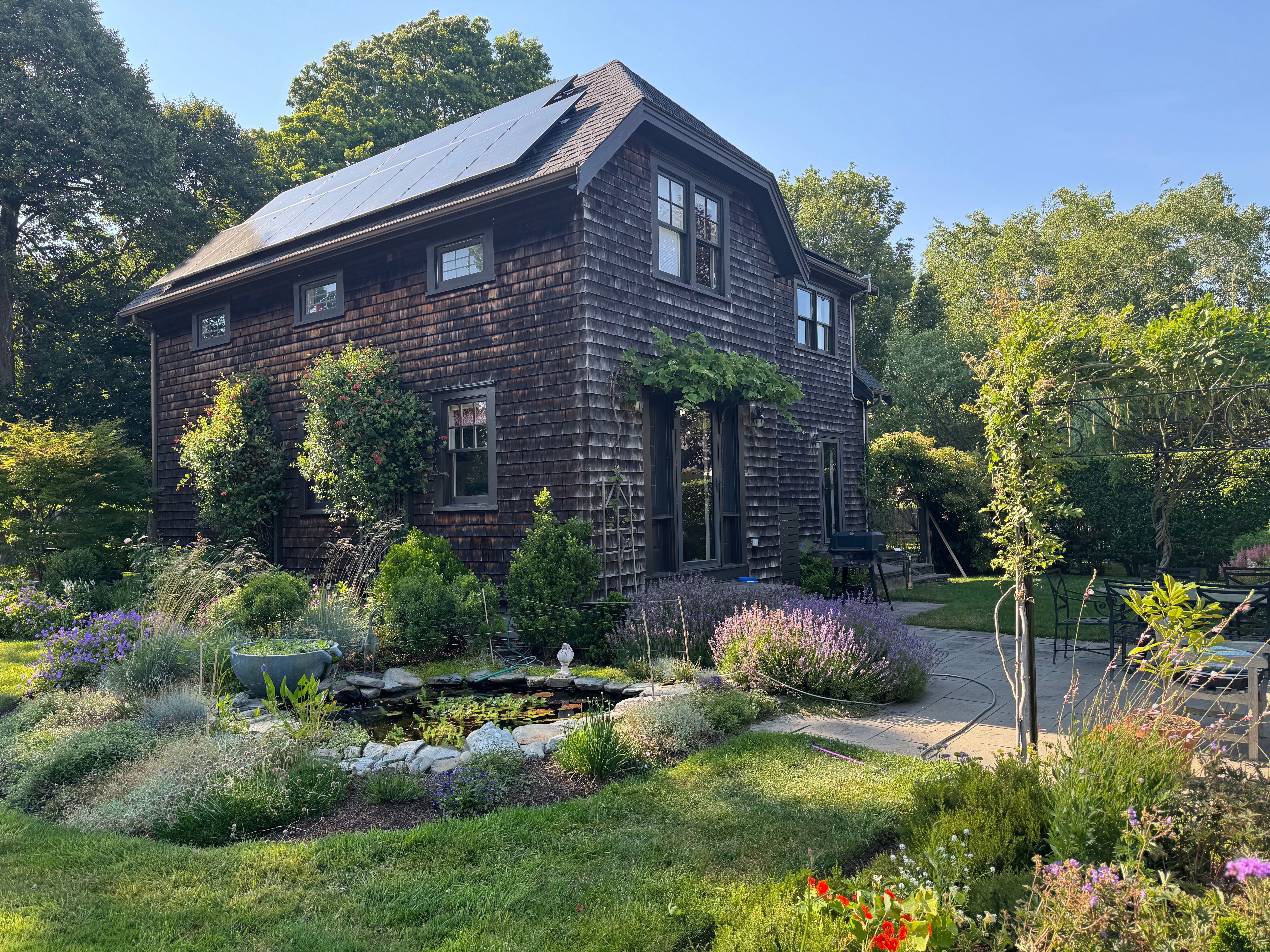 AVAILABLE FOR JULY 1-31, 2026. Located 1/2 mile from Middletown's beaches, scenic nature reserves, and local vineyards, this charming cottage offers privacy, comfort, and thoughtful modern updates. Built in 1998 and set amid exquisite landscaping with established cutting gardens, the property provides a serene coastal retreat with the conveniences of contemporary living. The home features central air conditioning, solar panels, and an EV charger for energy efficiency and ease. The kitchen will be fully refreshed with new cabinetry and appliances, creating a bright, functional space for everyday living and entertaining. The primary bathroom will be newly outfitted with a tiled tub/shower, updated vanity, lighting, and flooring, while the guest bathroom will feature a new shower, vanity, and lighting. Sleeping accommodations include a primary bedroom with a king bed, two guest bedrooms each furnished with queen beds, and a first-floor office offering additional flexibility with a pull-out sofa for overnight guests. The tenant shall also have use of a portion of the garden shed for storage of bicycles and other outdoor recreational items. With its peaceful setting, tasteful updates, and proximity to Middletown's beaches and outdoor amenities, this cottage presents an exceptional rental opportunity.