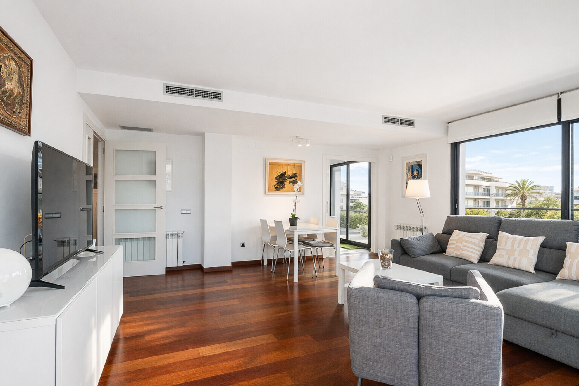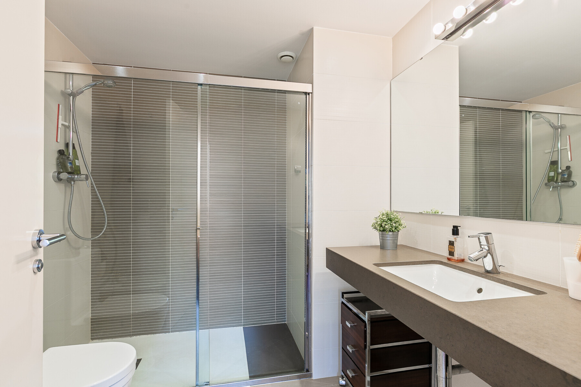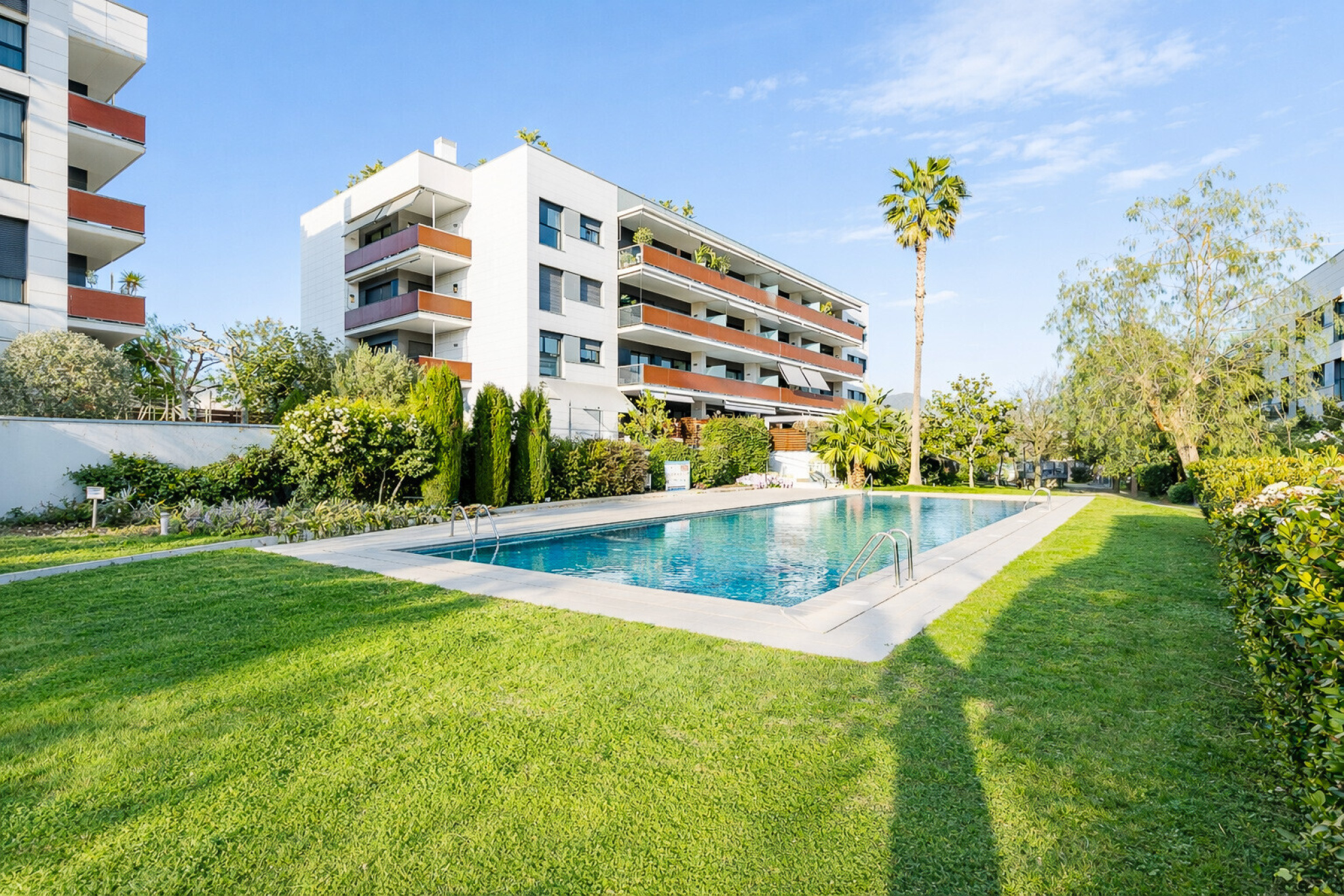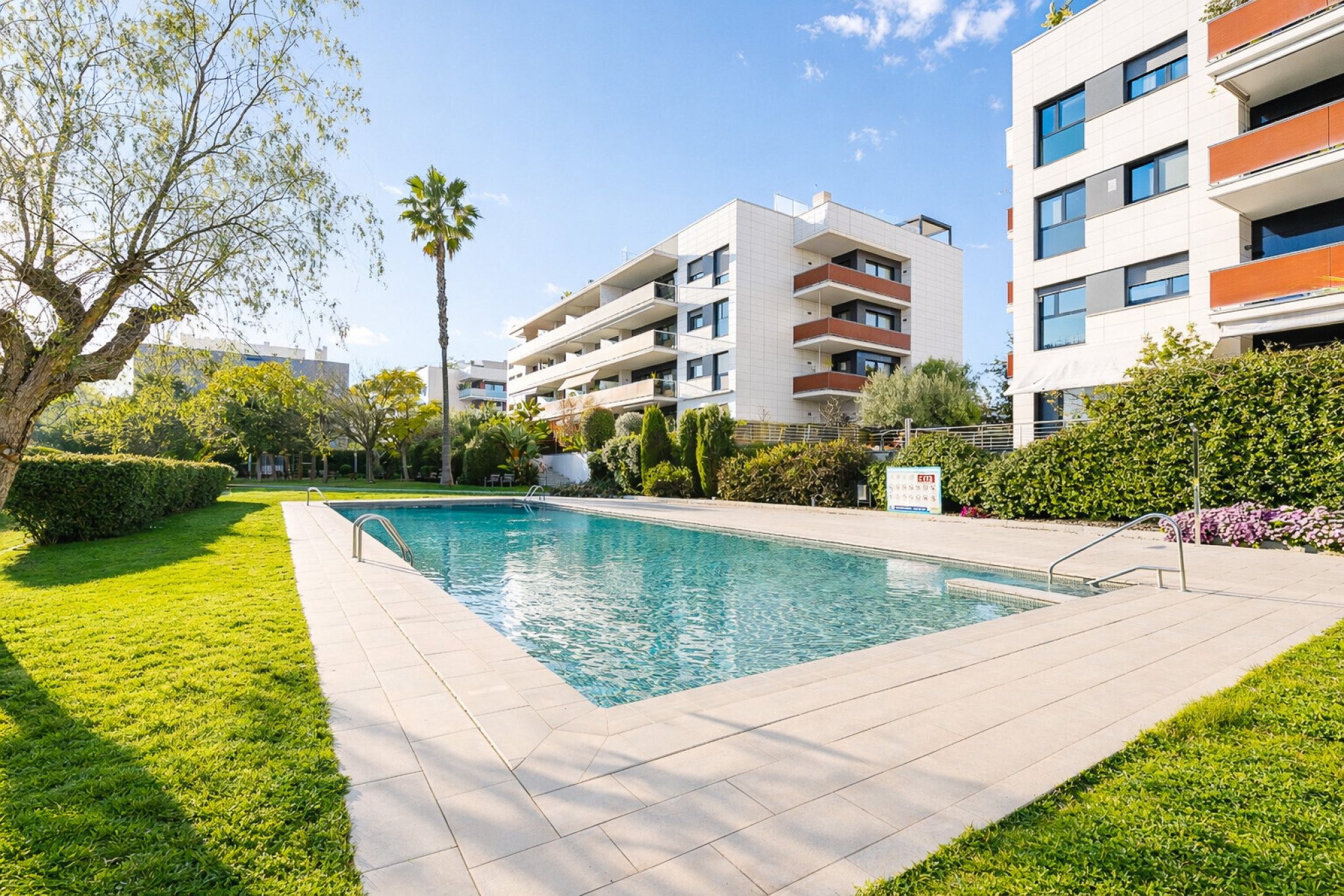 It is an apartment of more than 100m2 in excellent condition that is located in the best area of La Plana, very close to the center of town, the beach and all services.The property is located in a modern building, with one of the best communal areas in the area, with a large garden, swimming pool, playground and large gardens.Upon entering the apartment we find the living / dining room of generous dimensions with access to the corner terrace of 25m2 with a nice open views and enough space to put an outdoor dining area. Next to it, we find the semi-open kitchen, fully equipped. On this level we find a large double bedroom with en suite bathroom and two double bedrooms sharing a family bathroom.The property has fitted closets, as well as gas central heating and central air conditioning hot and cold. In addition, the apartment has a large parking space and storage room.The size and brightness of the apartment, as well as its magnificent terrace make it a great opportunity to acquire a family residence or a second home in Sitges.It is a singular and unique piece that rarely arises in Sitges and that makes it extremely attractive. Make an appointment as soon as possible.*Some images of the exterior/views have been retouched with AI because they are currently working on the facade and have been retouched trying to be as faithful to reality as possible.