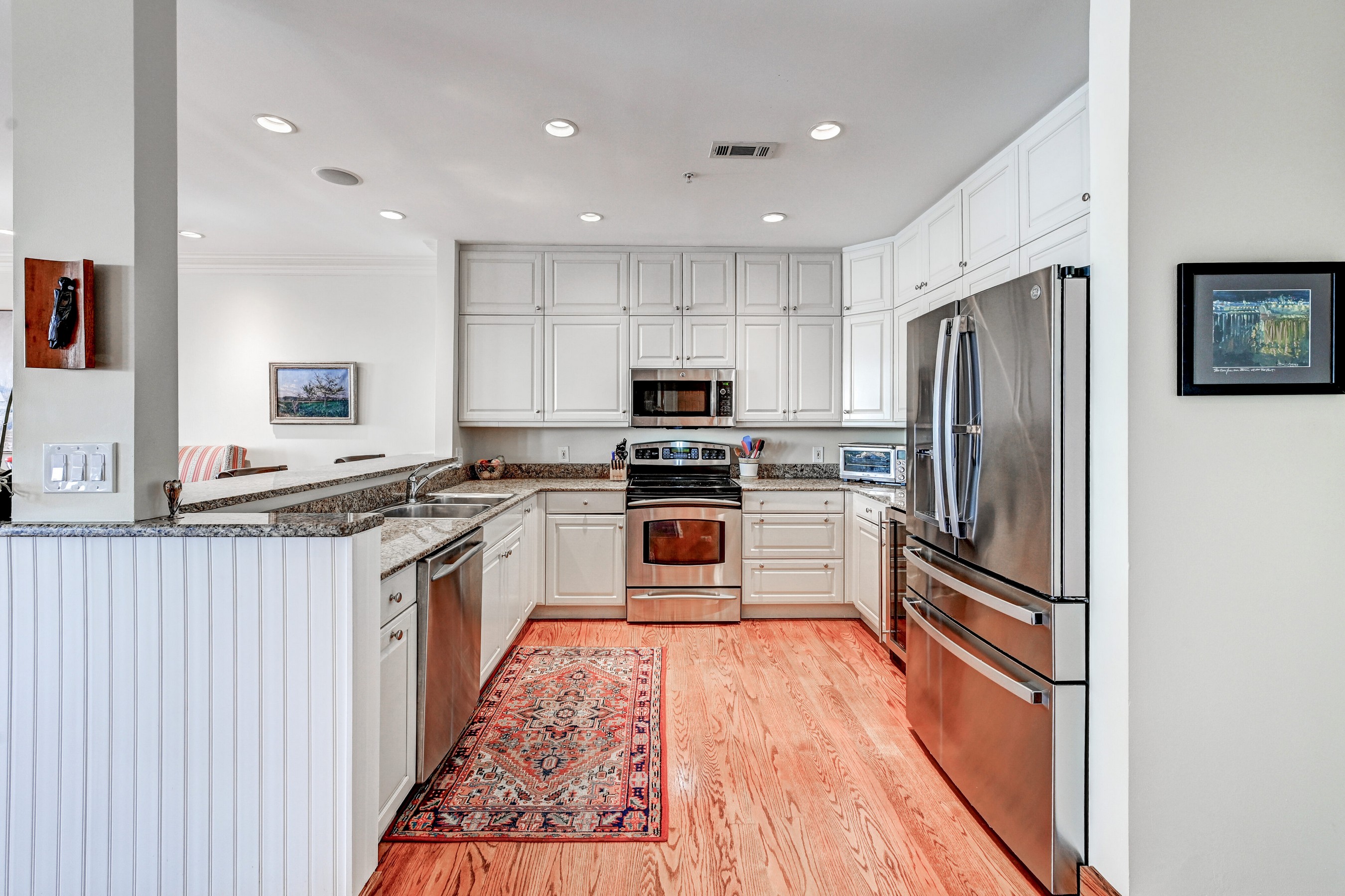 The main level welcomes you with raised ceilings, rich hardwood floors, and an open-concept design ideal for both everyday living and entertaining. The beautifully updated kitchen features granite countertops, stainless steel appliances, and a generous layout that flows seamlessly into the expansive living and dining areas—perfectly oriented to capture captivating water views. A stylish half bath adds convenience for guests.